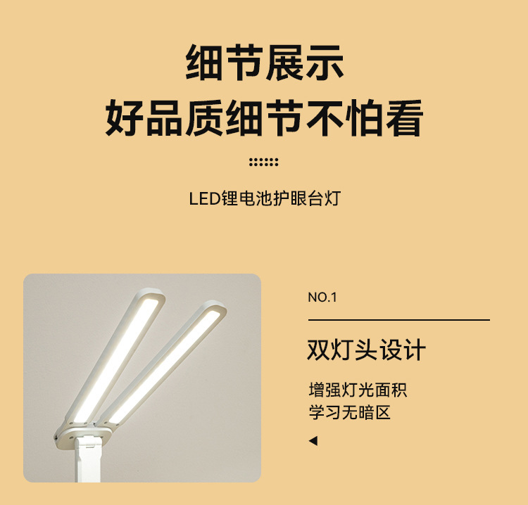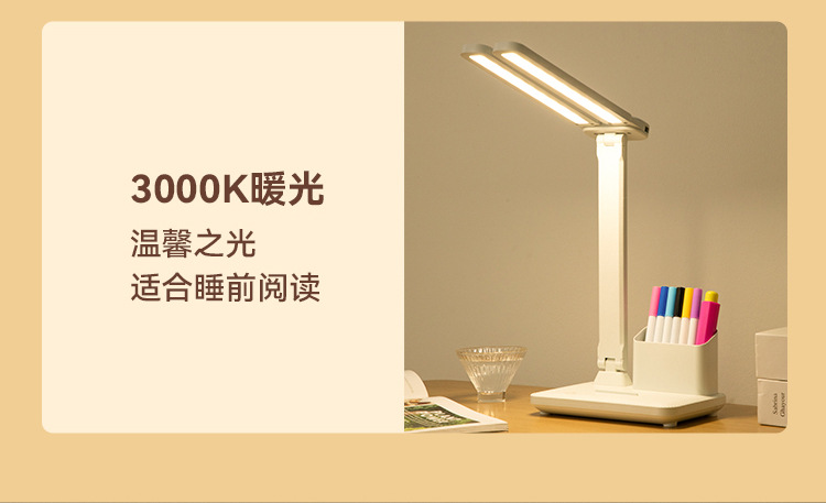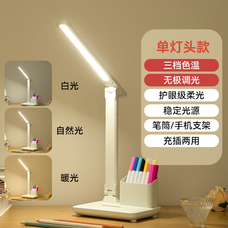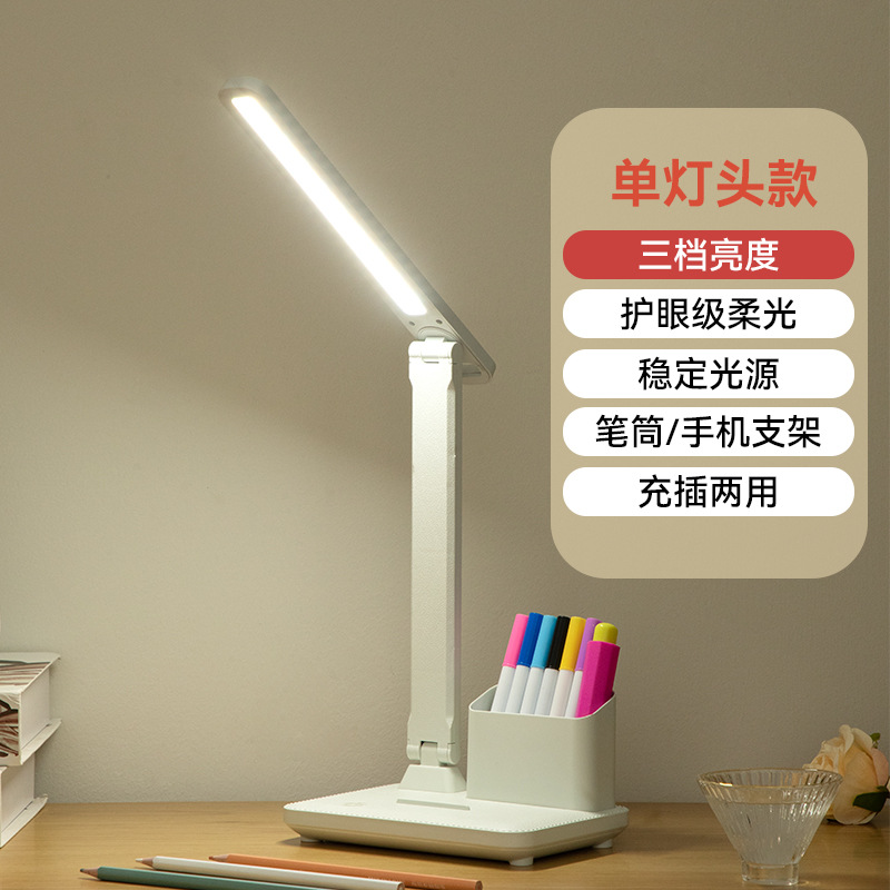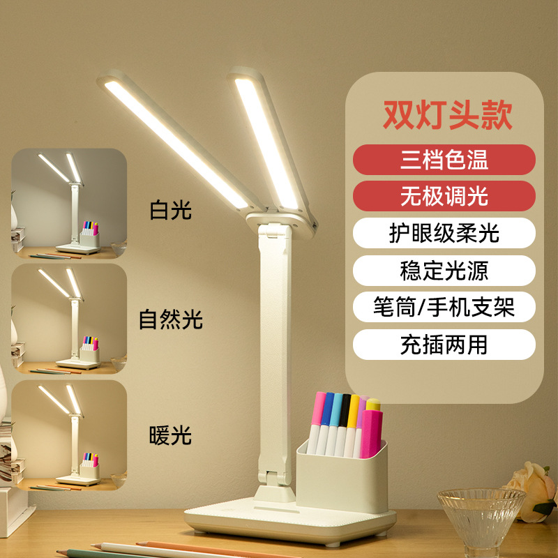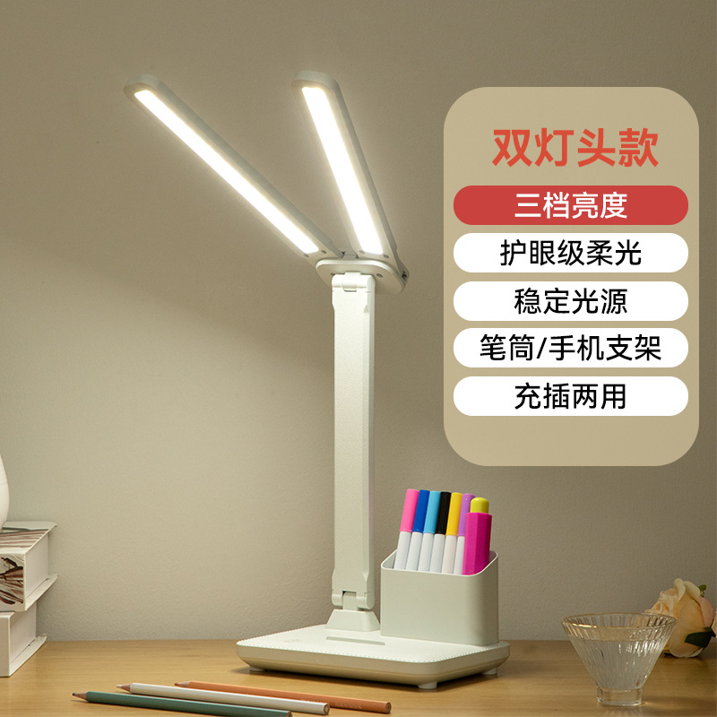 새로운 LED 더블 헤드 USB 충전식 접이식 책상 램프 휴대 전화 홀더 펜 홀더 탁상용 독서 램프 책상 램프 공장스토어 가기