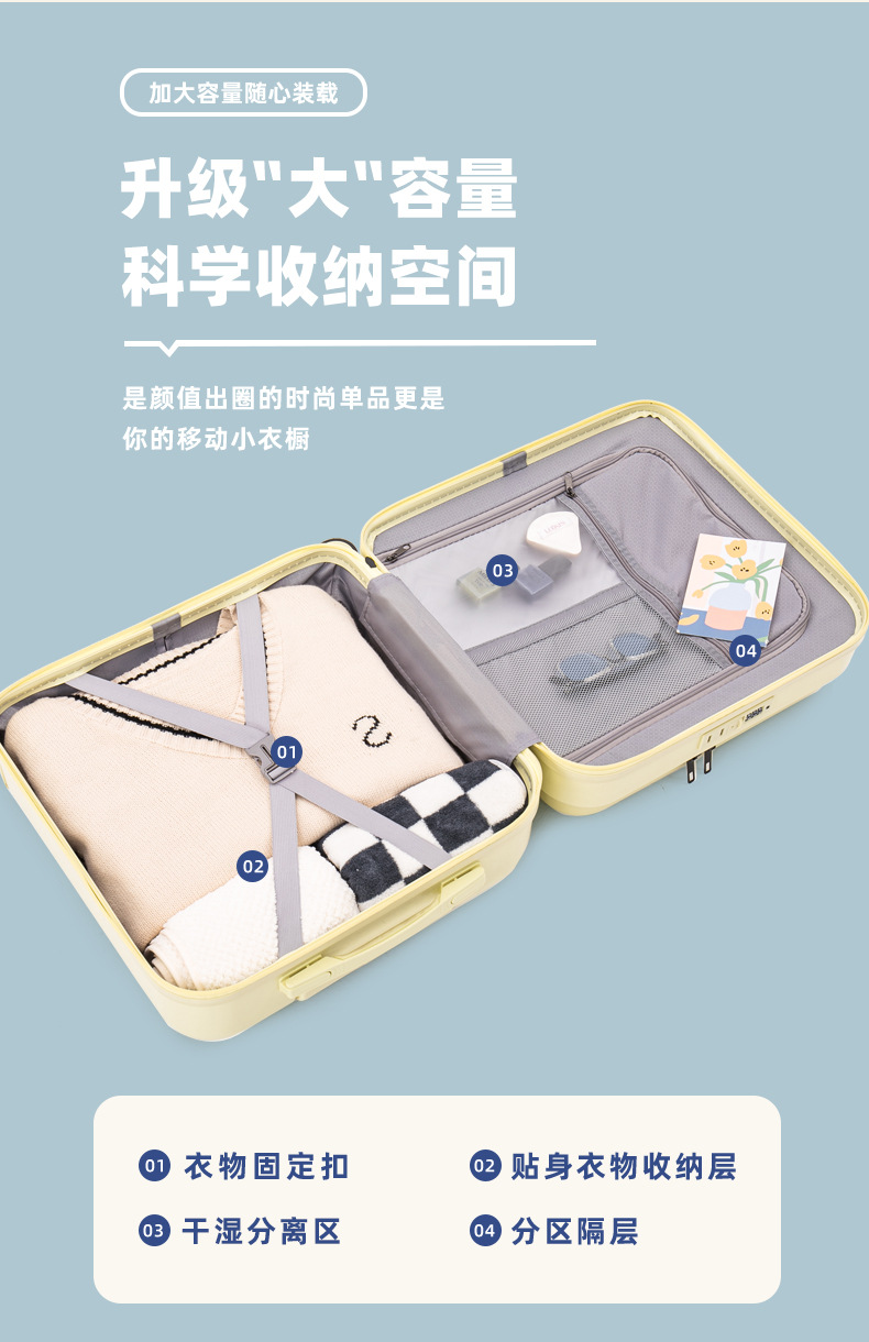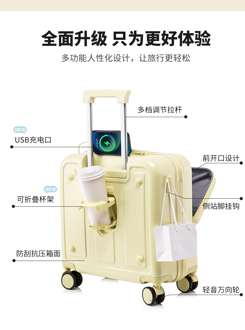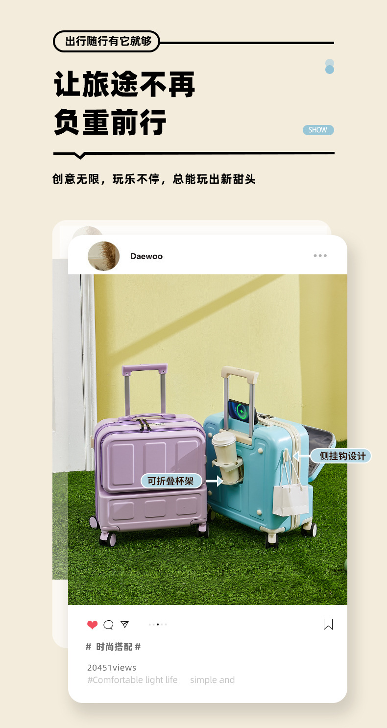 다기능 전면 오픈 뚜껑 가방 여성용 귀여운 패스워드 박스 18 인치 소형 경량 비즈니스 탑승 박스 남성 20스토어 가기