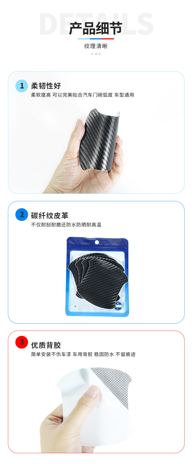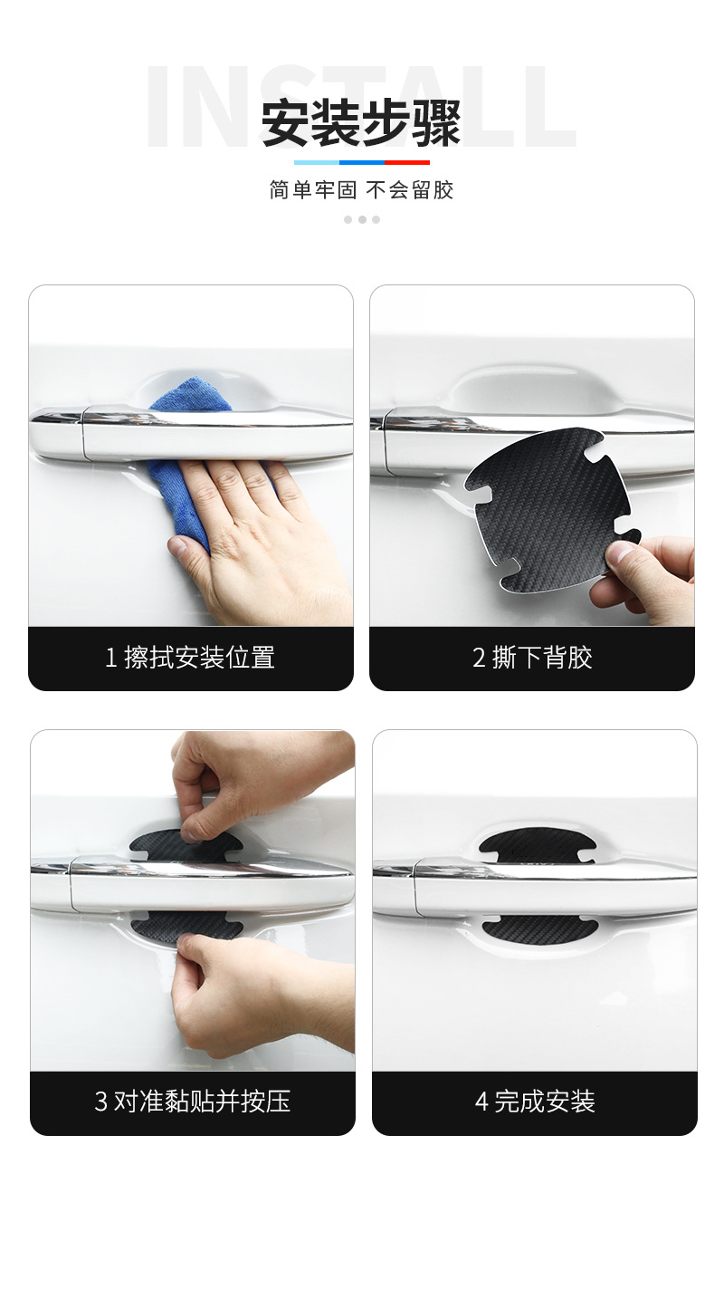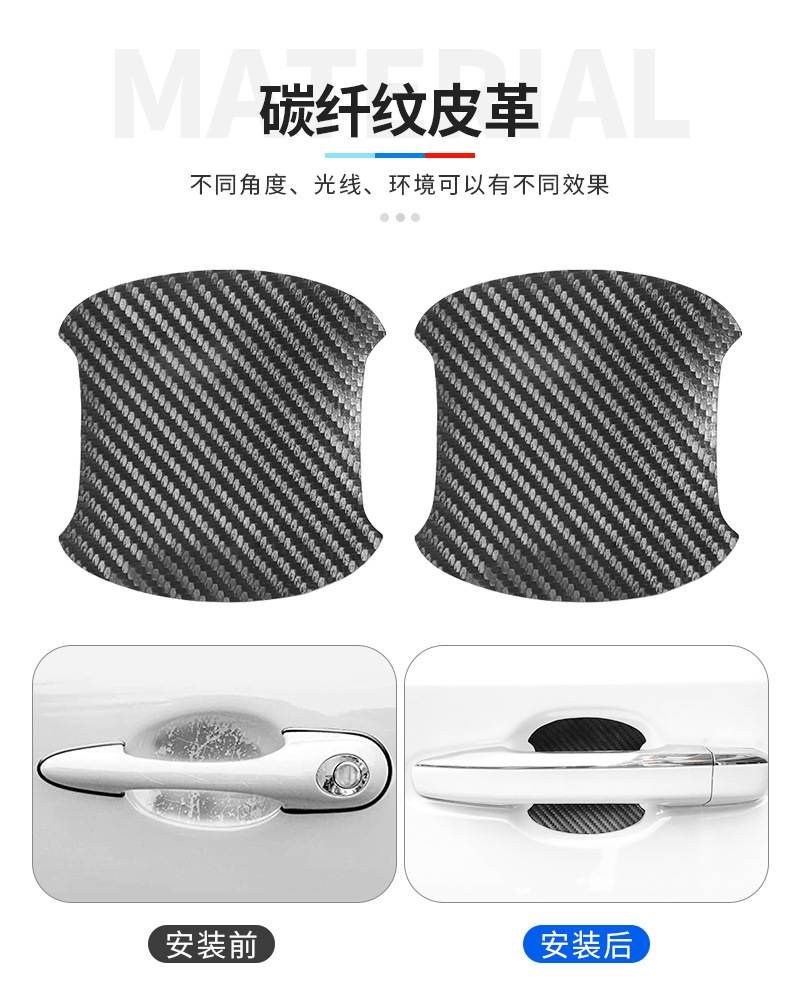 자동차 도어 그릇 보호 스티커 가죽 탄소 패턴 방수 내마모성 범용 도어 핸들 장식 스티커 스크래치 방지 고온 저항