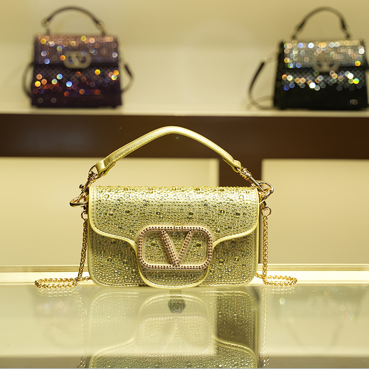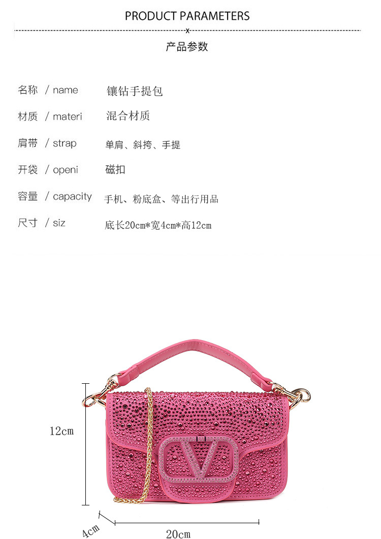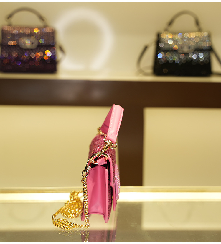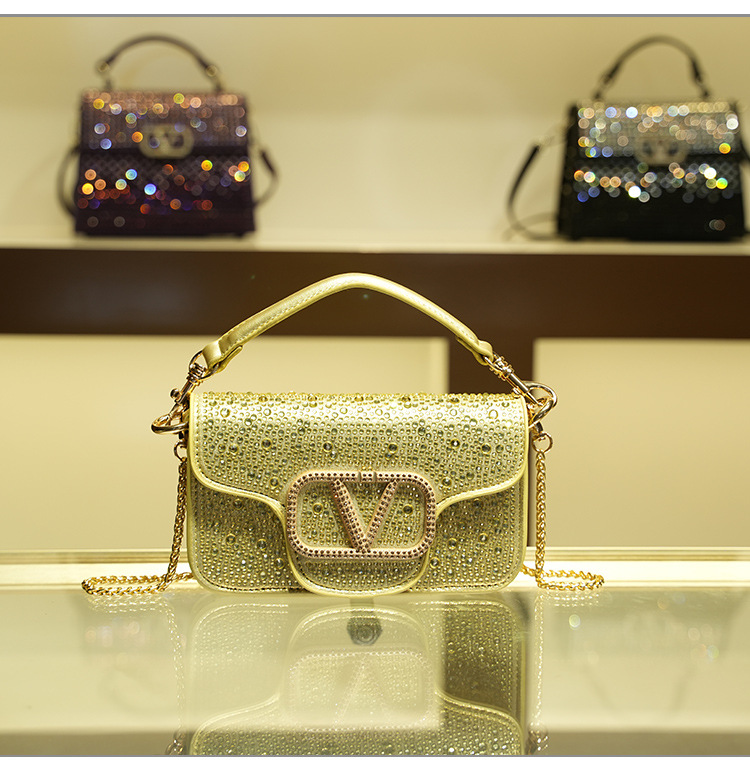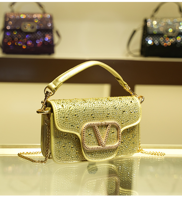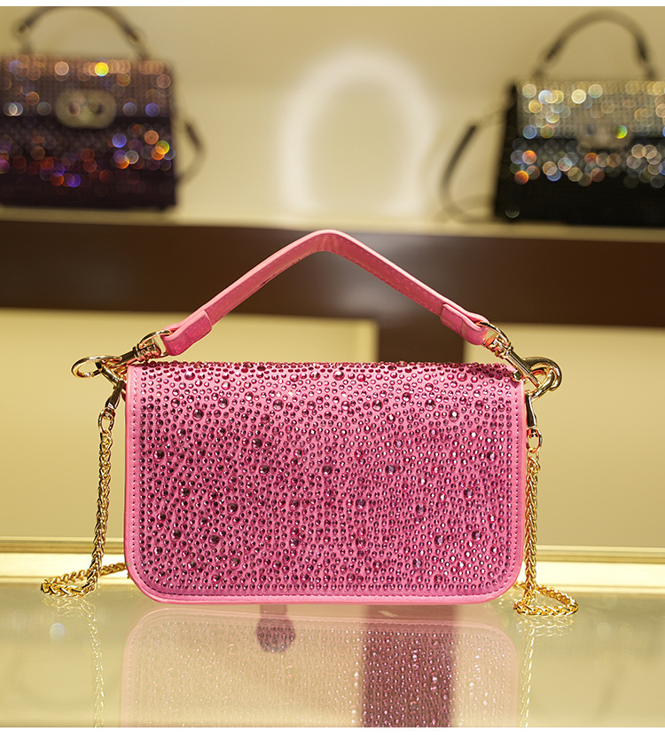 다이아몬드 가방 2023 신상품 다이아몬드 박힌 패션 여성용 가방 고급 휴대용 숄더 크로스 바디 소형 스퀘어 백 인터넷 인기스토어 가기