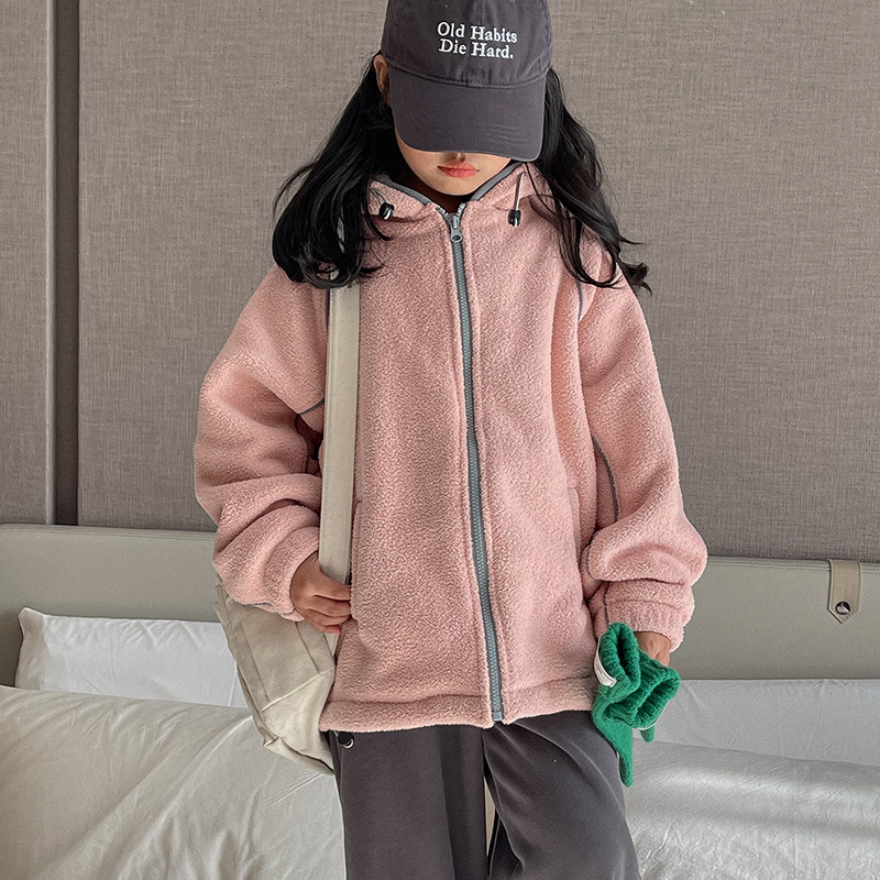 여아 양털 후드 재킷 2025 가을, 겨울 어린이 폴라 플리스 두꺼운 재킷 중형 및 대형 아동 캐주얼 탑스토어 가기