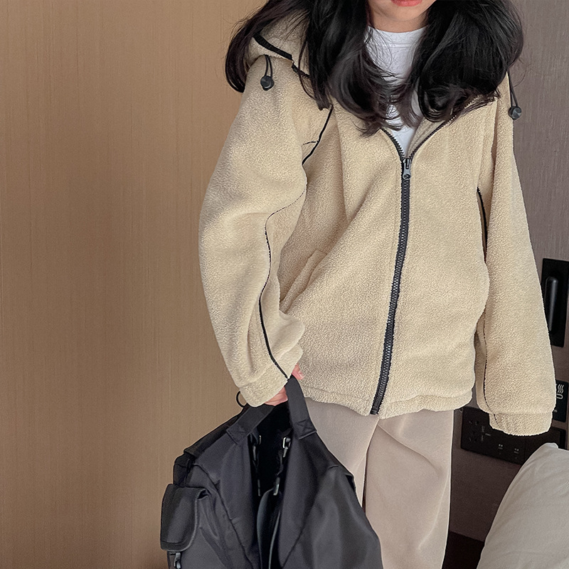 여아 양털 후드 재킷 2025 가을, 겨울 어린이 폴라 플리스 두꺼운 재킷 중형 및 대형 아동 캐주얼 탑