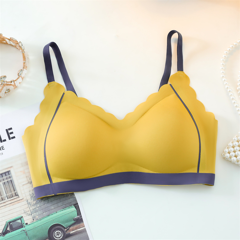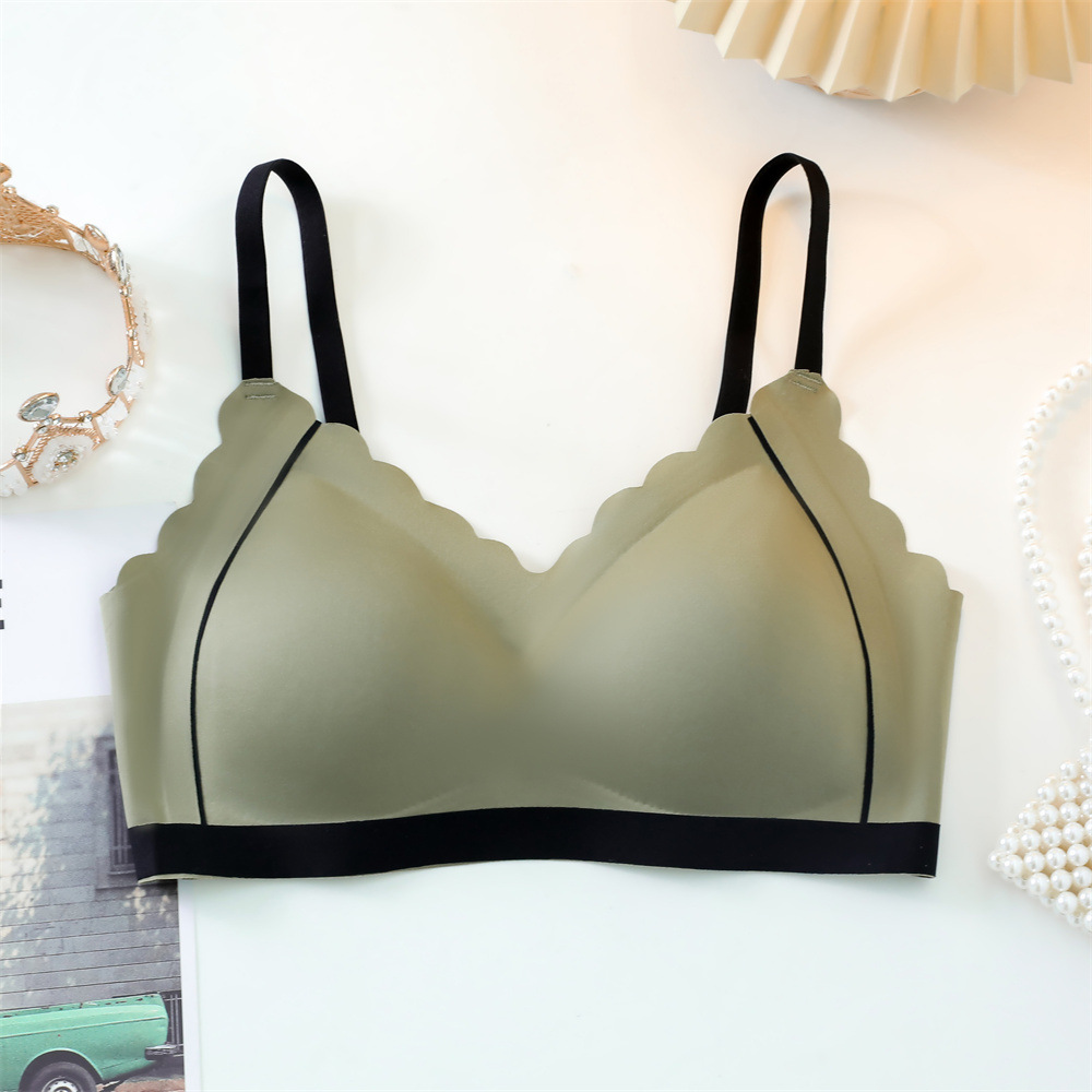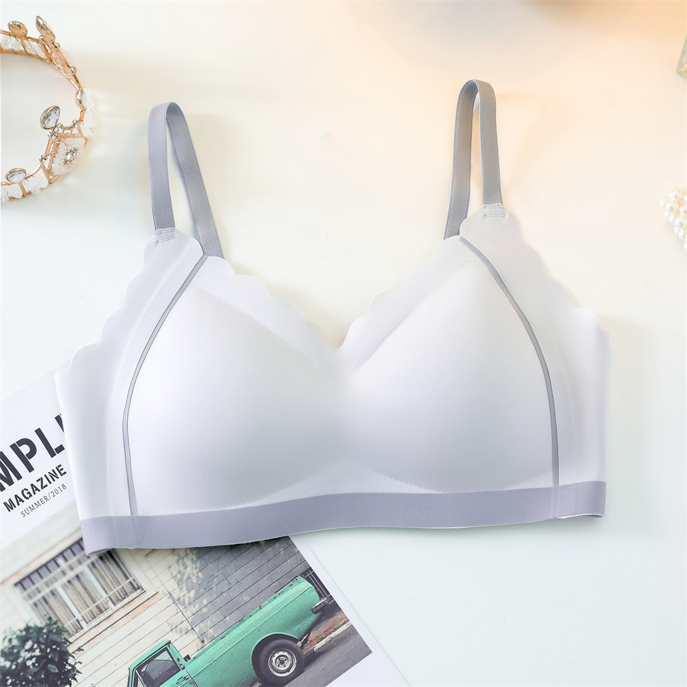 타이 라텍스 속옷 여성의 무테 작은 가슴 푸시 업 원활한 버튼 조끼 브래지어 프릴 스포츠 브라스토어 가기