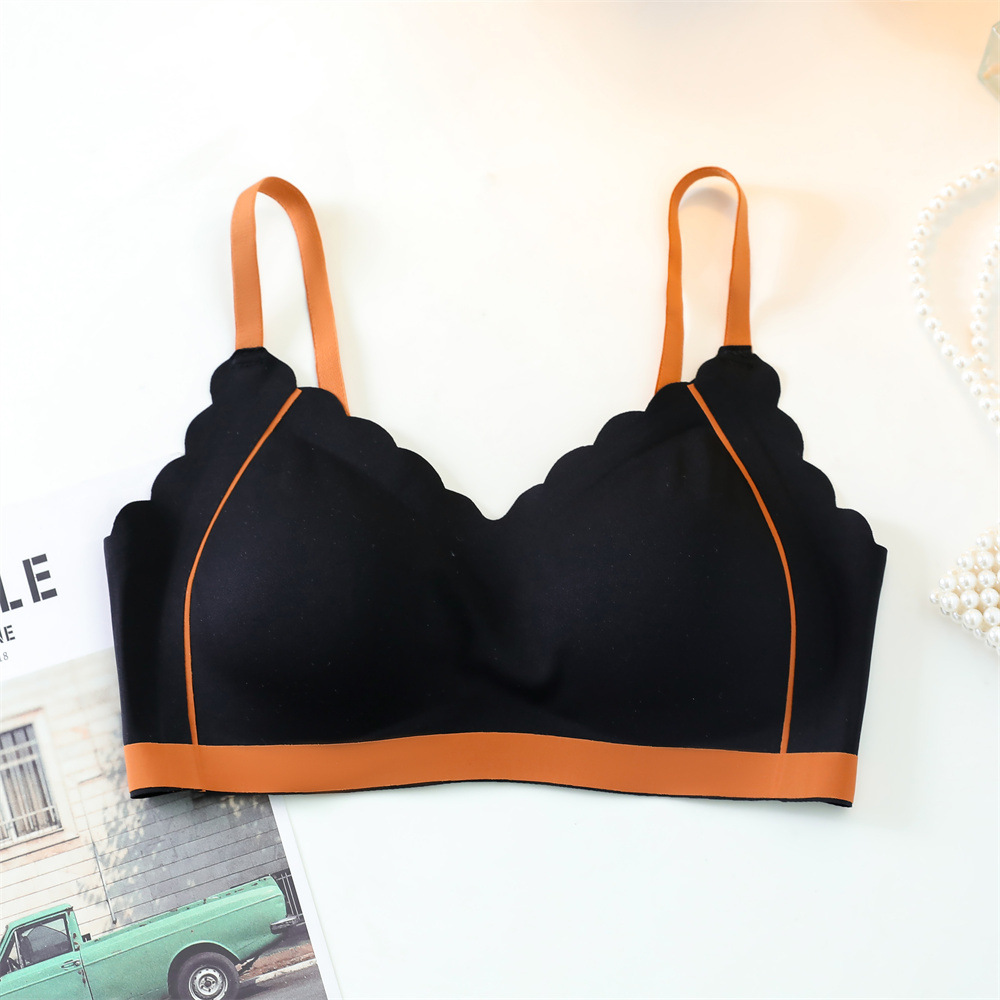 타이 라텍스 속옷 여성의 무테 작은 가슴 푸시 업 원활한 버튼 조끼 브래지어 프릴 스포츠 브라