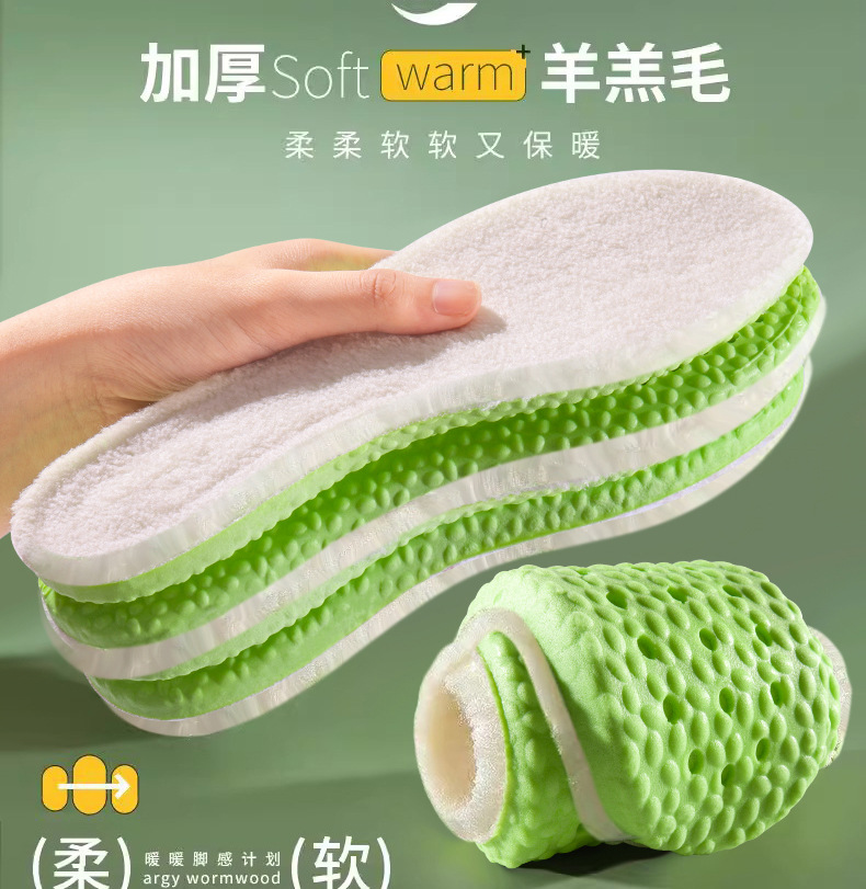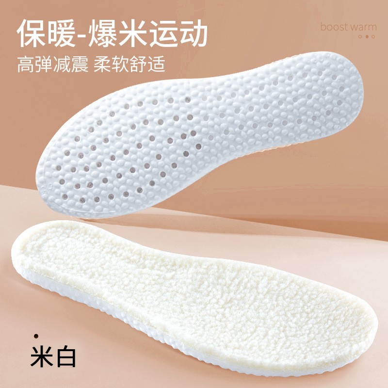 두꺼운 양고기 봉제 남성과 여성의 땀 흡수성 쑥 스포츠 충격 흡수를 기모 따뜻한 깔창을 느끼는 PU 겨울 똥