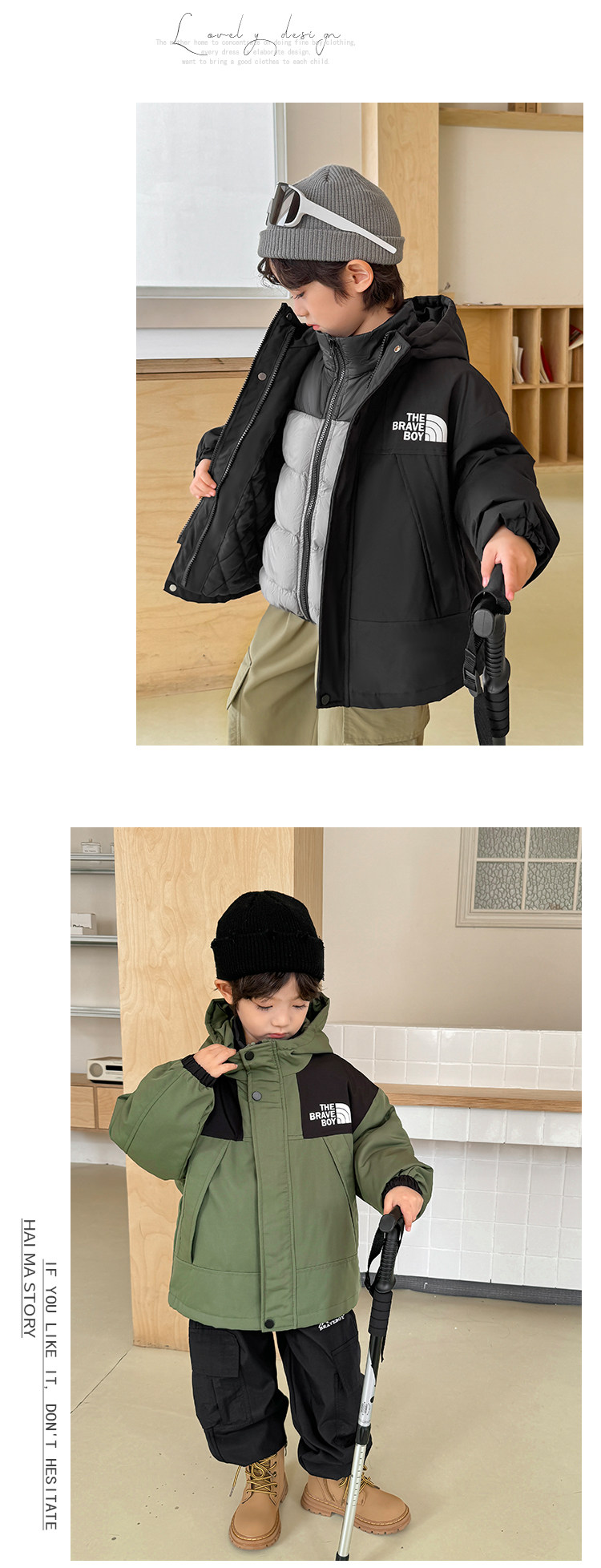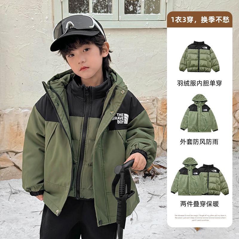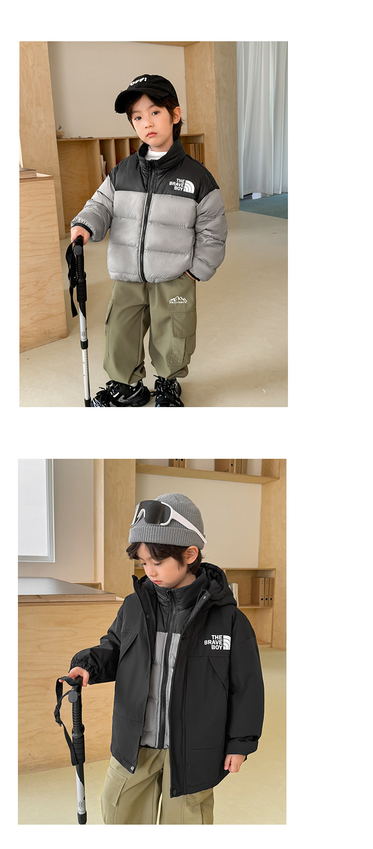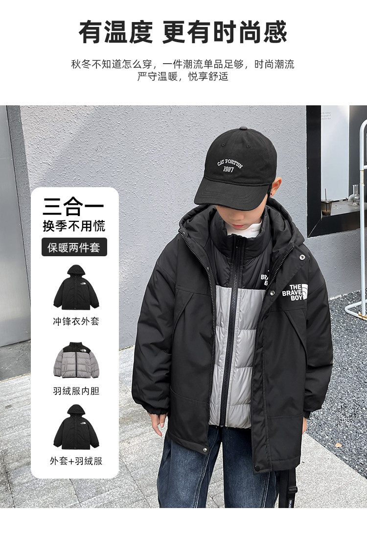 【저렴한 가격】남아용 트렌디 브랜드 3-in-1 다운 재킷 두꺼운 면 코트 겨울용 아우터 중대형 아동용스토어 가기