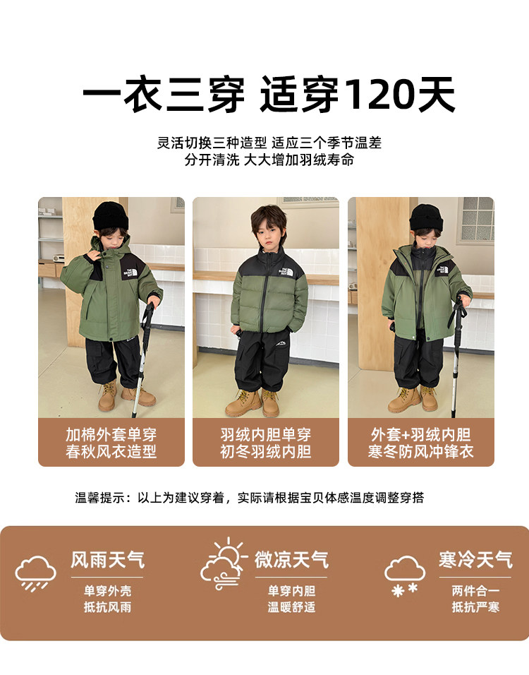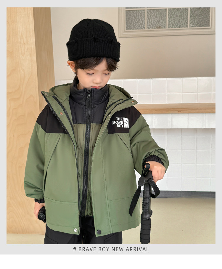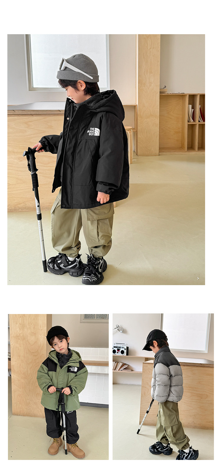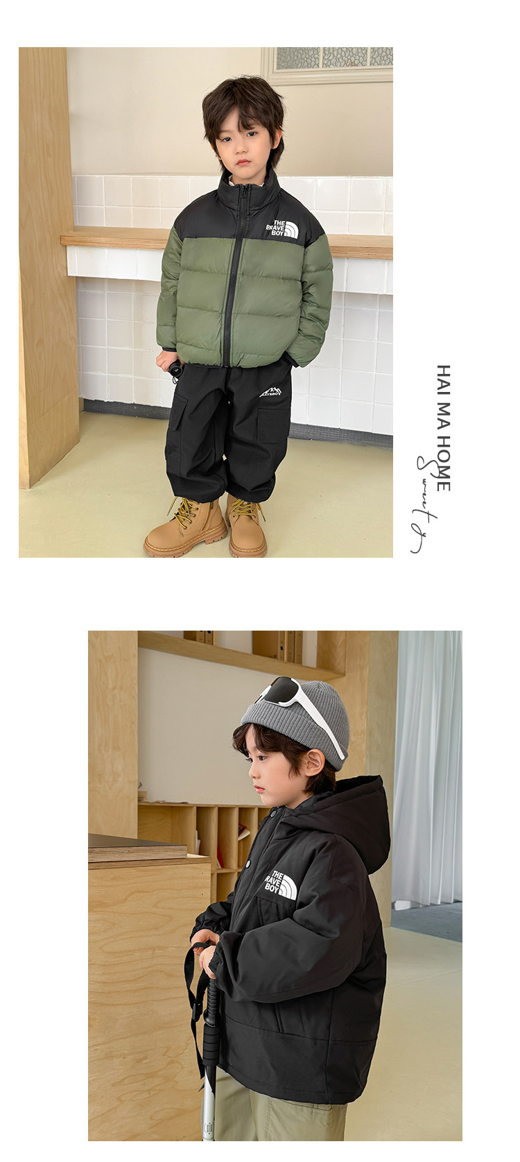 【저렴한 가격】남아용 트렌디 브랜드 3-in-1 다운 재킷 두꺼운 면 코트 겨울용 아우터 중대형 아동용스토어 가기