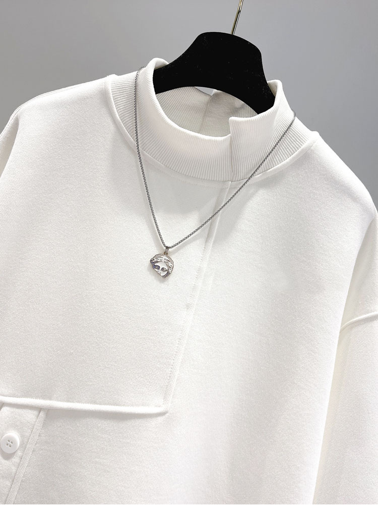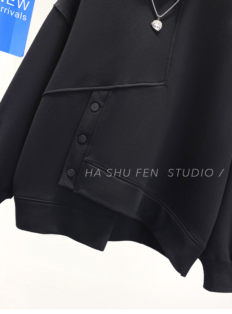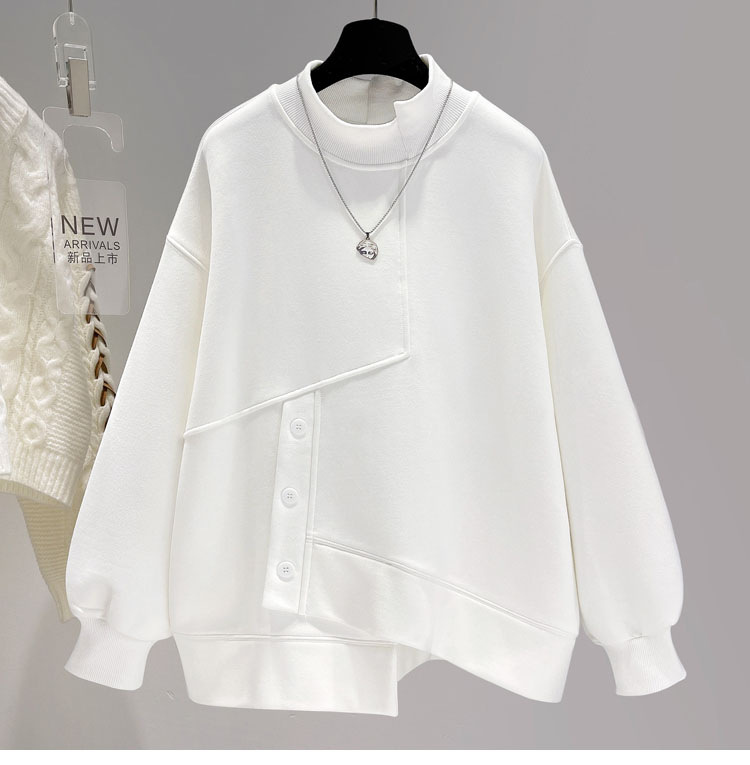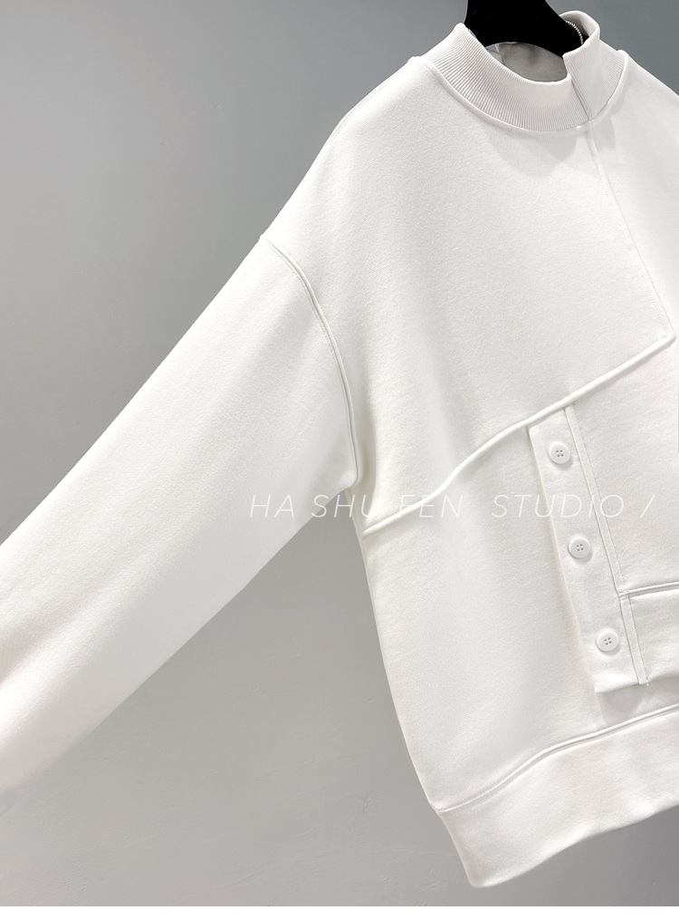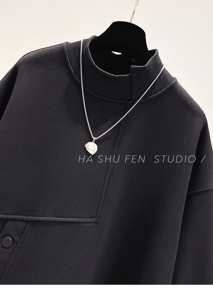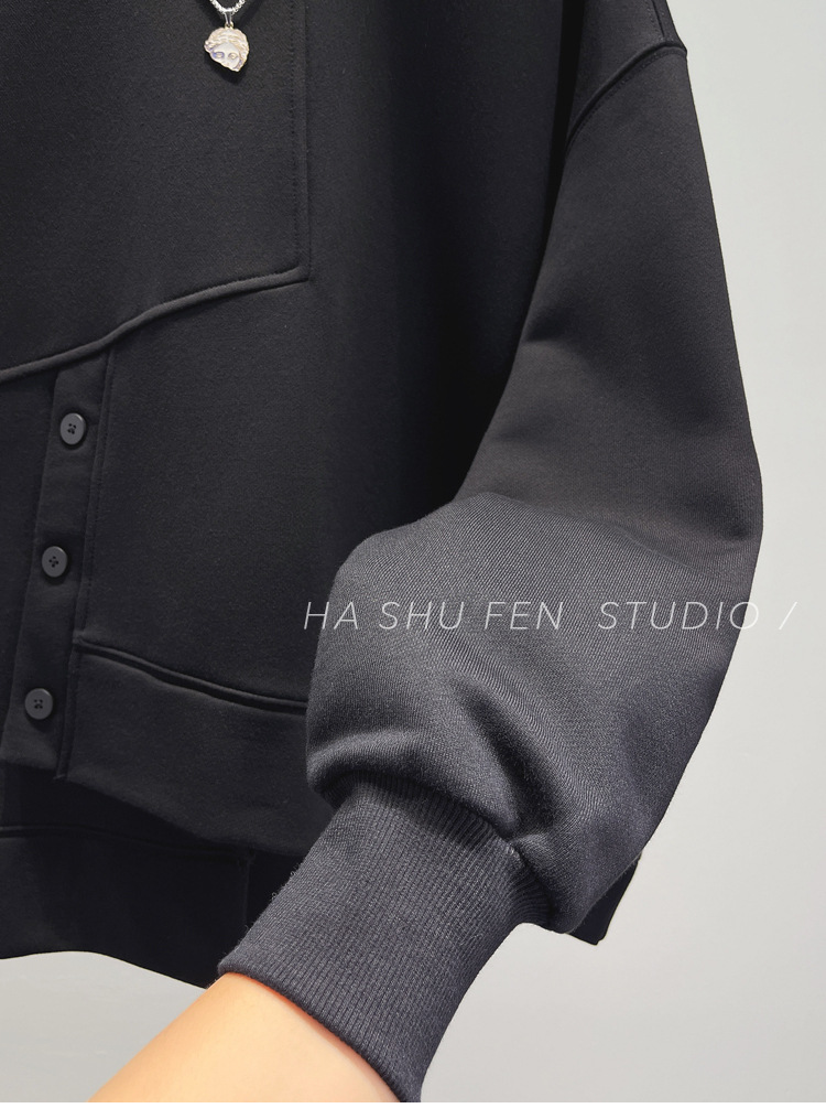 도파민 불규칙한 2023 가을 새로운 둥근 목 흑백 얇은 땀 여성의 캐주얼 느슨한 풀오버 탑