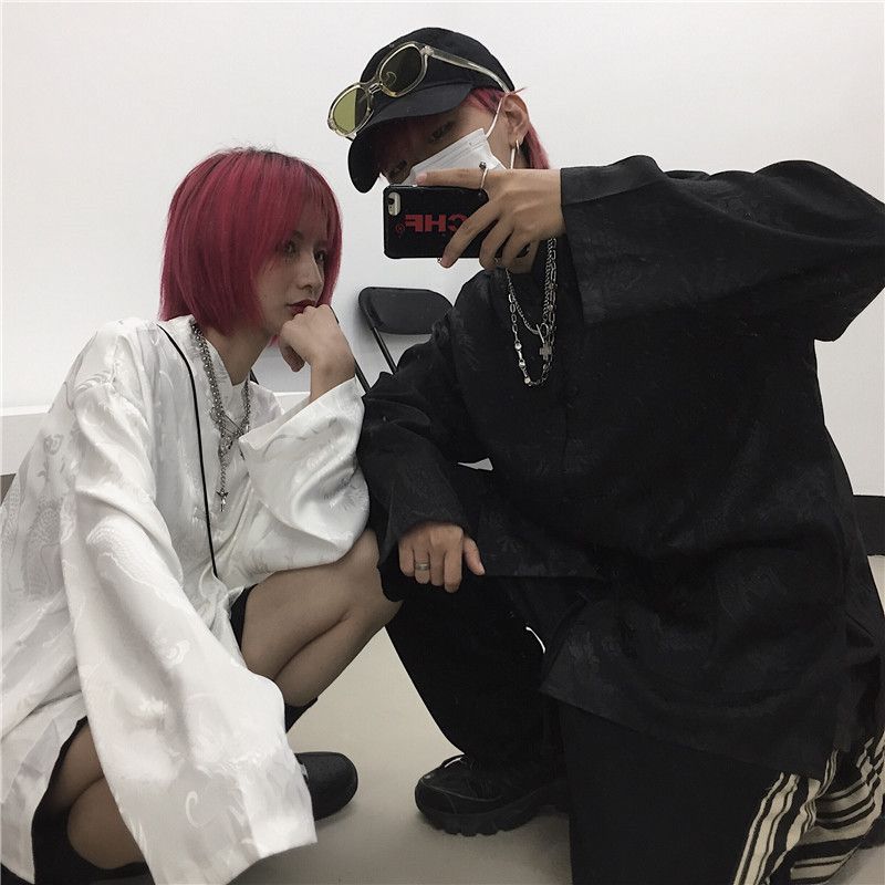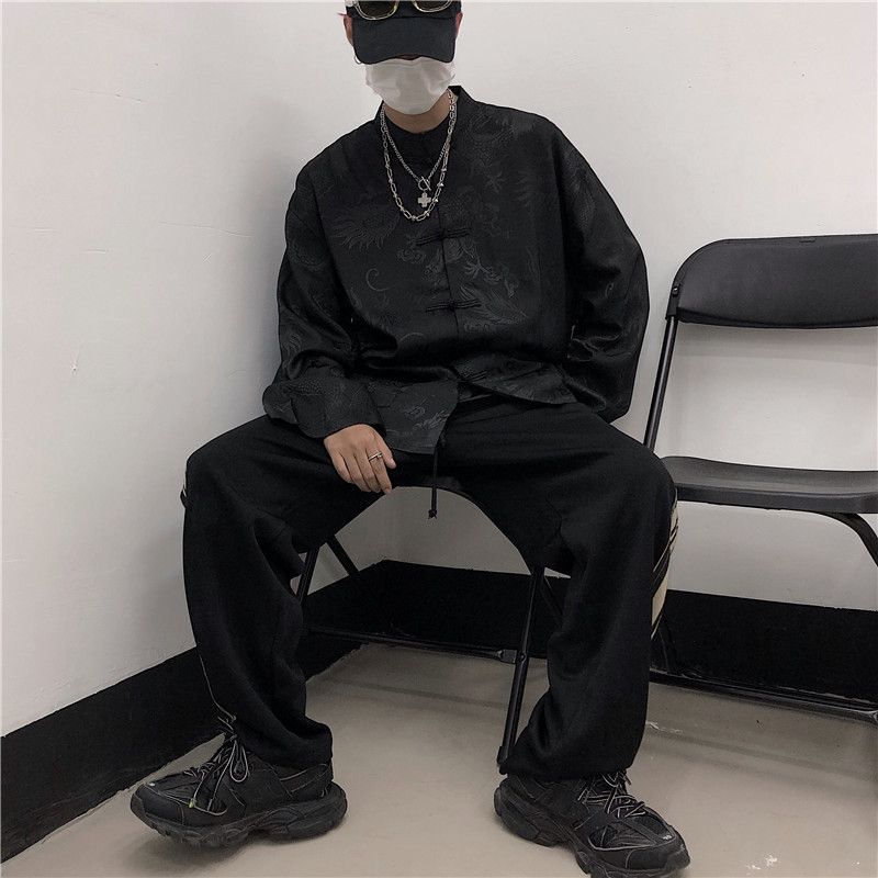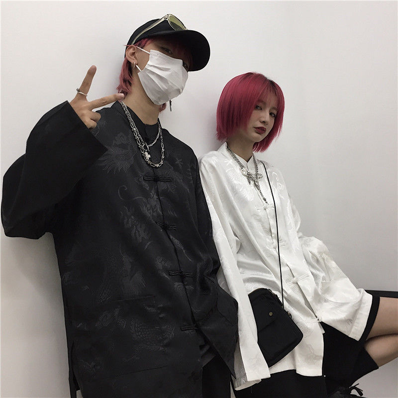 새로운 중국 스타일 태극권 국가 스타일 플레이트 버클 사이버 연예인 셔츠 남자와 여자의 한푸 탕 세트 아이스 실크 국가 패션 중국 튜닉 드래곤 가운 잠옷