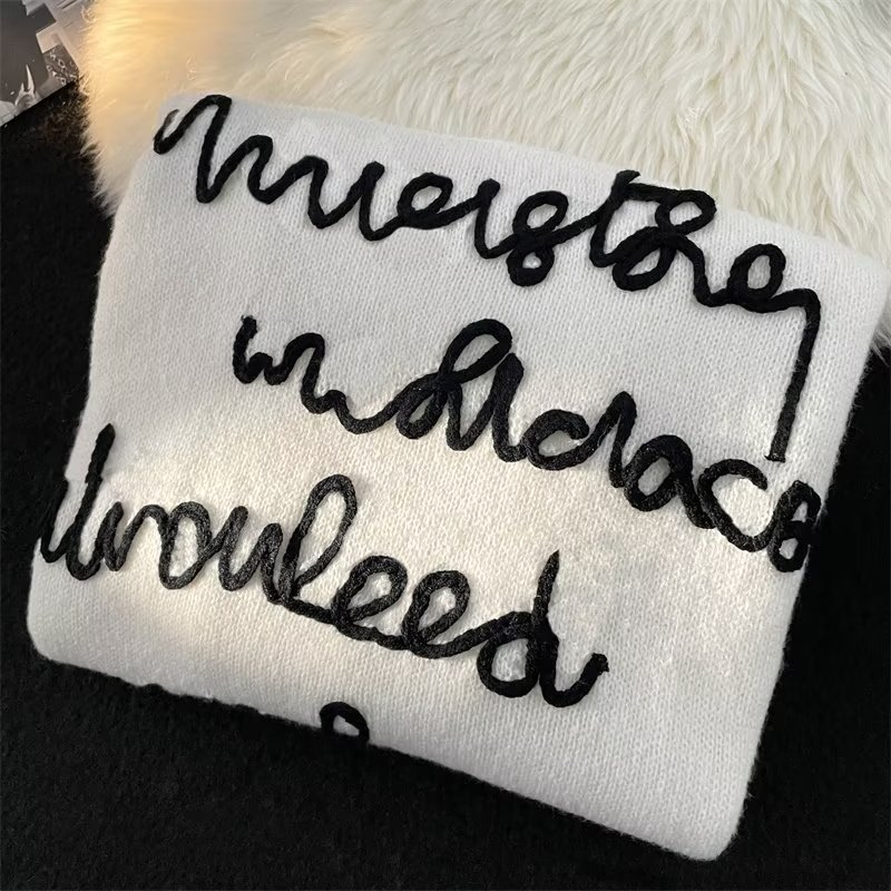 2023 새로운 게으른 스타일 체인 자수 편지 스웨터 미국 캐주얼 밀크 티 화이트 커플 스웨터 겨울