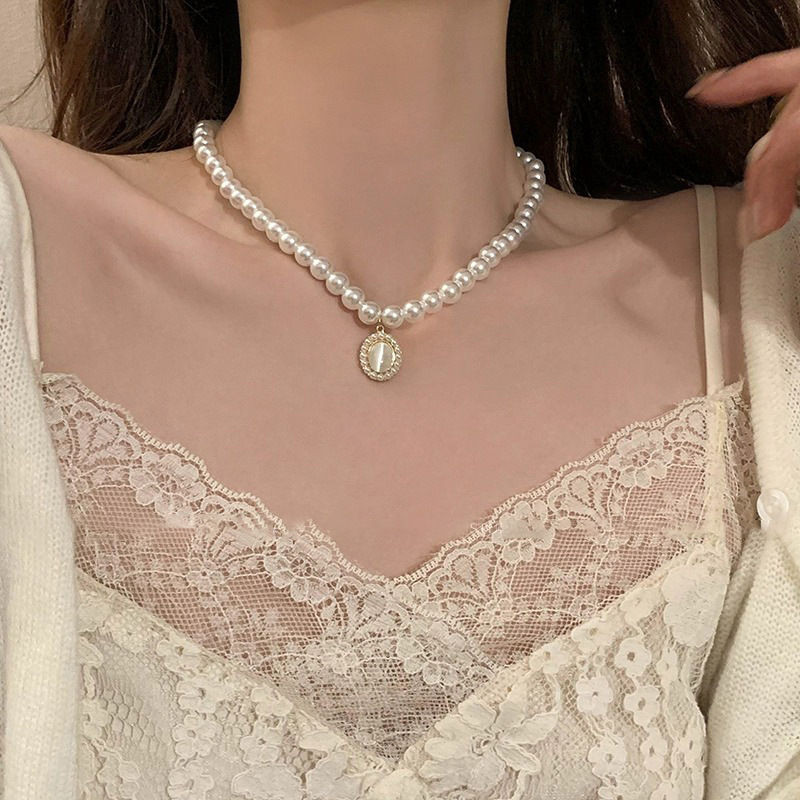 바로크 고양이 눈 펜던트 진주 목걸이 여성의 가을과 겨울 새로운 한국 스타일 디자인 빛 럭셔리 복고풍 궁전 스타일 목걸이 체인스토어 가기