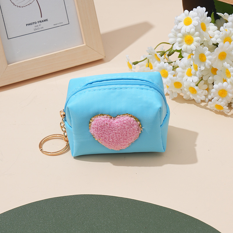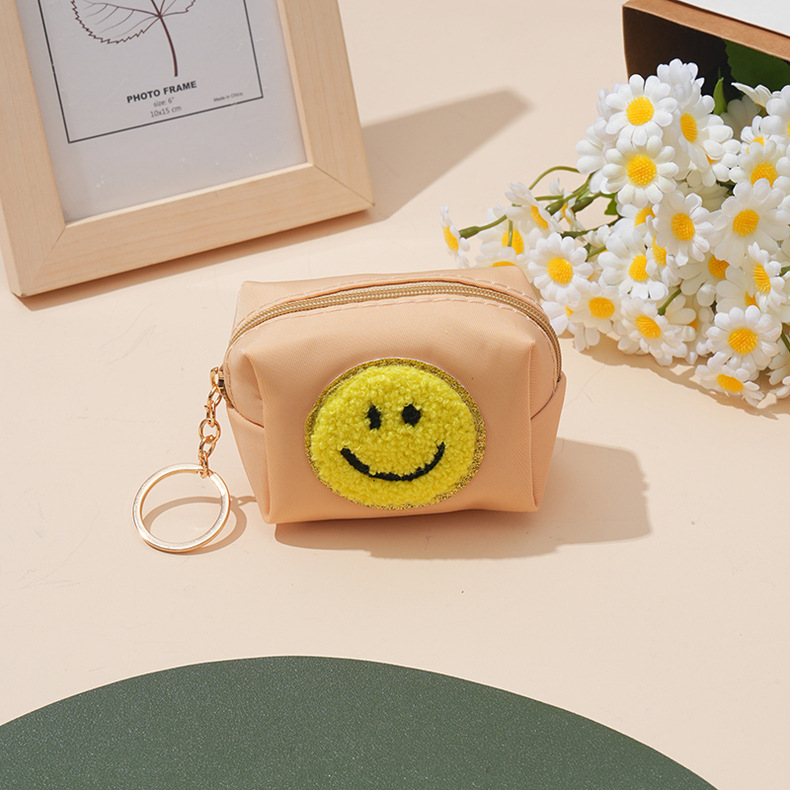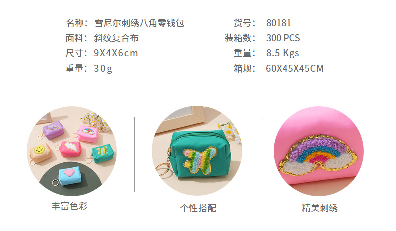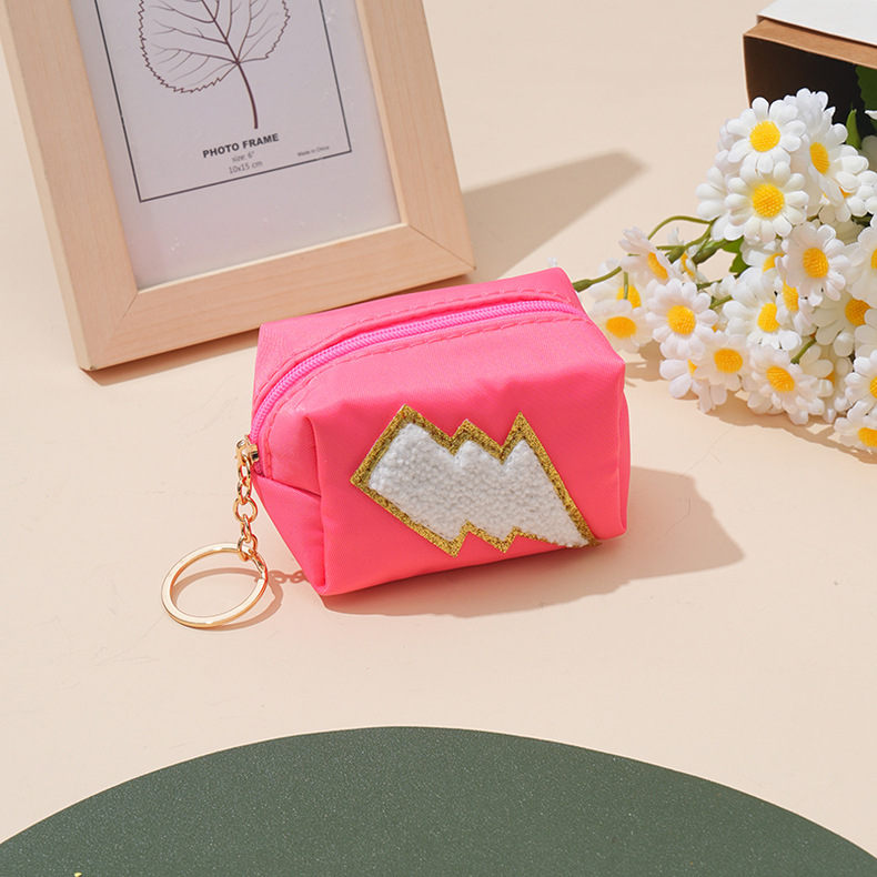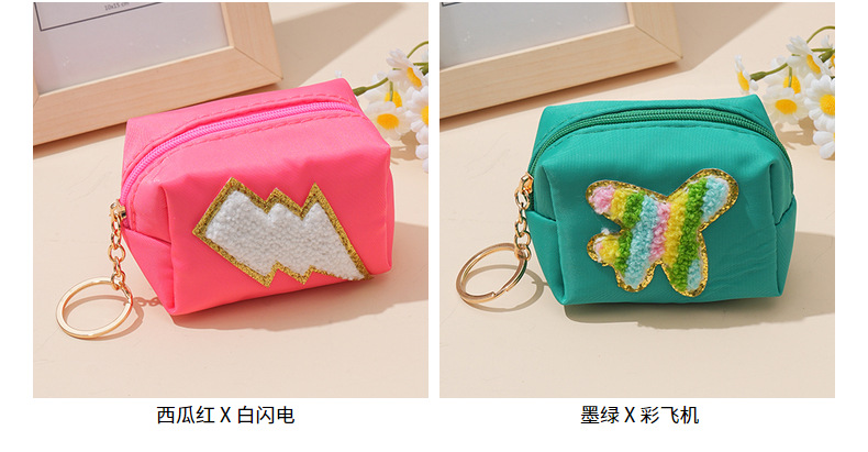 새로운 셔닐 실 수 놓은 귀여운 동전 지갑 번개 사탕 색 사랑 입 빨간 가방 웃는 얼굴 사랑 번개 가방스토어 가기