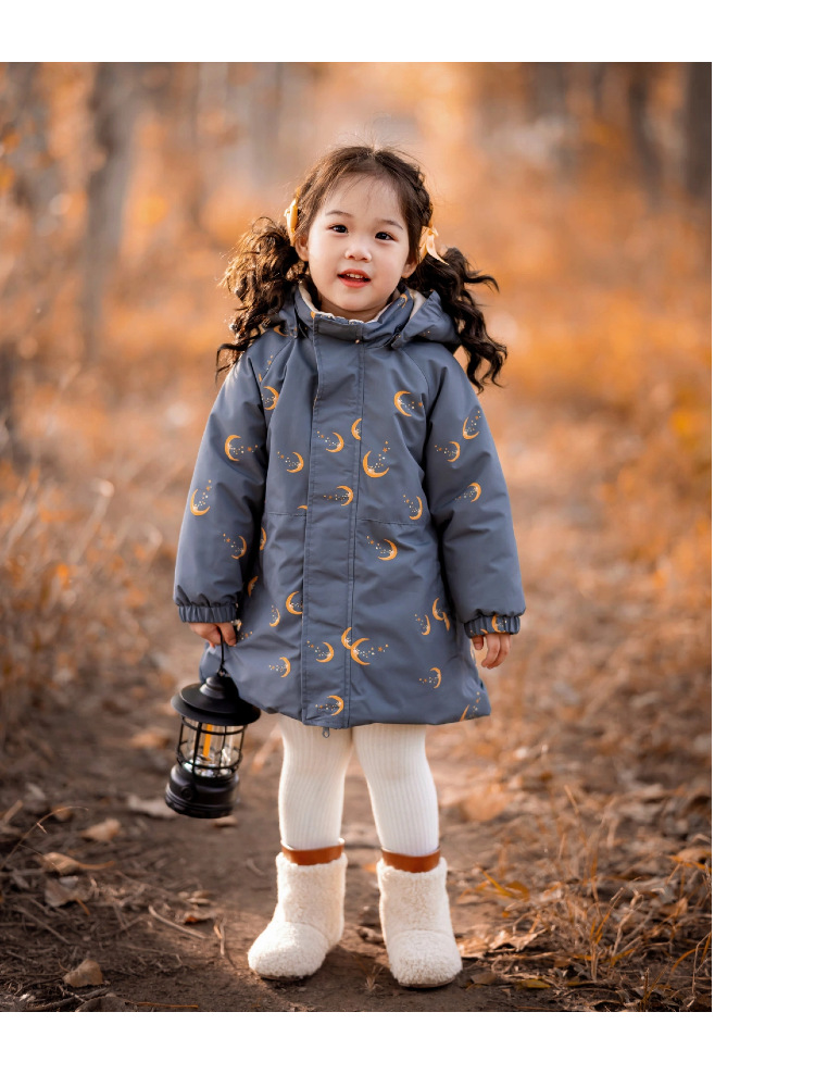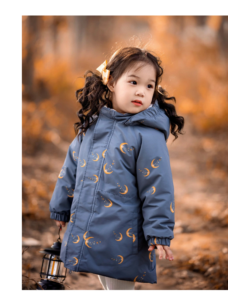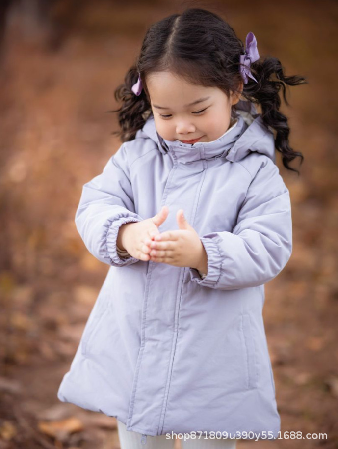 가을 겨울 두꺼운 어린이 중간 길이 파카 플러스 벨벳 베이비 코트 방풍 면 코트 소년과 소녀 겨울 면 코트