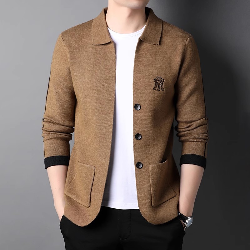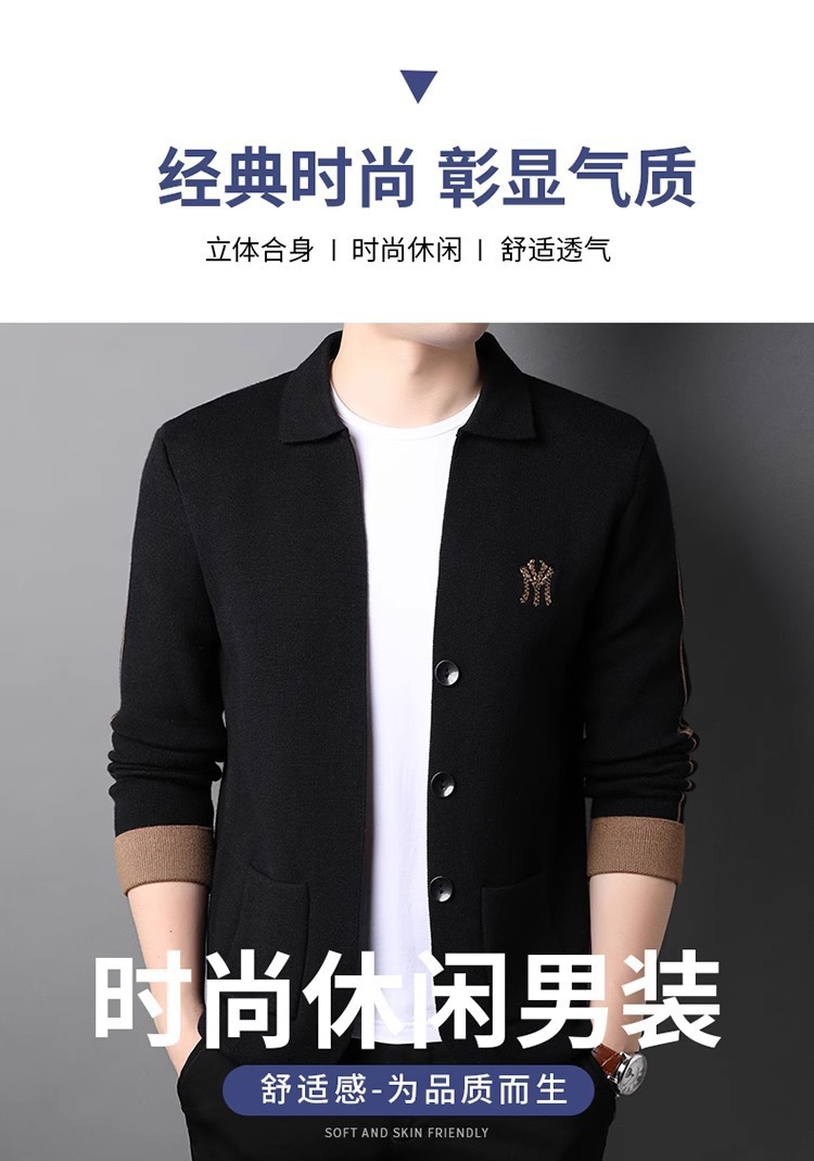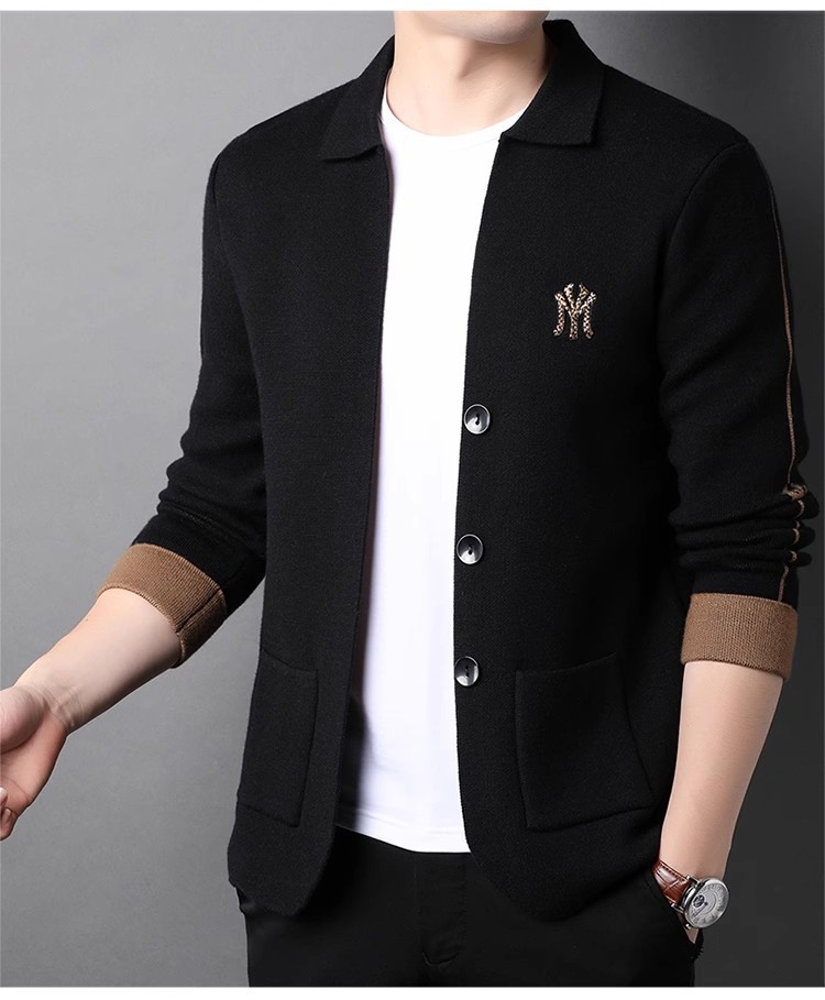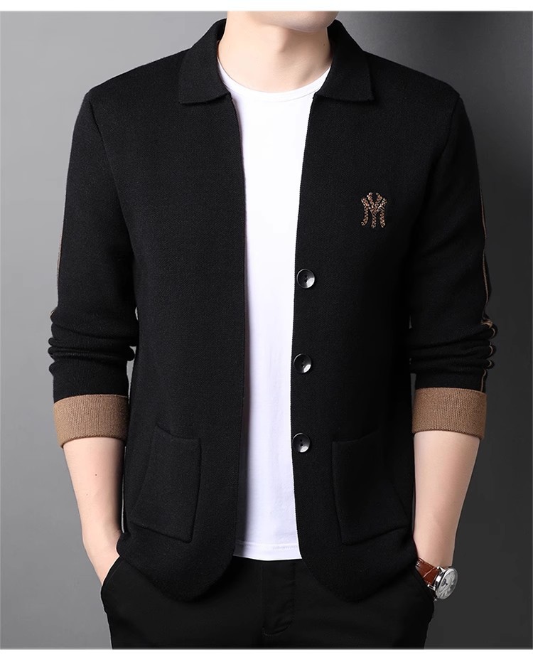 봄과 가을 남성 니트 라펠 재킷 가디건 젊은 중년 유행 단색 올매치 슬림핏 스웨터 비즈니스 재킷스토어 가기