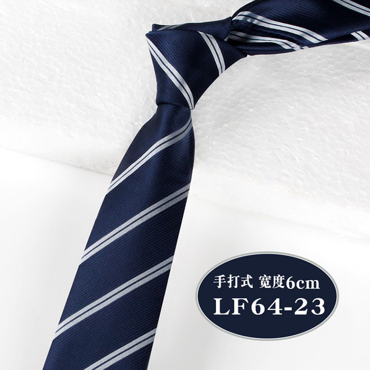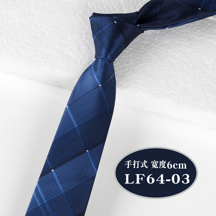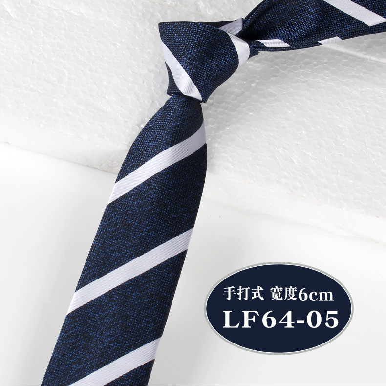 한국 스타일 6cm 남성용 손 넥타이 좁은 판 비즈니스 전문 캐주얼 블루 스트라이프 격자 무늬 폴리에스터 넥타이 1200 바늘