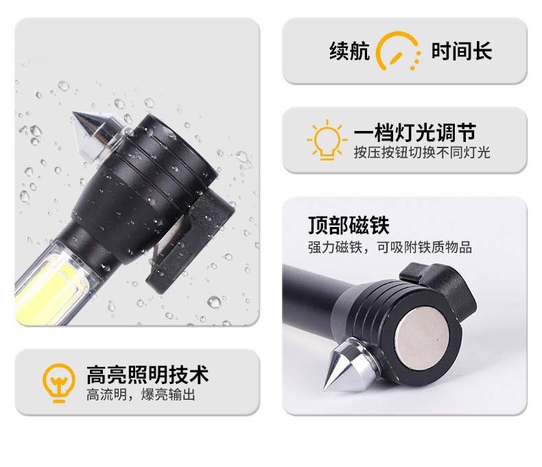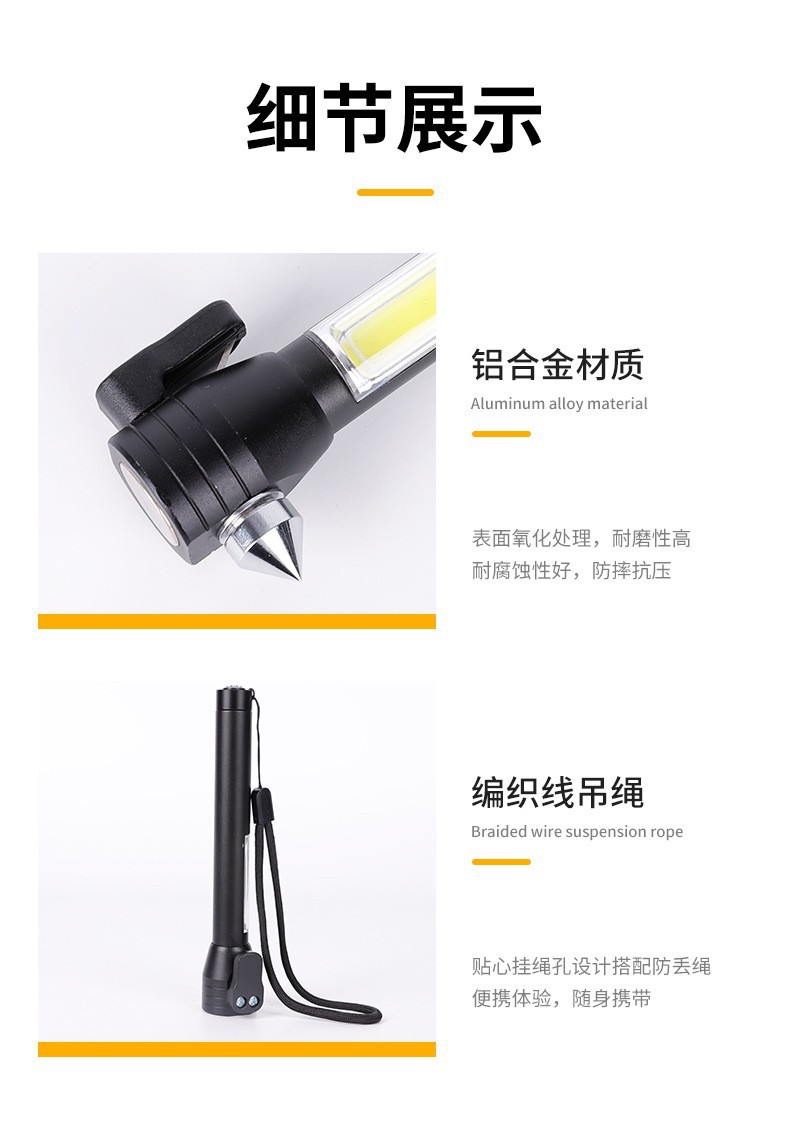 다기능 휴대용 차량 방폭 손전등 야외 안전 망치 비상 화재 조명 램프 마그네틱 벨트 절단