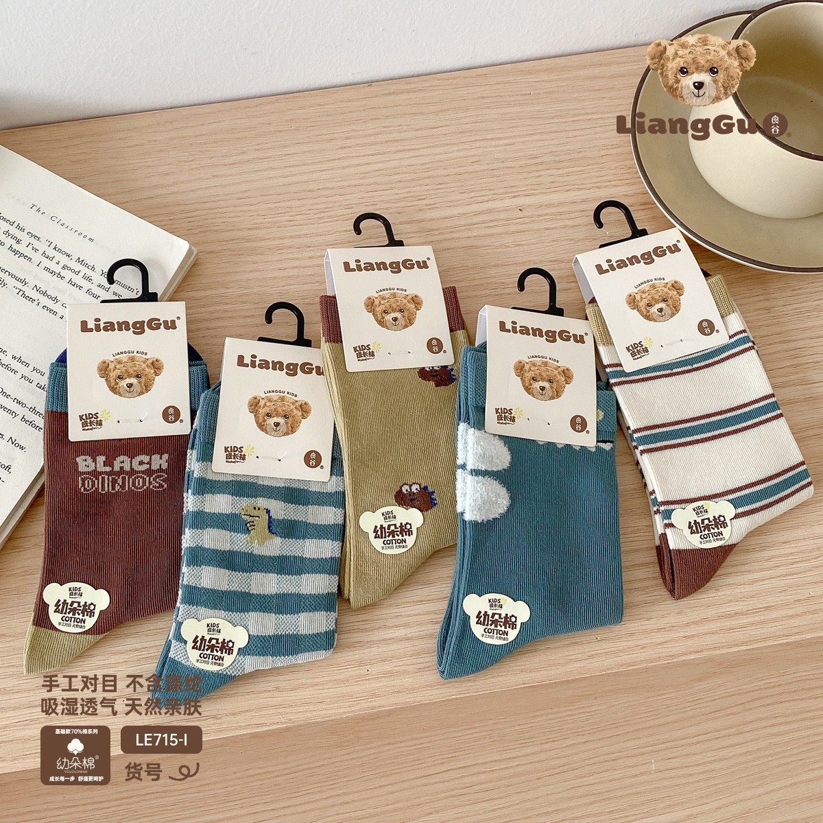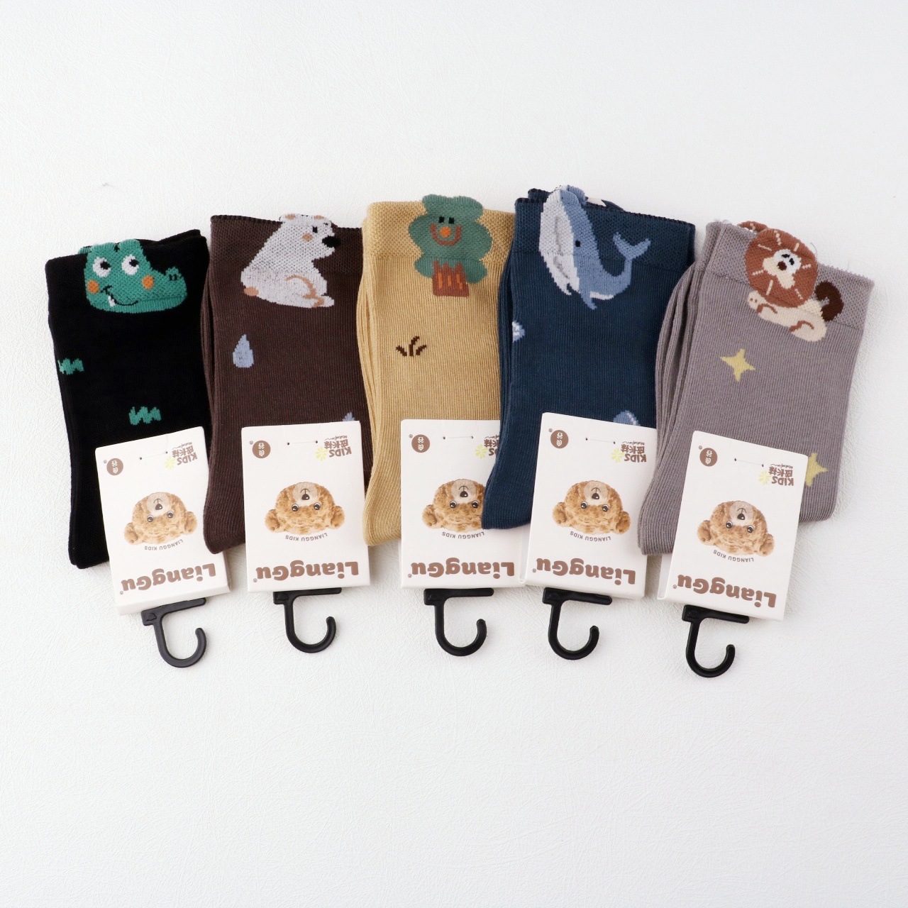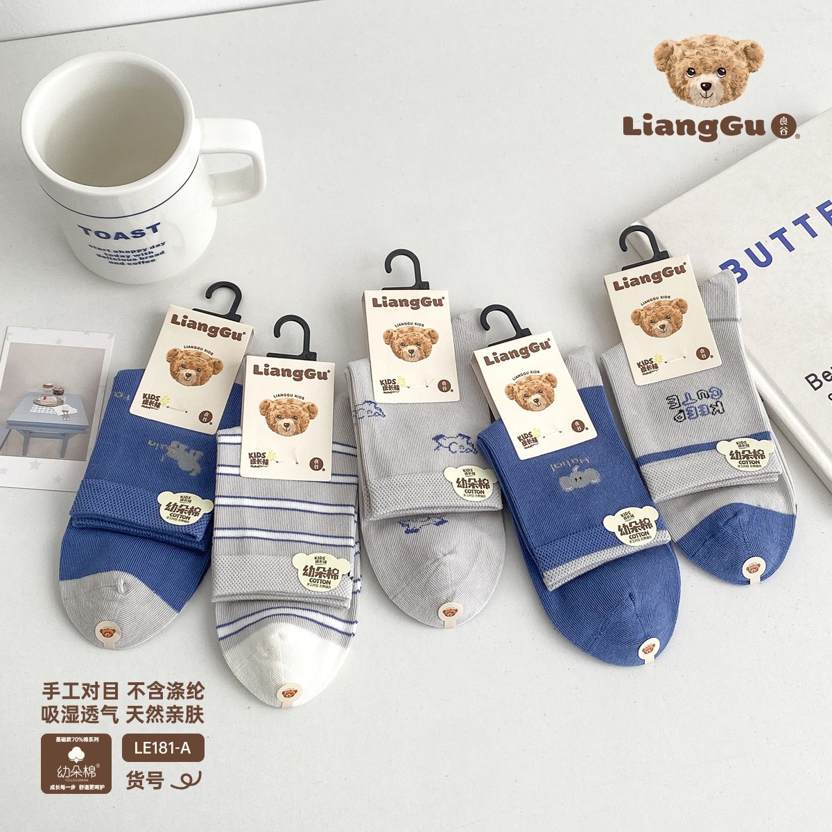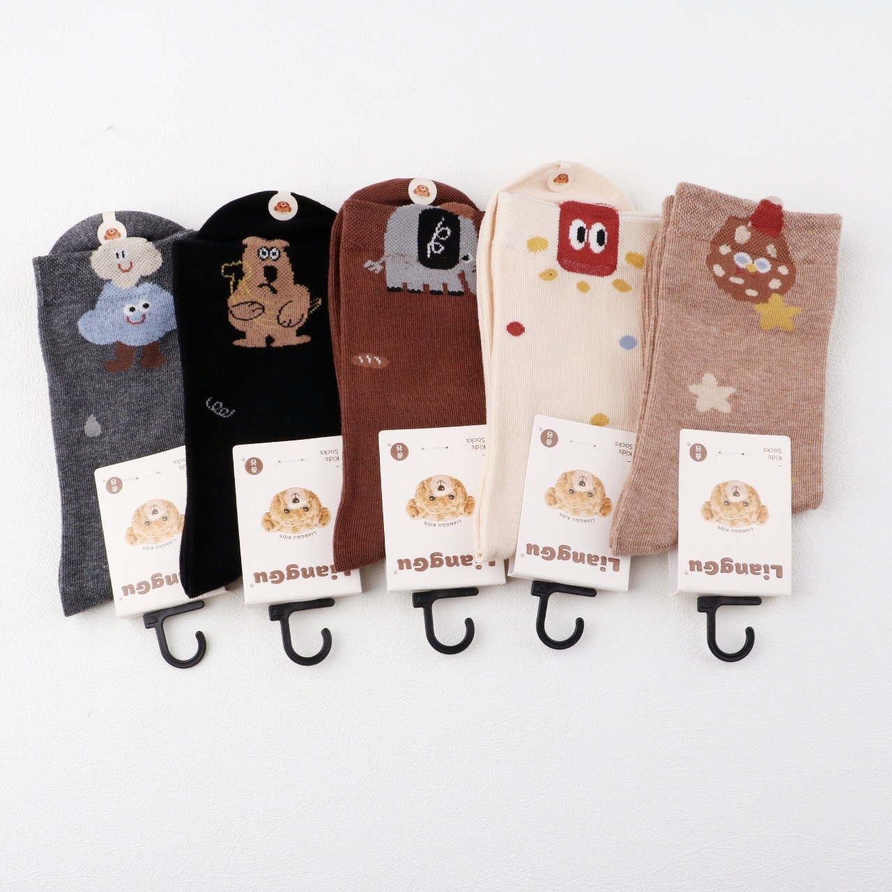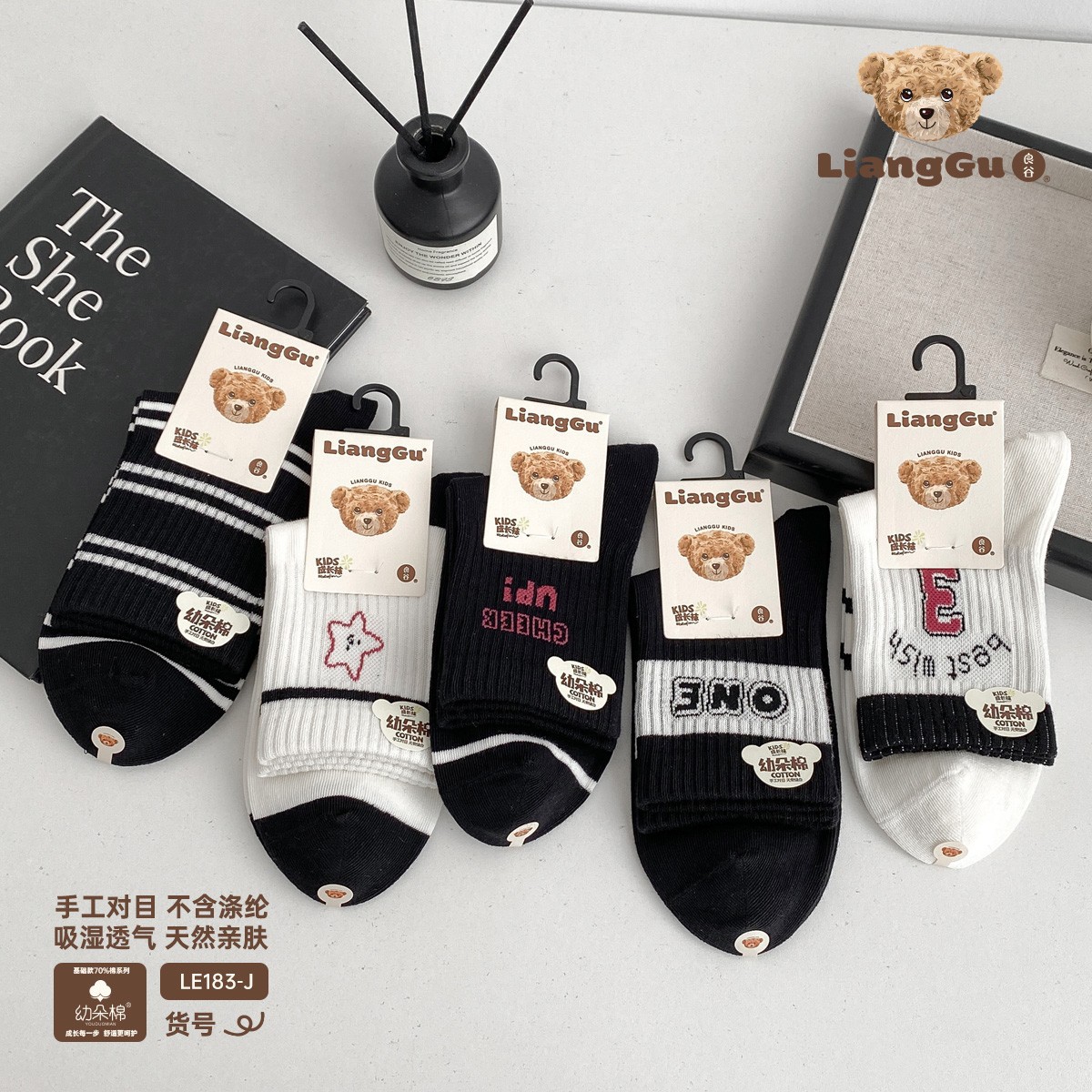 도매》5켤레 가격》가을 겨울 Lianggu 어린이 양말, 면 양말, 신상 학생 양말, 가방에 담긴 Liaoyuan 어린이 양말