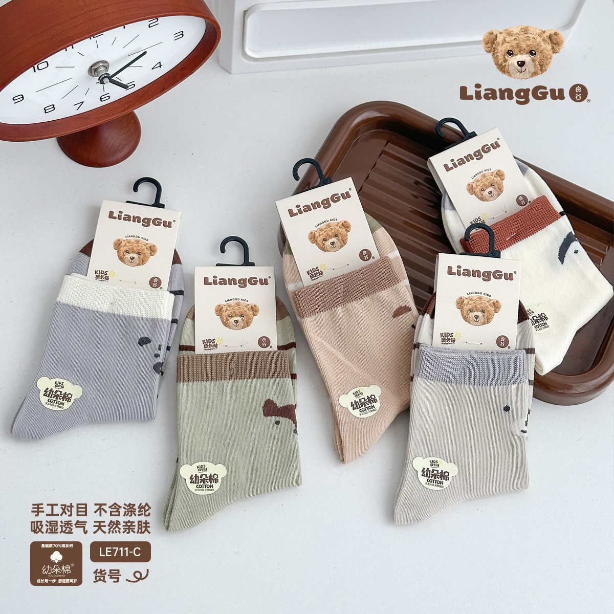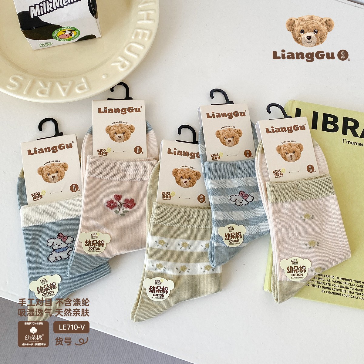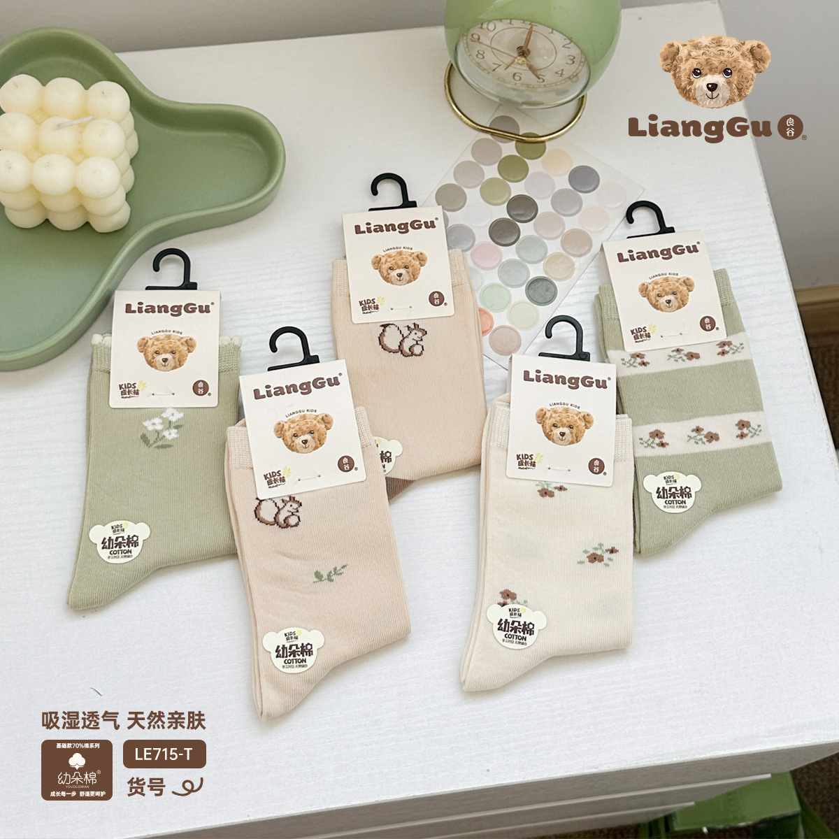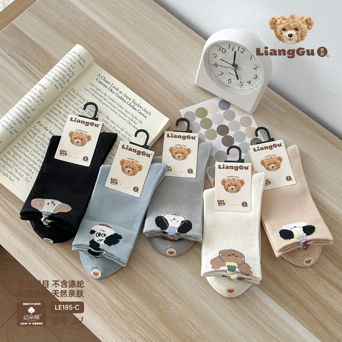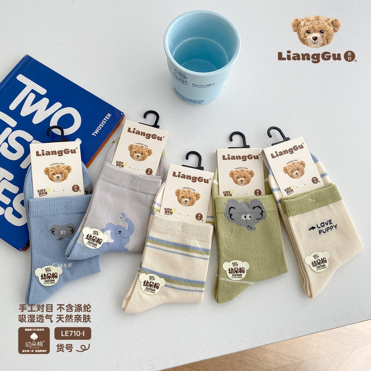 도매》5켤레 가격》가을 겨울 Lianggu 어린이 양말, 면 양말, 신상 학생 양말, 가방에 담긴 Liaoyuan 어린이 양말