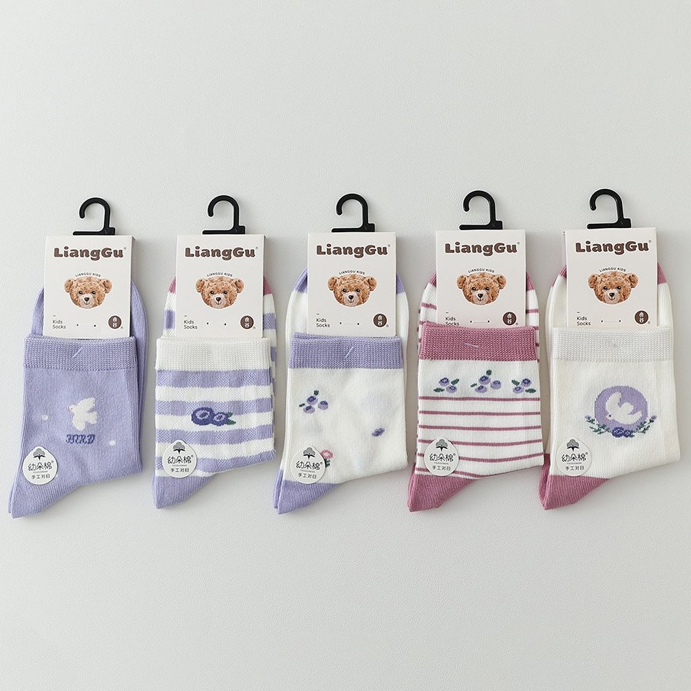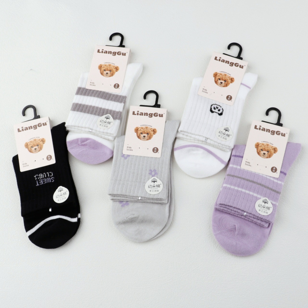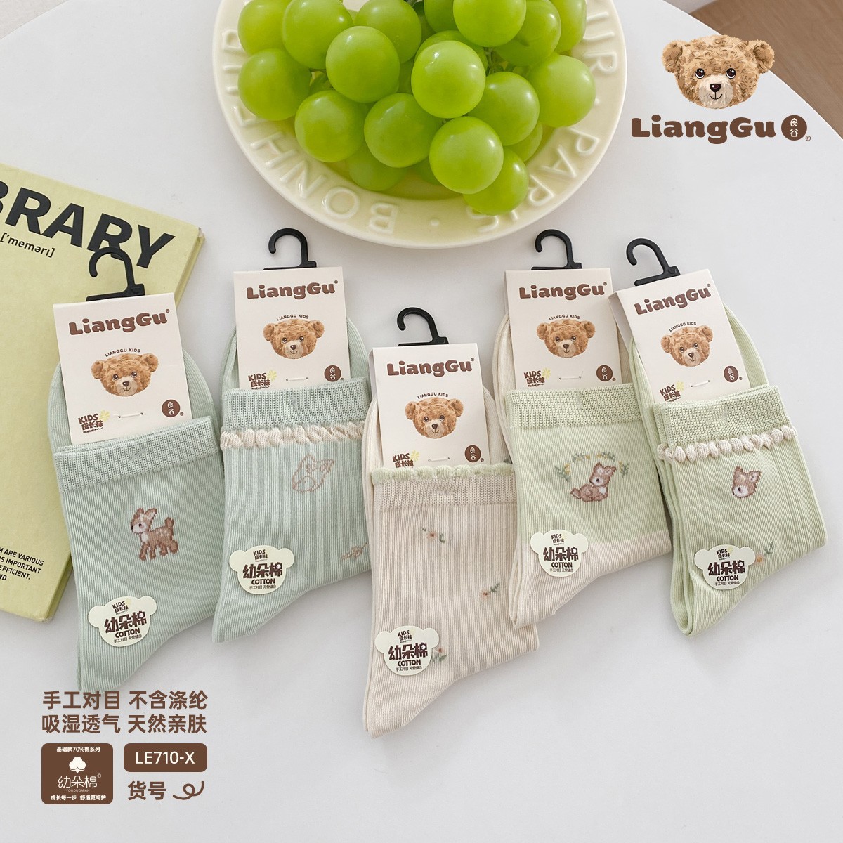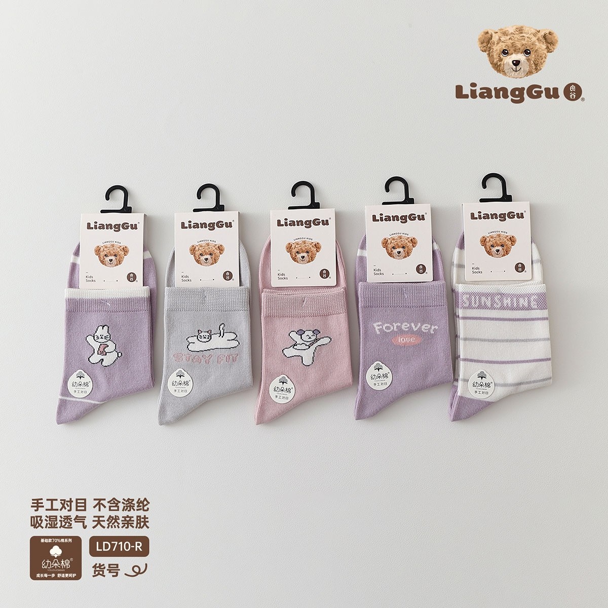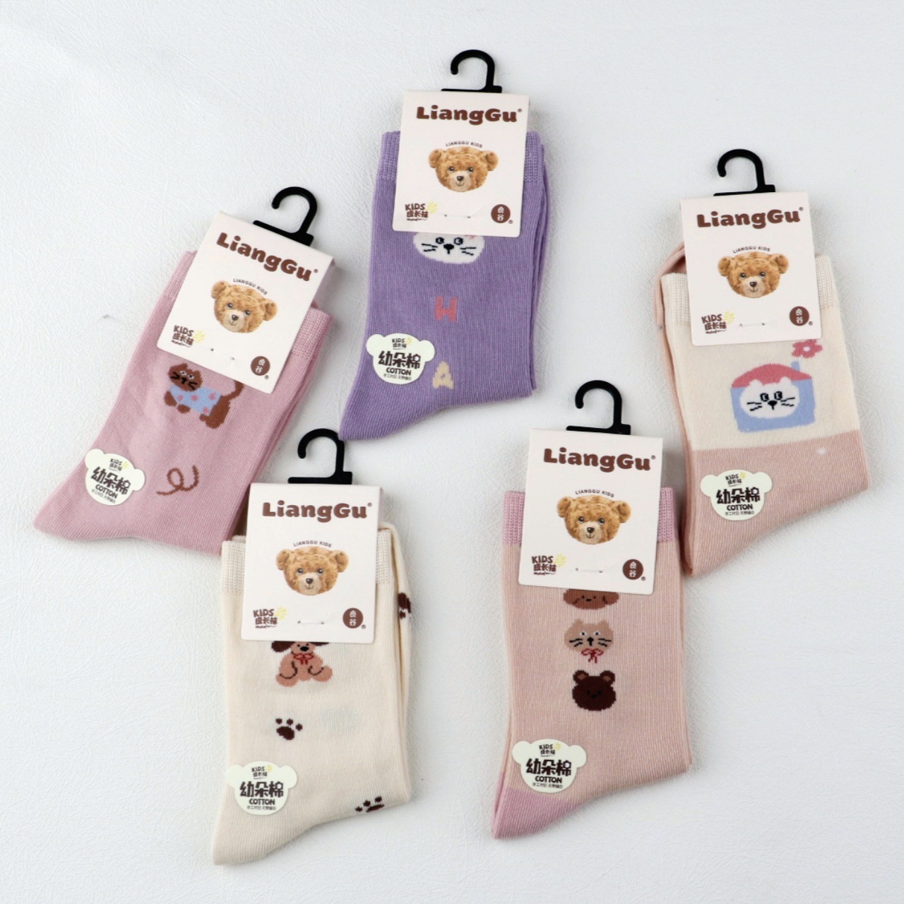 도매》5켤레 가격》가을 겨울 Lianggu 어린이 양말, 면 양말, 신상 학생 양말, 가방에 담긴 Liaoyuan 어린이 양말