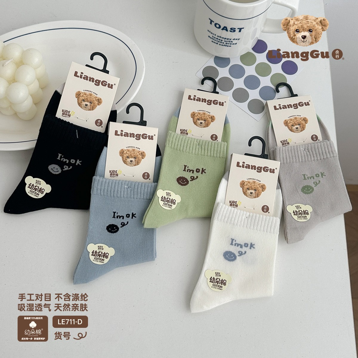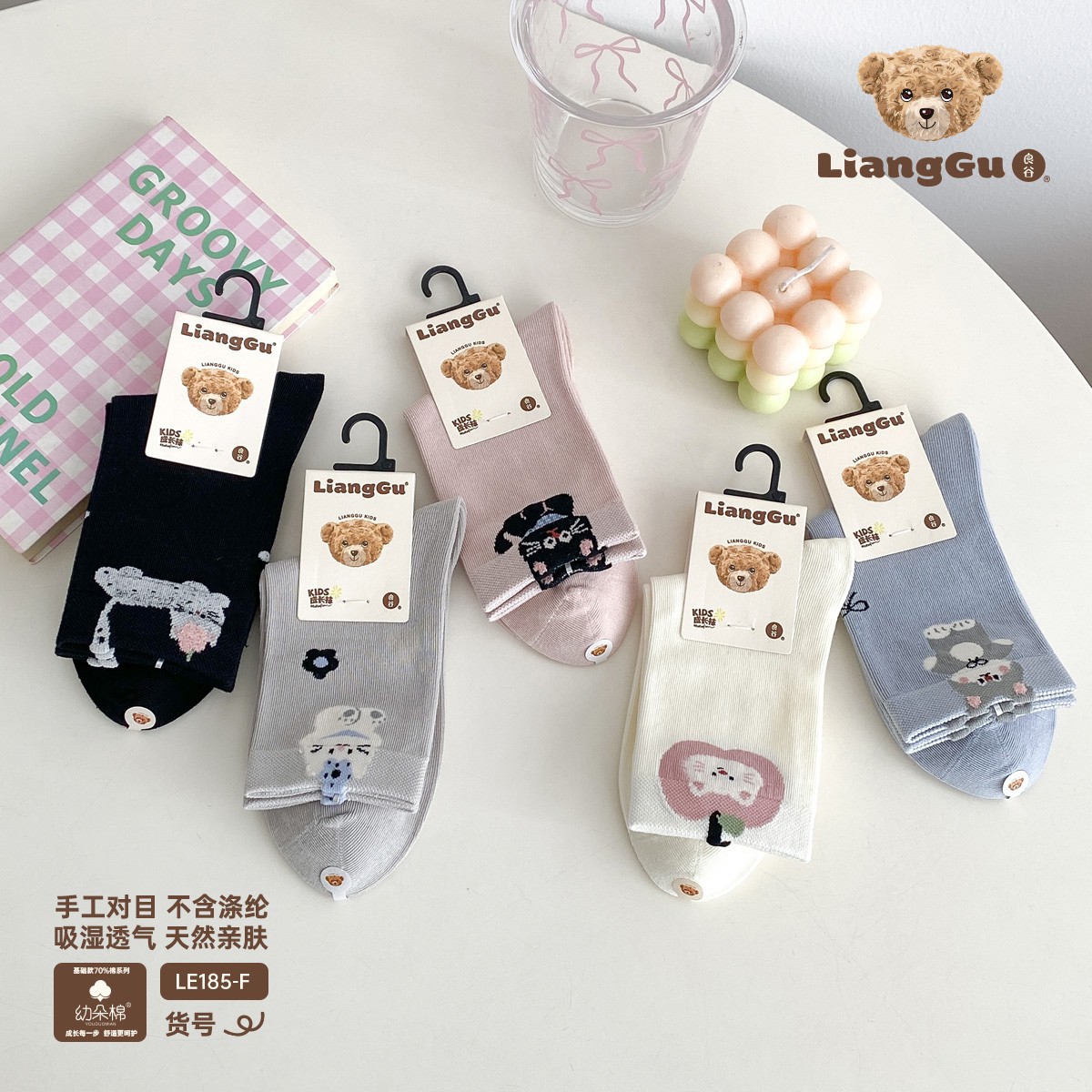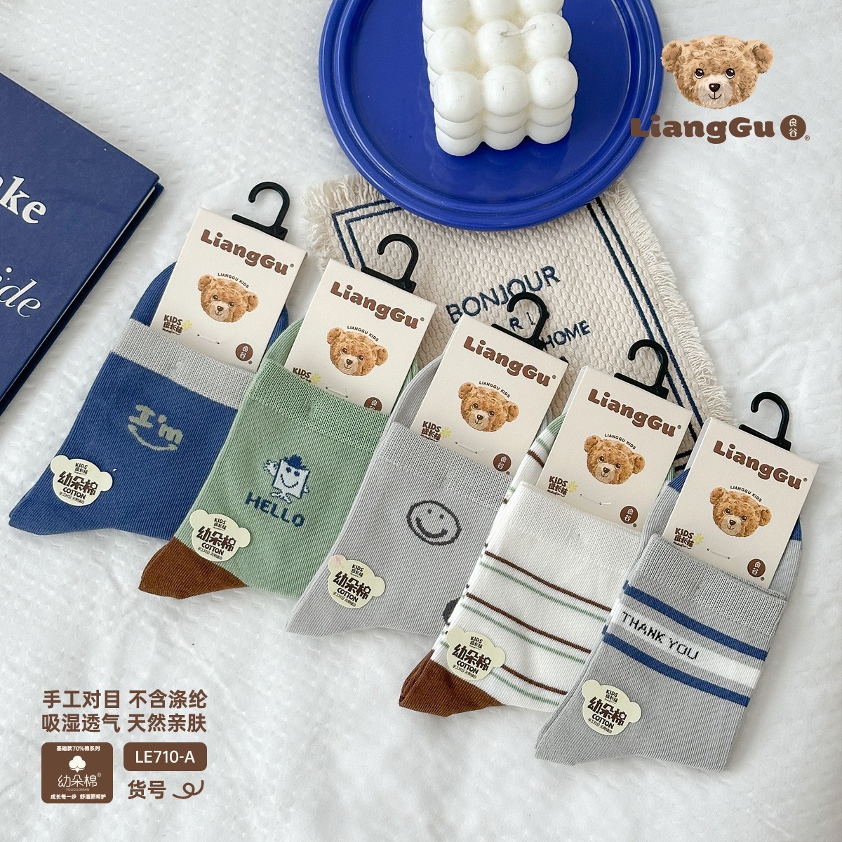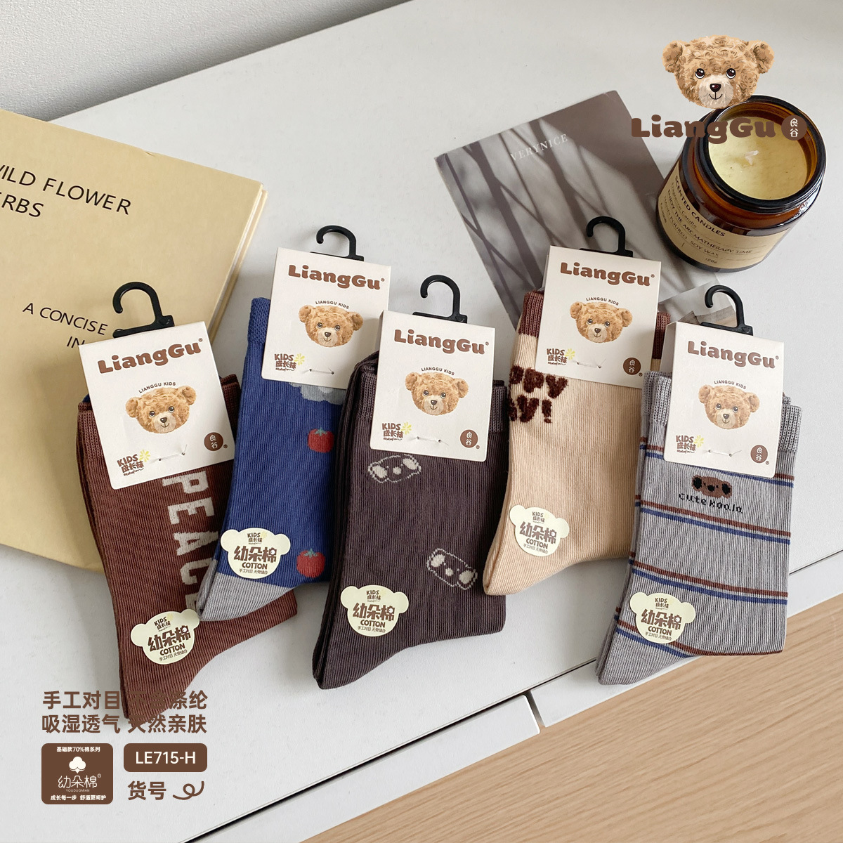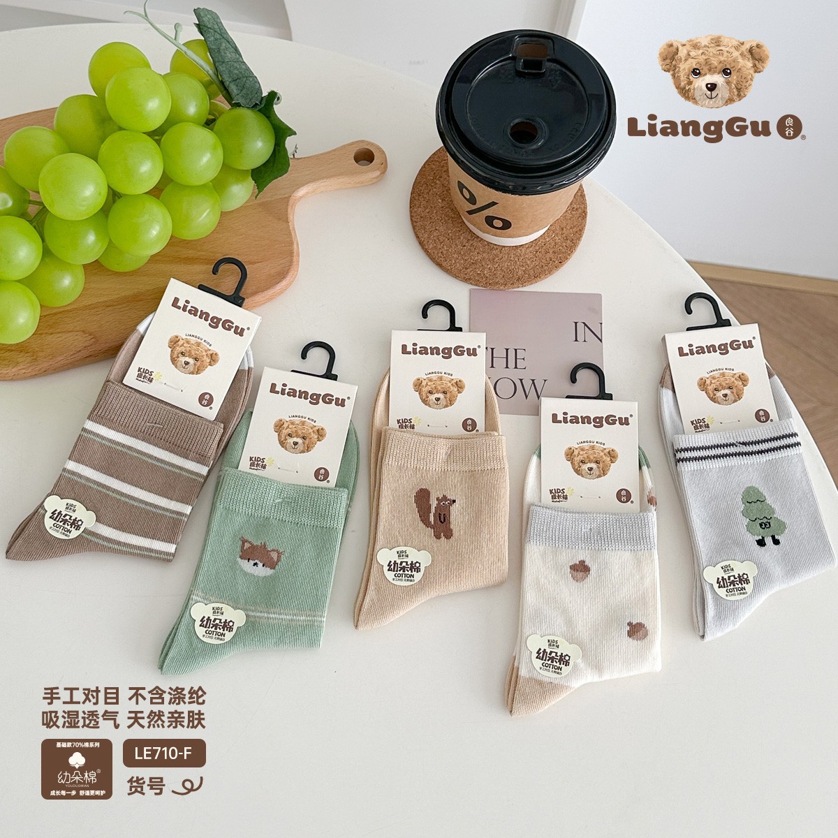 도매》5켤레 가격》가을 겨울 Lianggu 어린이 양말, 면 양말, 신상 학생 양말, 가방에 담긴 Liaoyuan 어린이 양말스토어 가기