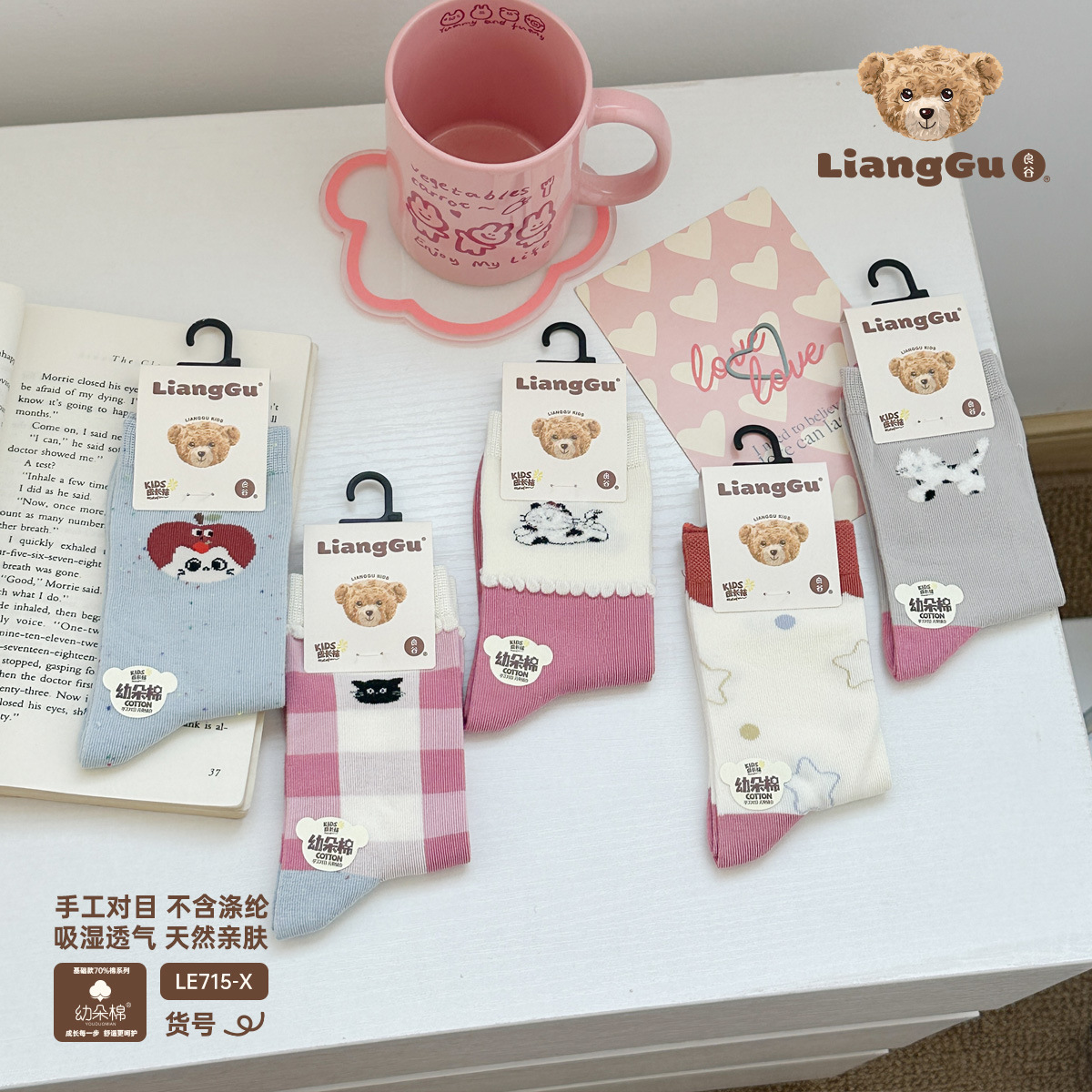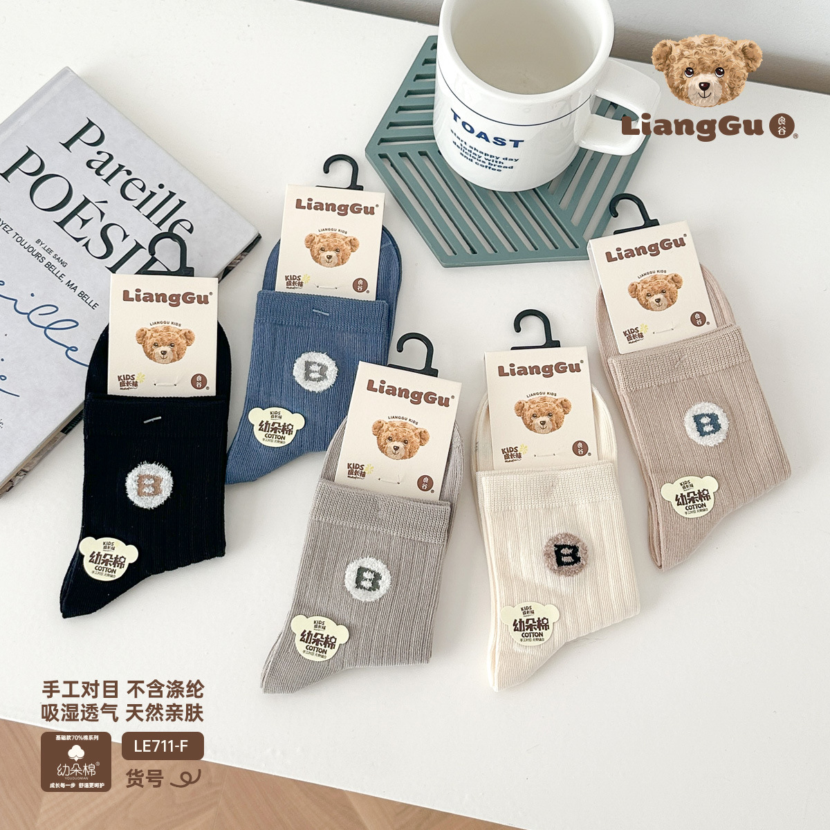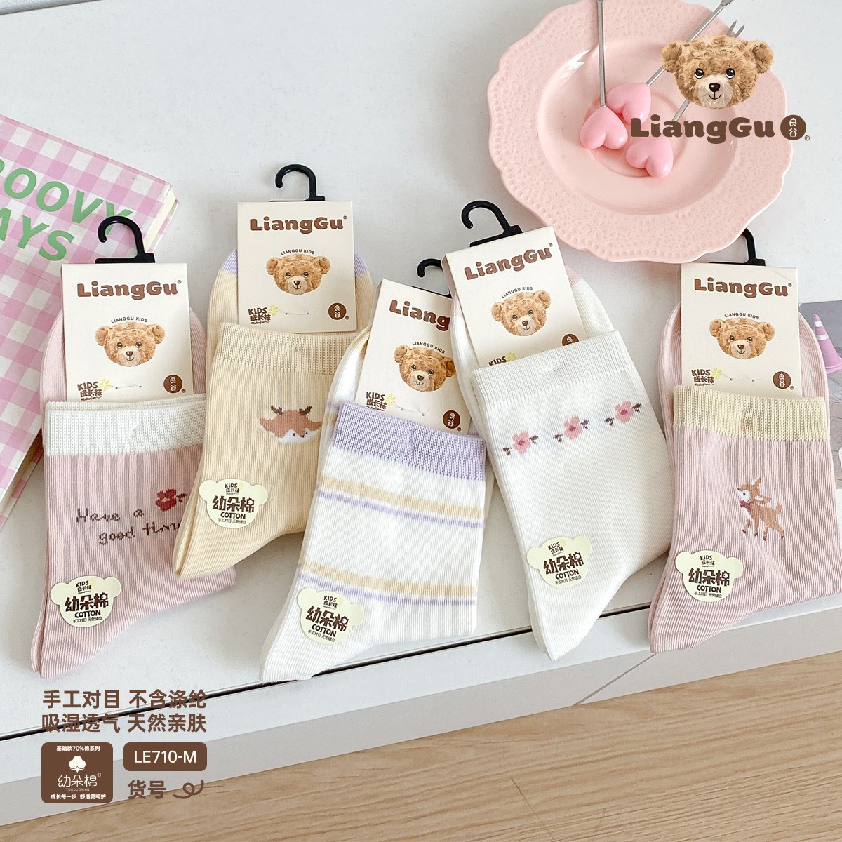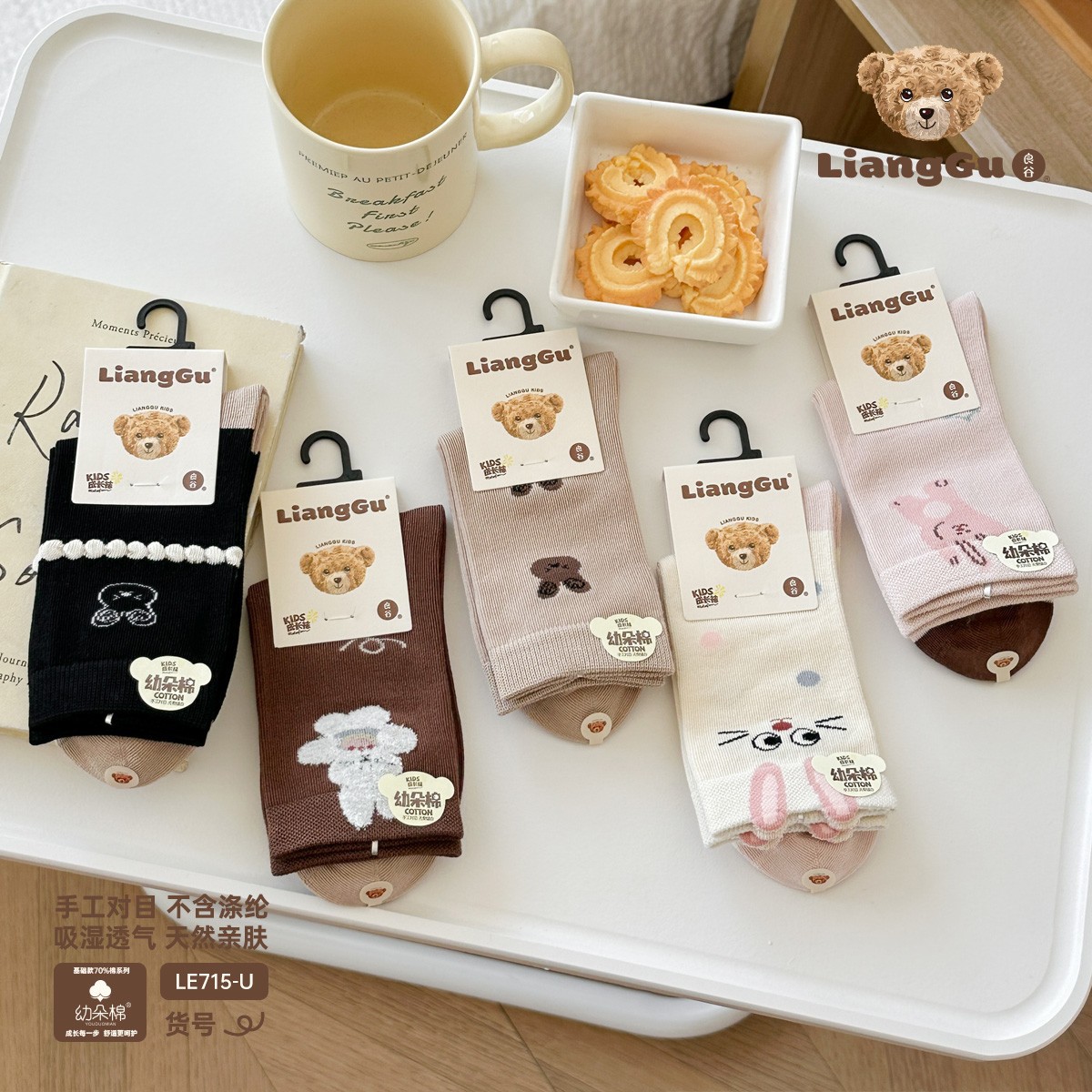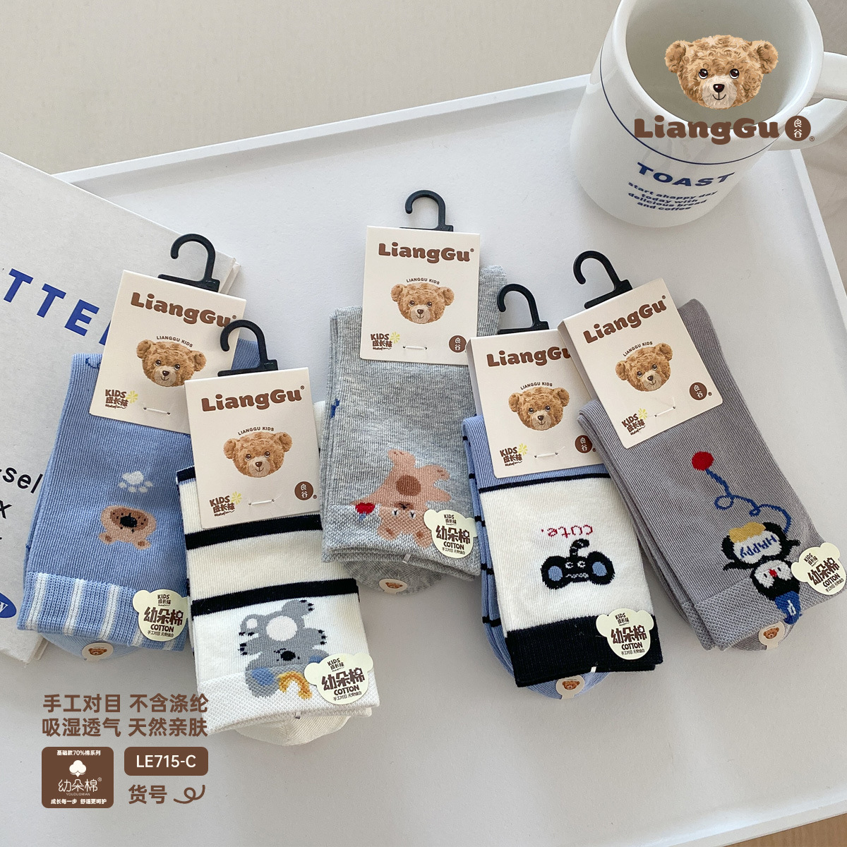 도매》5켤레 가격》가을 겨울 Lianggu 어린이 양말, 면 양말, 신상 학생 양말, 가방에 담긴 Liaoyuan 어린이 양말스토어 가기