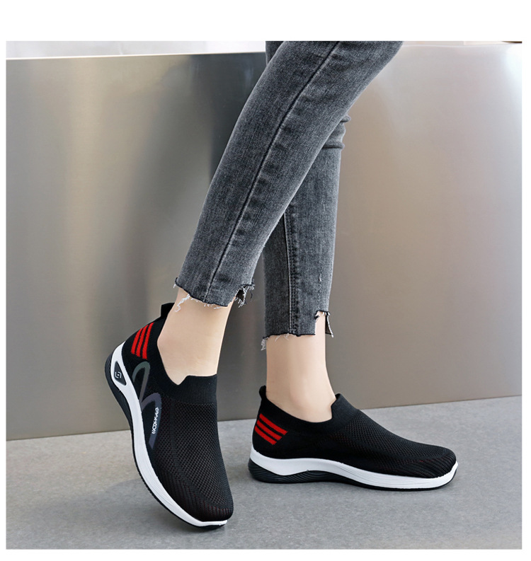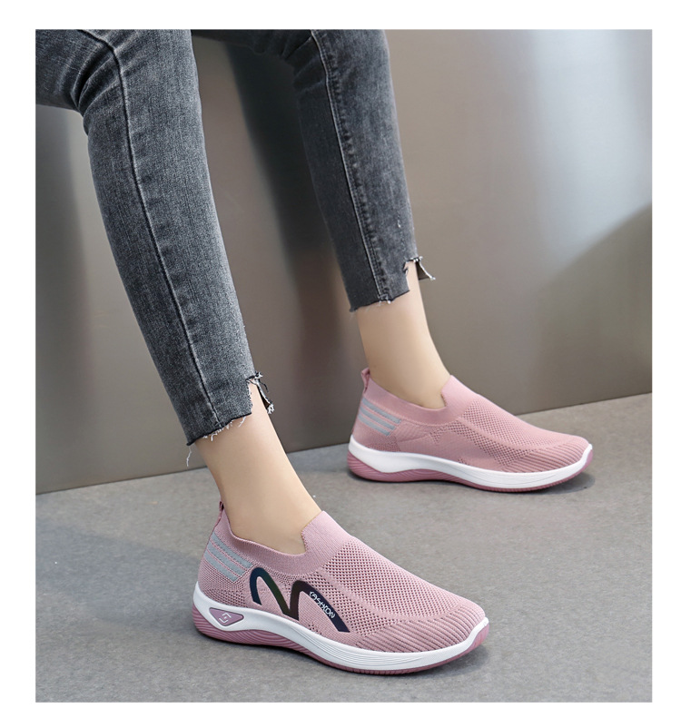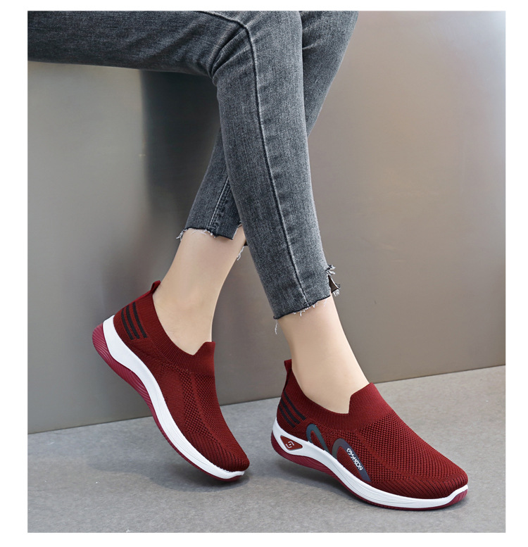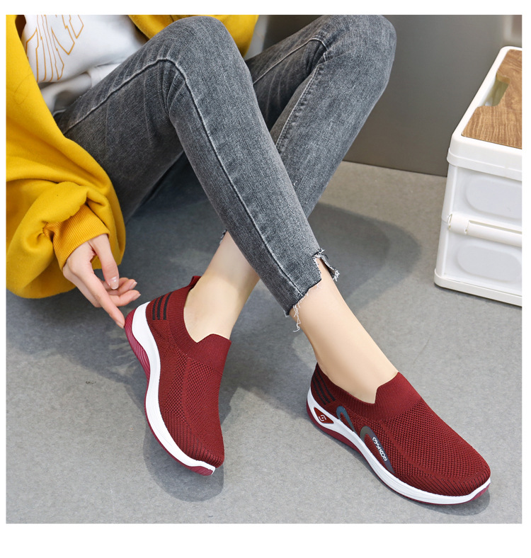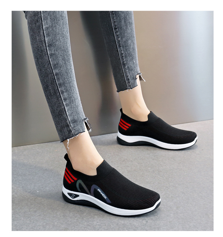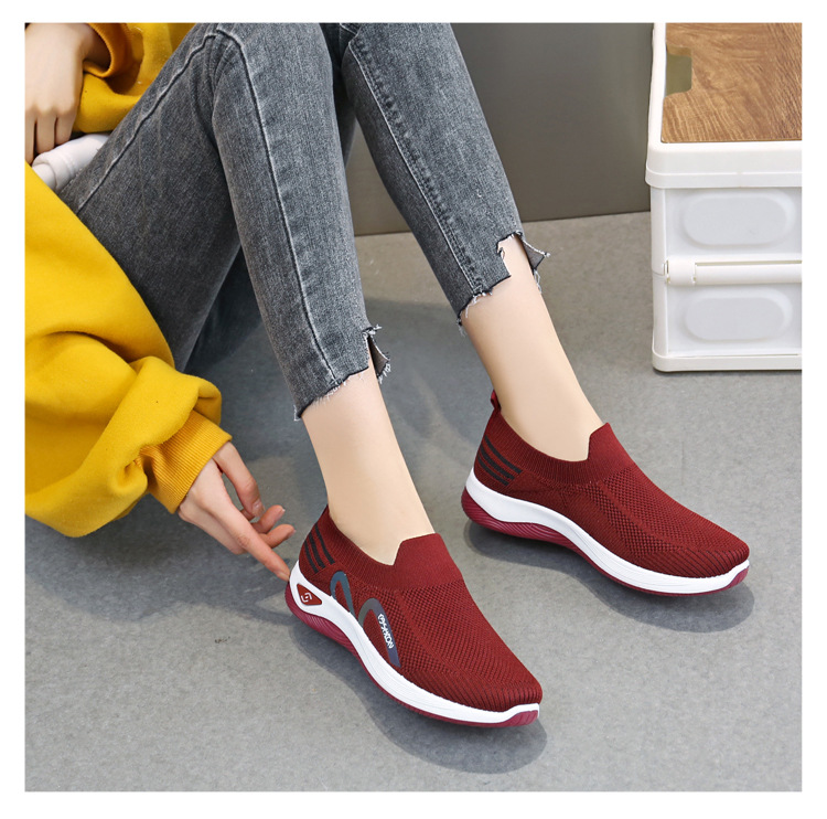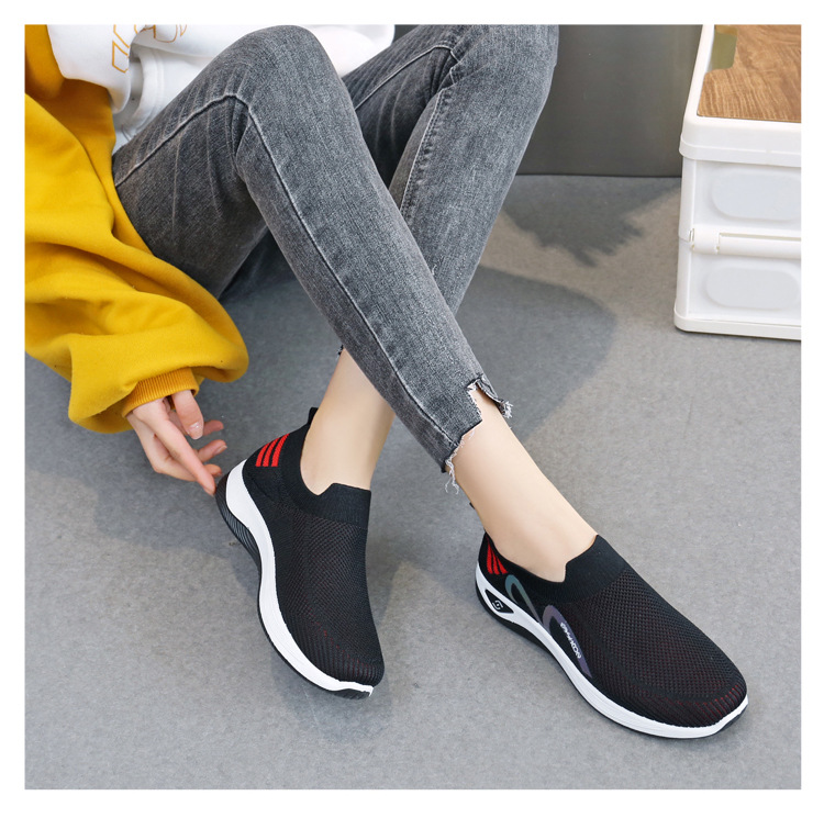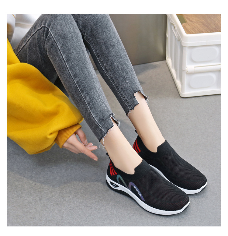 새로운 플라이 니트 슬립온 양말형 캐주얼 여성화 마사지 밑창 통기성 엄마 신발 워킹화