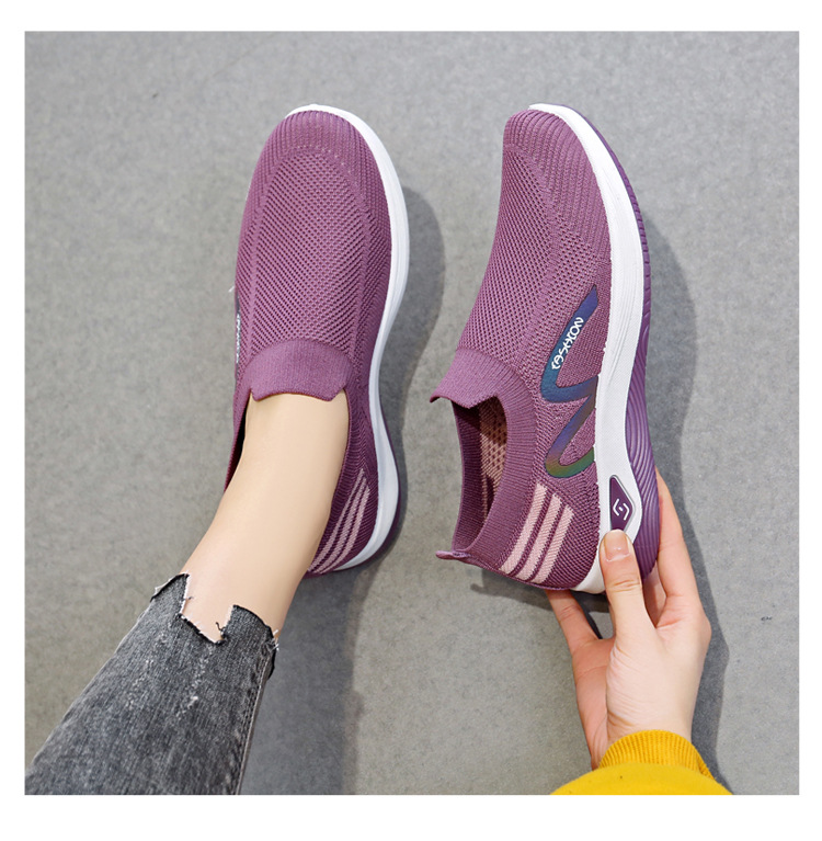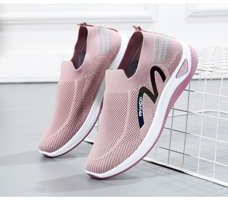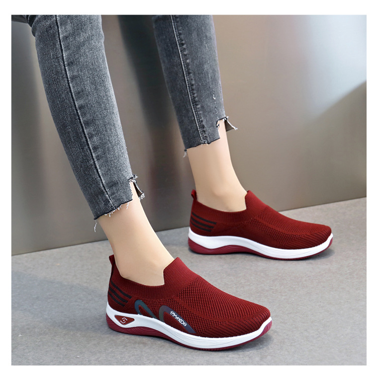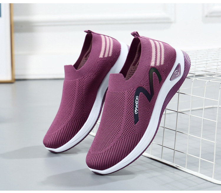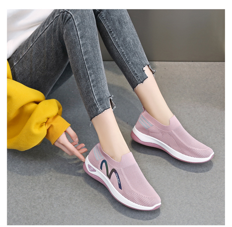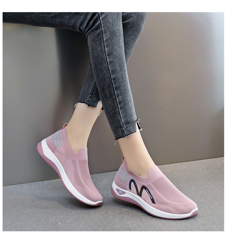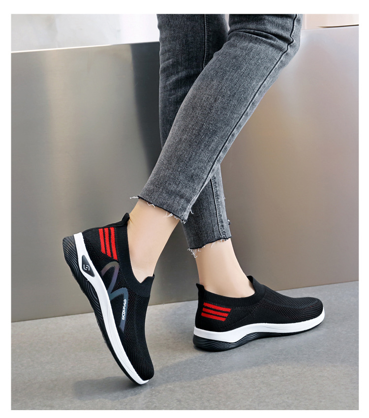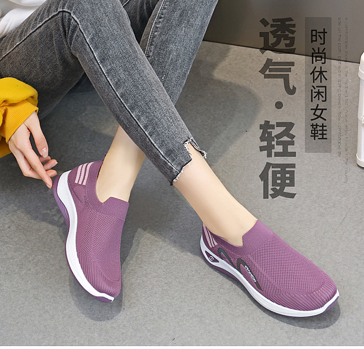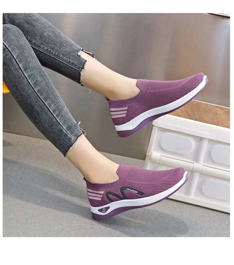 새로운 플라이 니트 슬립온 양말형 캐주얼 여성화 마사지 밑창 통기성 엄마 신발 워킹화