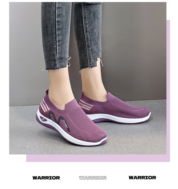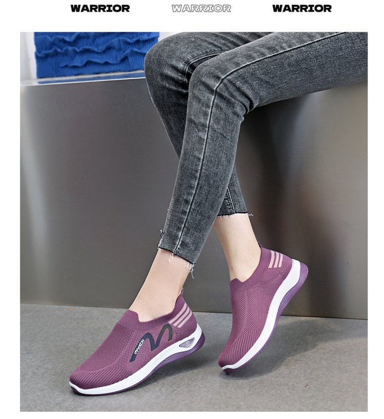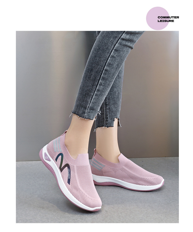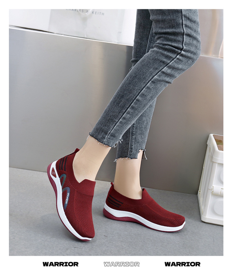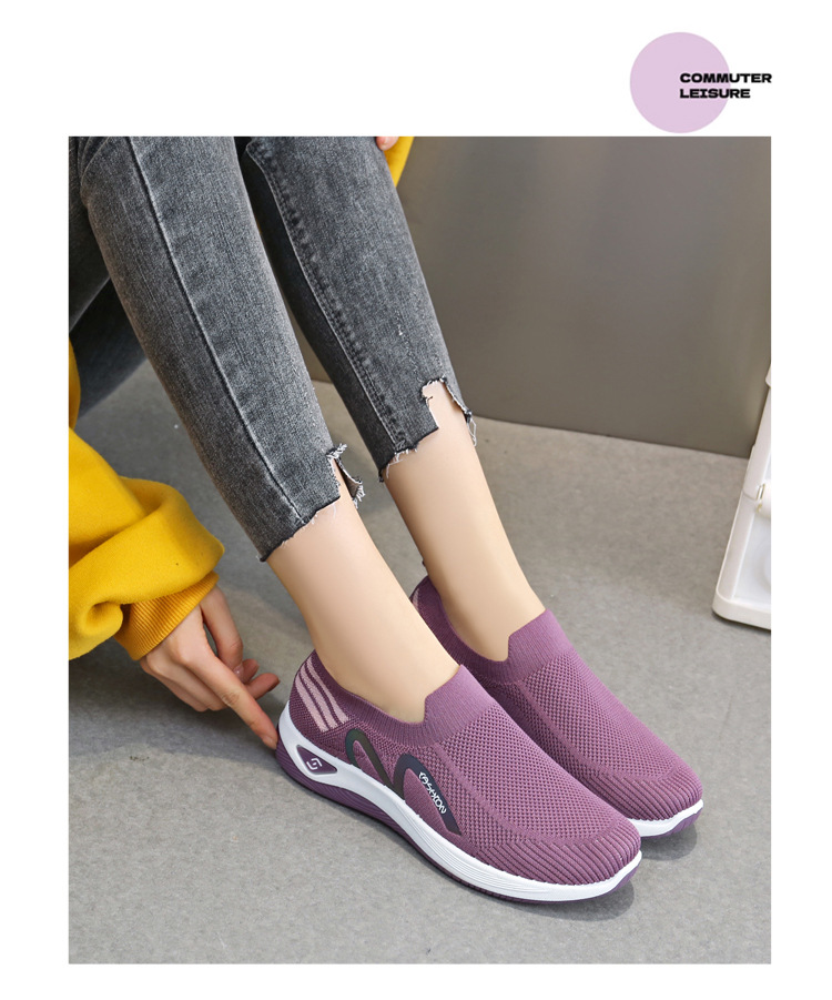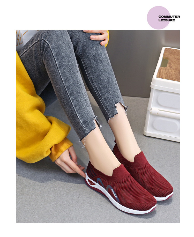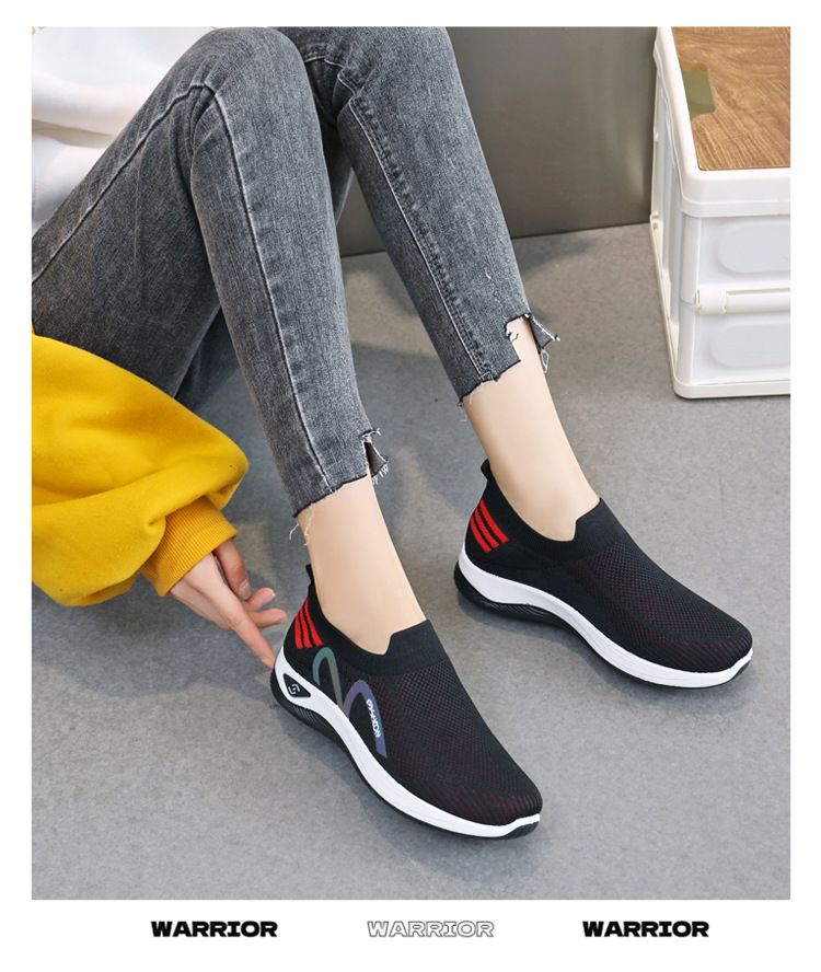 새로운 플라이 니트 슬립온 양말형 캐주얼 여성화 마사지 밑창 통기성 엄마 신발 워킹화