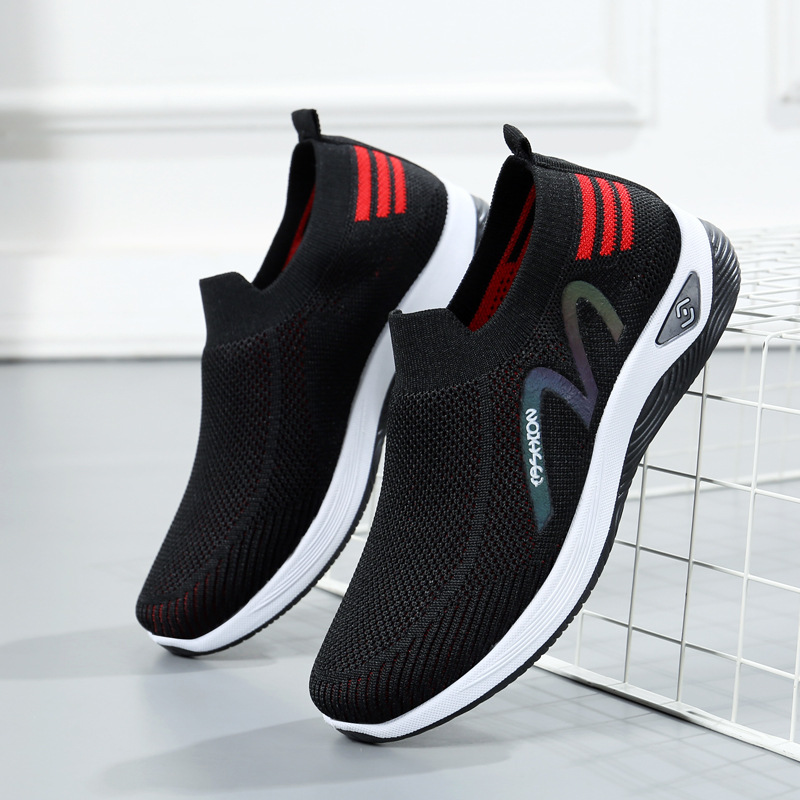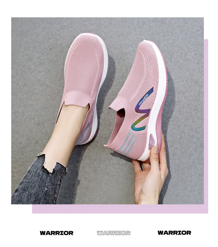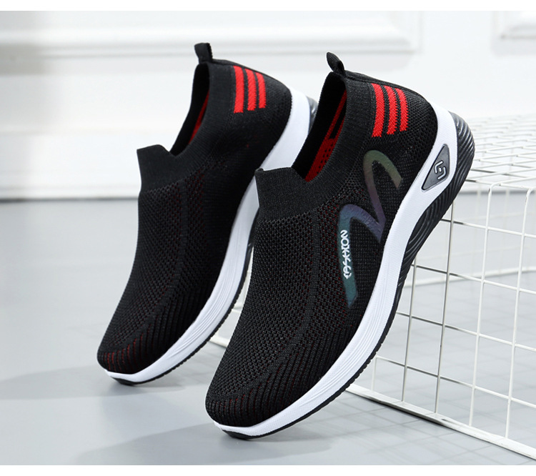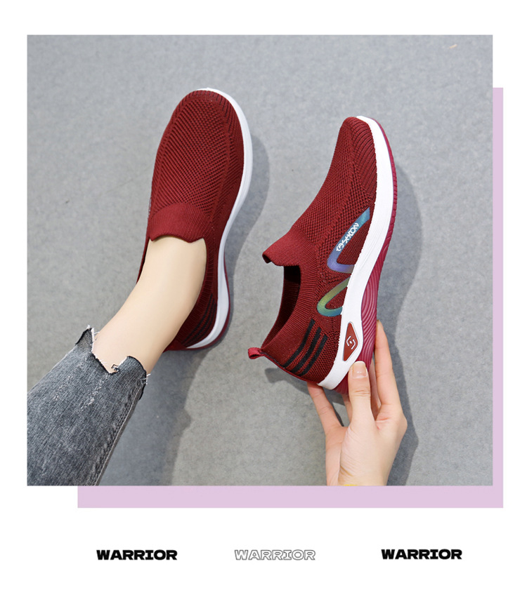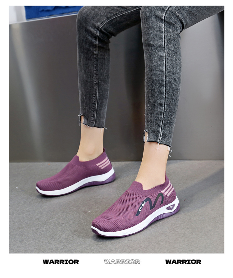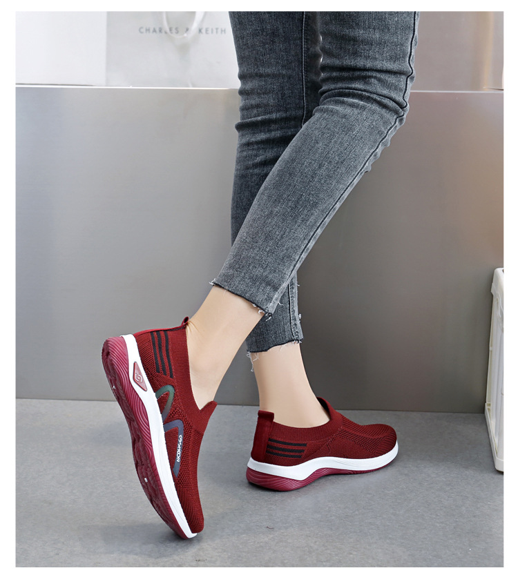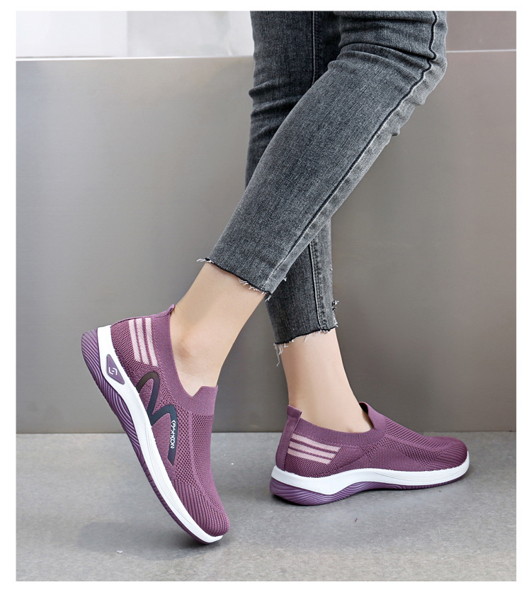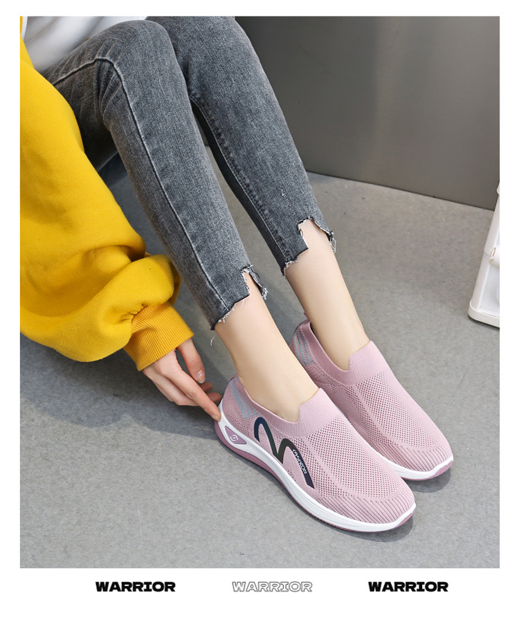 새로운 플라이 니트 슬립온 양말형 캐주얼 여성화 마사지 밑창 통기성 엄마 신발 워킹화