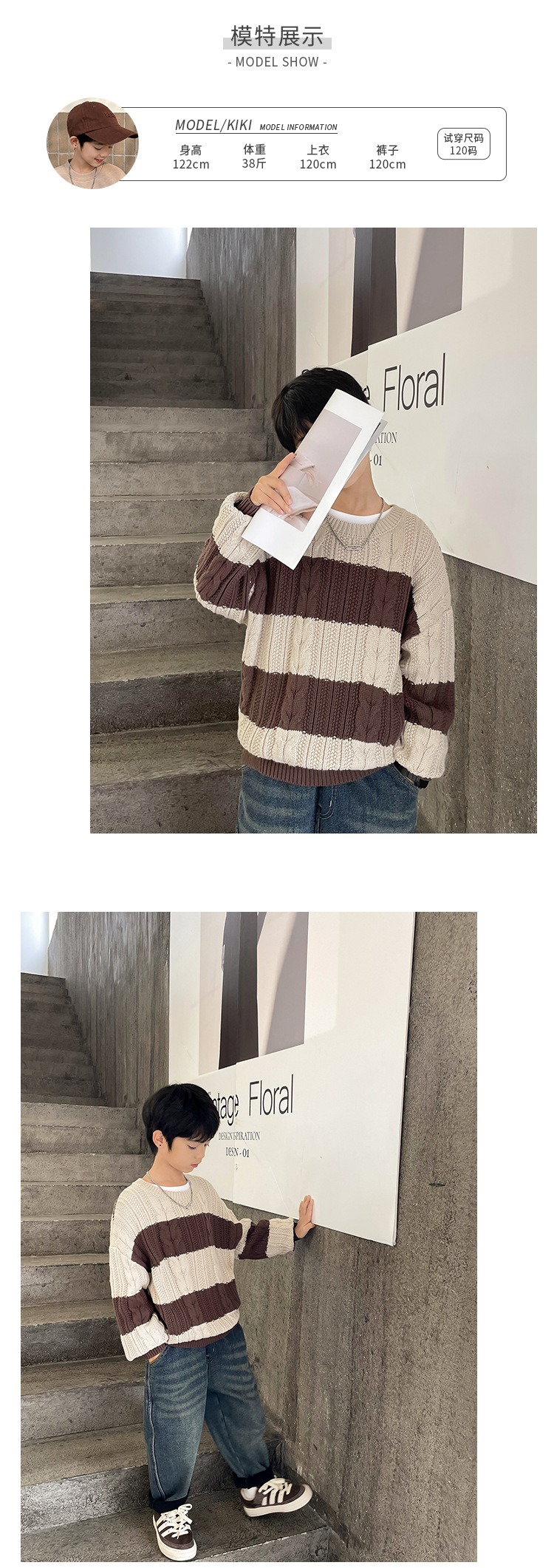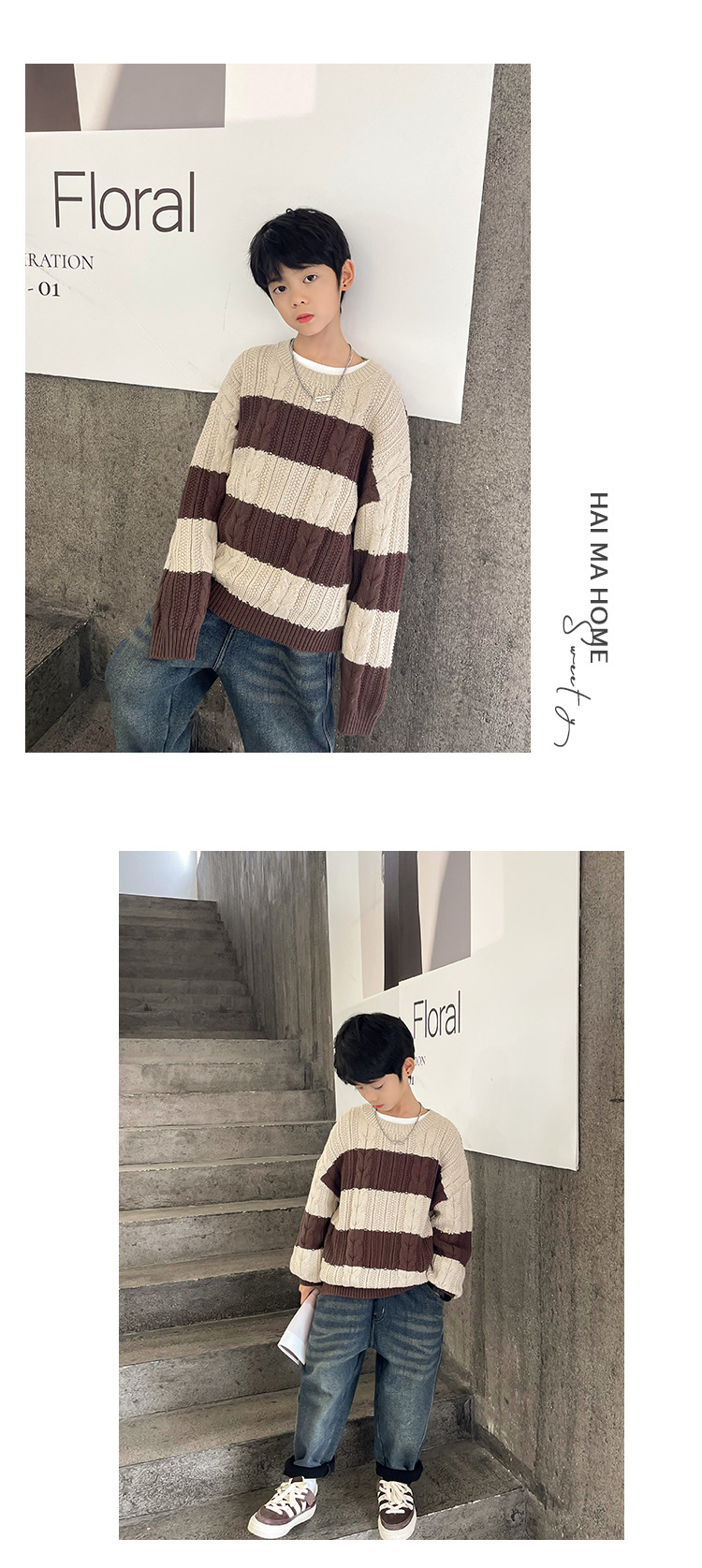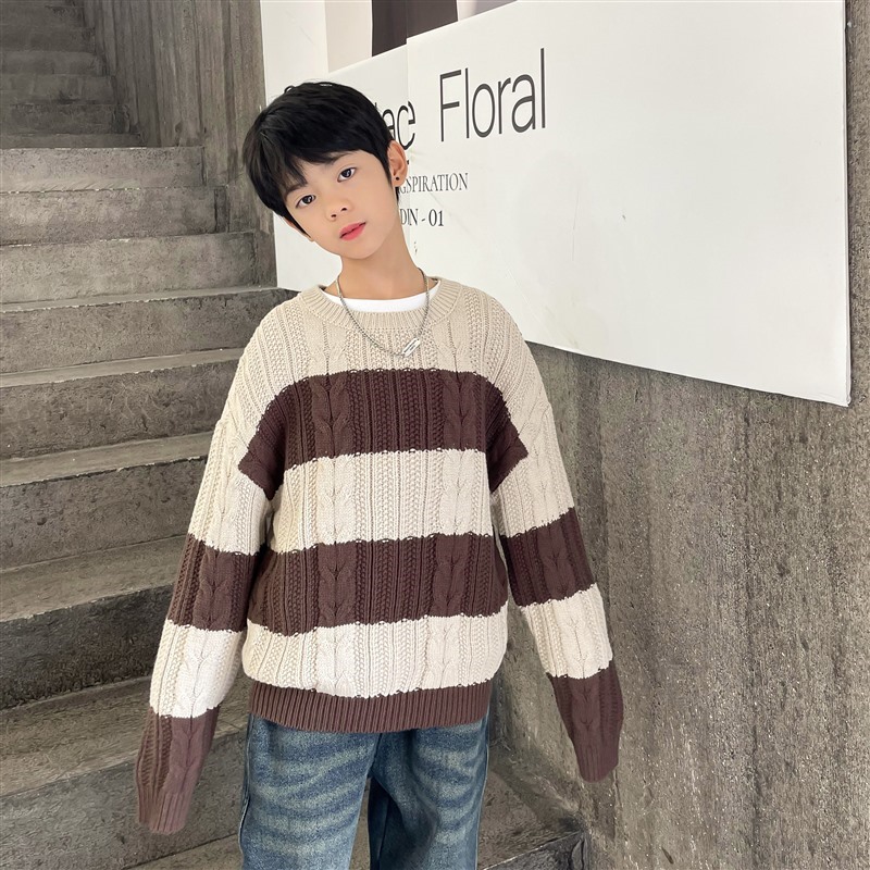 하이마 어린이 유행 풀오버 스트라이프 트위스트 스웨터 한국 아동복 겨울 착용 2023 소년 가을과 겨울스토어 가기