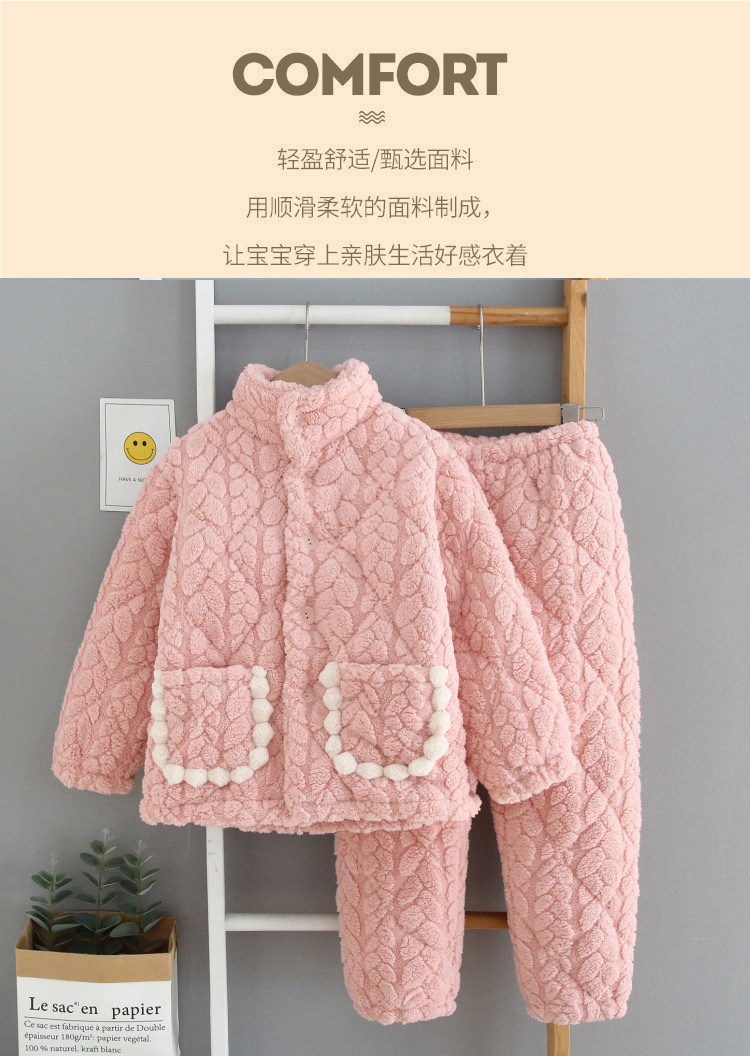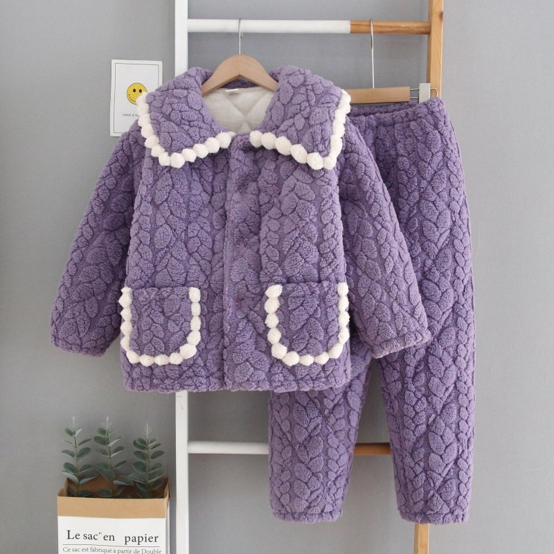 10-16 세 남녀 가정복 어린이와 학생을 위한 여아 청소년 두꺼운 겨울 면 패딩 산호 벨벳 잠옷