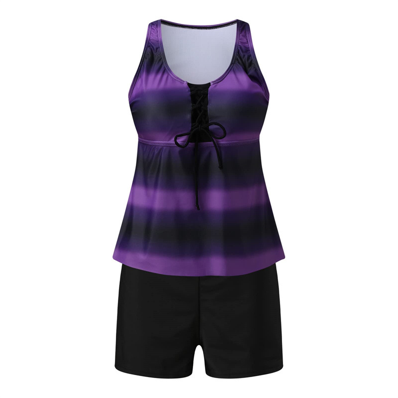 유럽과 미국 스타일의 타이트한 대형 사이즈 분리형 수영복 여성용 스트라이프 스포츠 스타일 프린트 비키니 아마존 비키니 슬림 효과