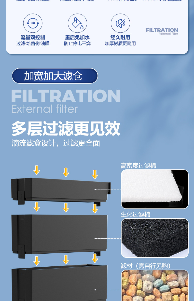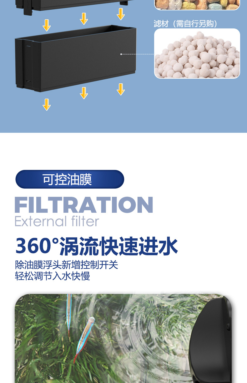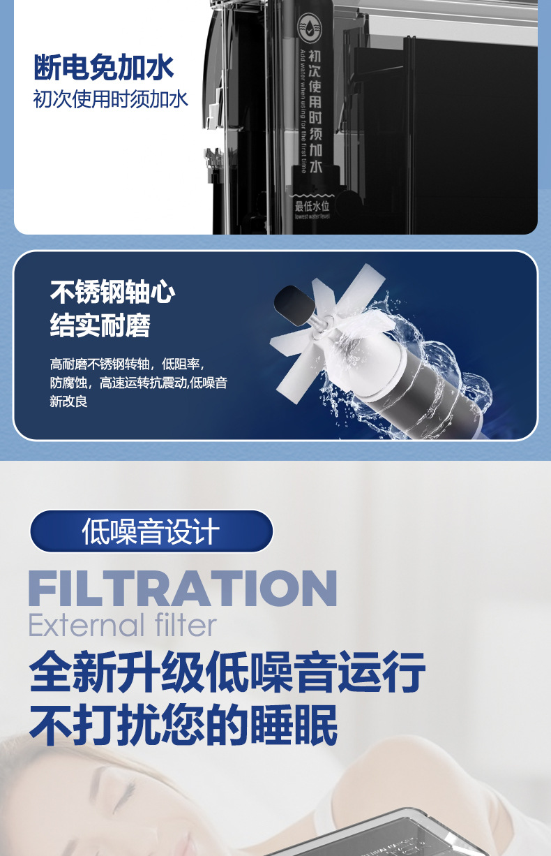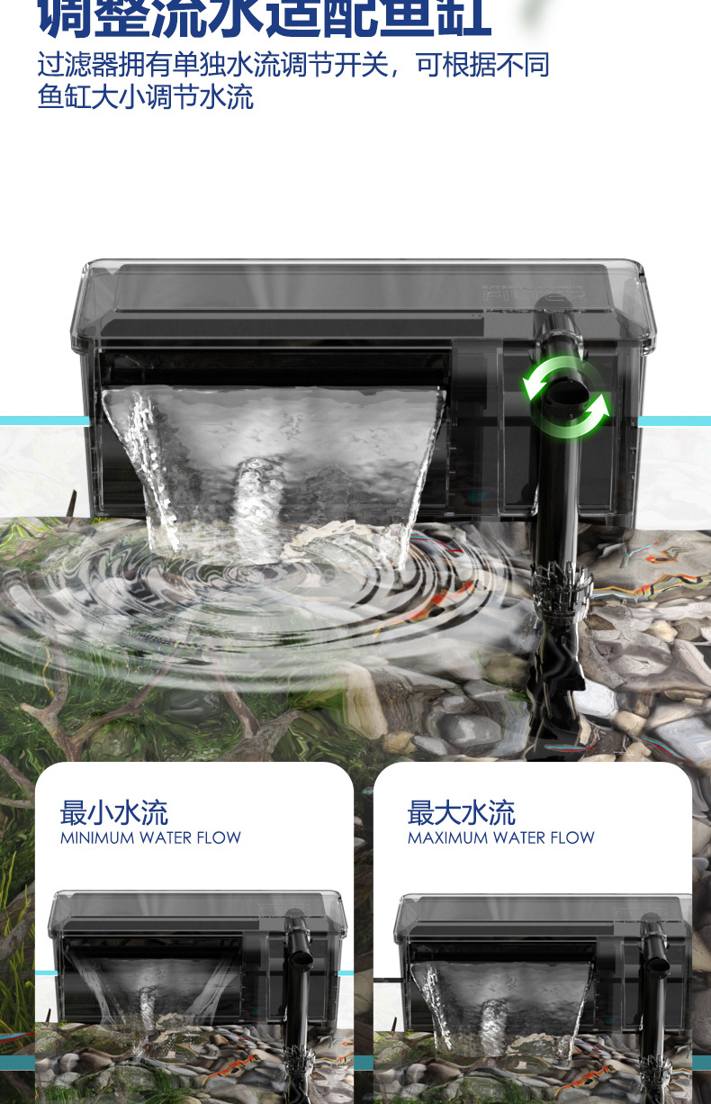 소형 어항 폭포 벽걸이 필터 쓰리인원 정수 여과 순환 빌트인 워터 펌프 드립 박스 여과