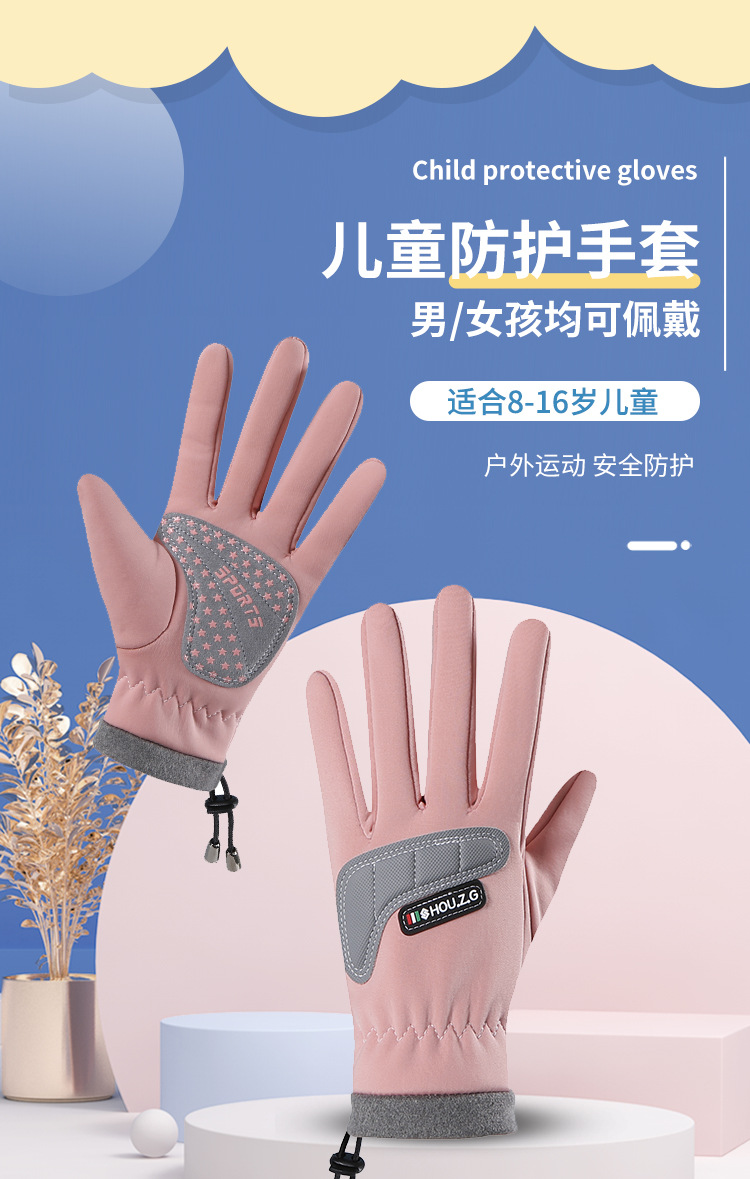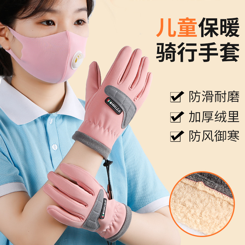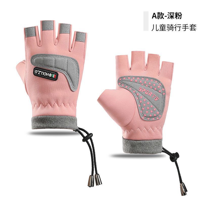 겨울 어린이 장갑 기모 두꺼운 따뜻한 방한 미끄럼 방지 방풍 자전거 겨울 반 손가락 장갑