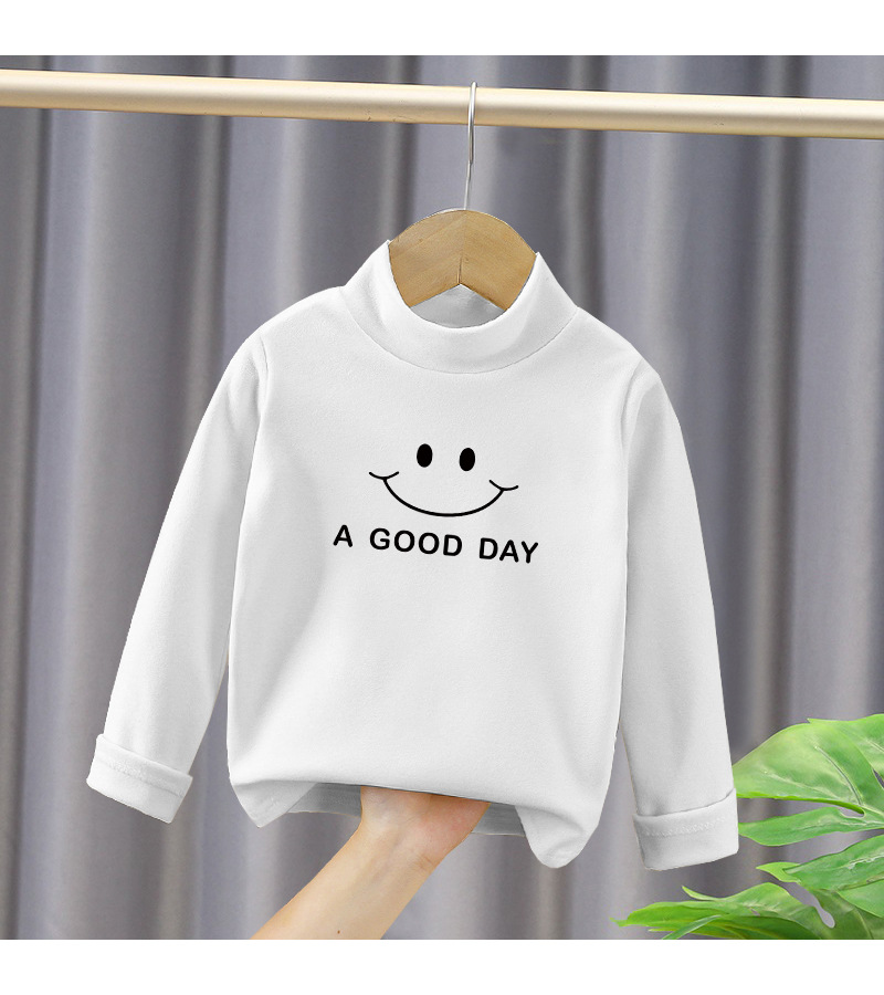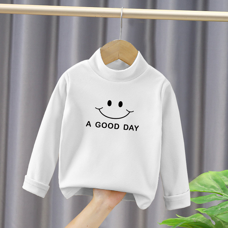 아동용 세미 하이 칼라 베이스 셔츠 방한 따뜻한 긴팔 티셔츠 가을과 겨울 3-9 세 아동 의류