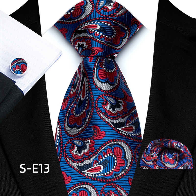공장 재고 직공급 폴리 에스테르 8cm 패션 페이즐리 남성 넥타이 스퀘어 커프 3 종 세트스토어 가기