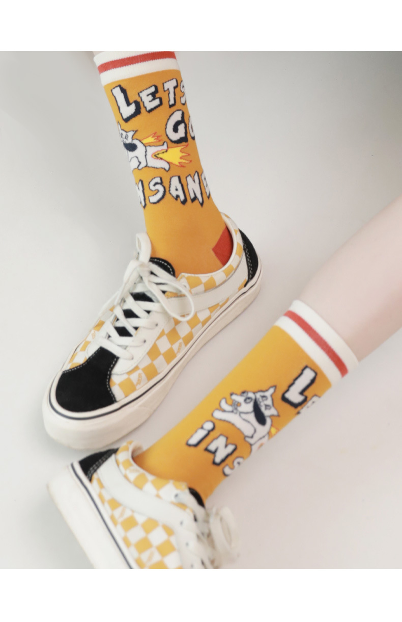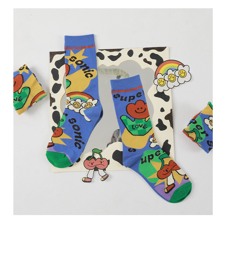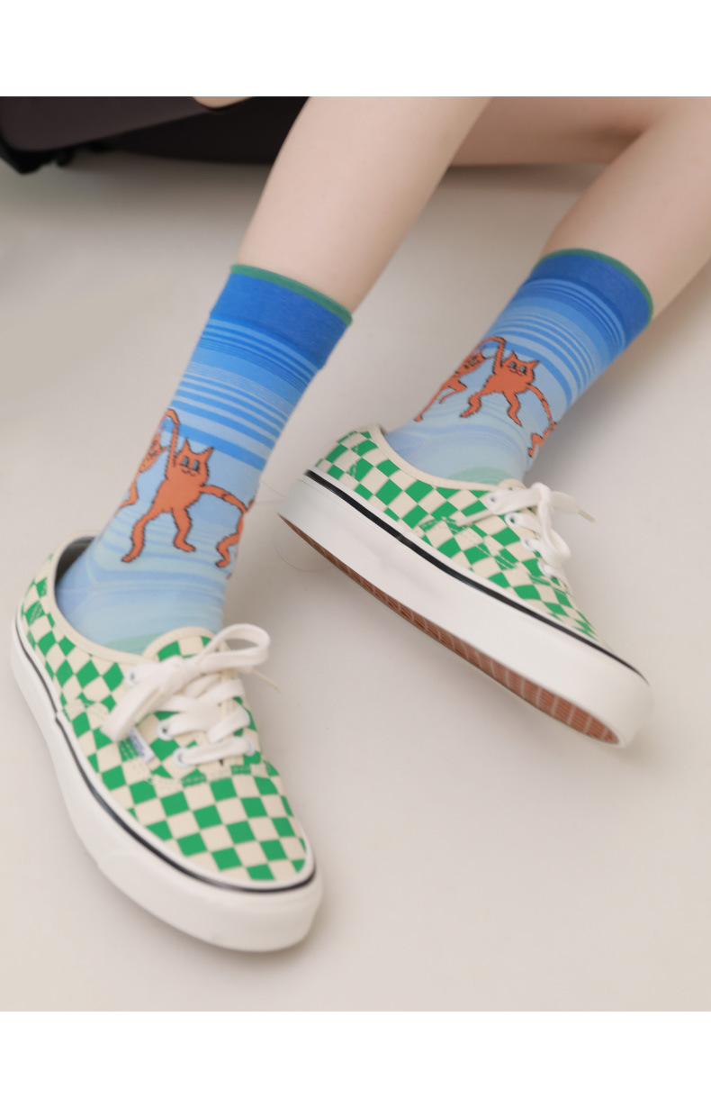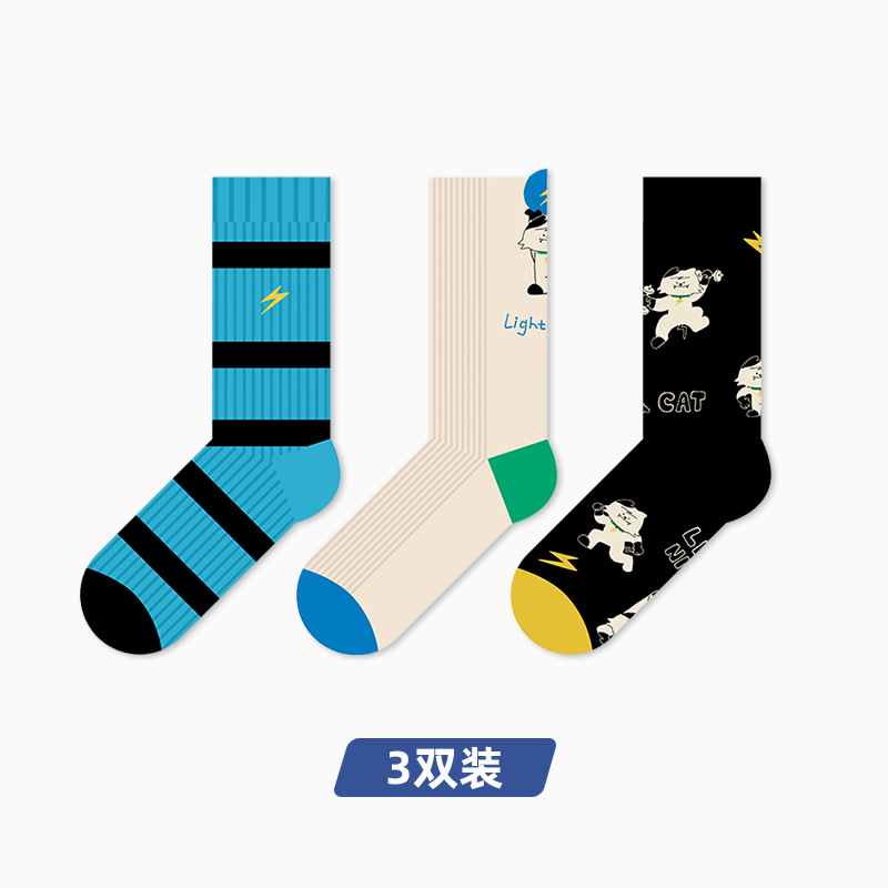 DAMAHOOV 봄과 가을 원래 만화 번개 고양이 도파민 조수 양말 일러스트 양말 남성과 여성을위한 미드 튜브 양말스토어 가기