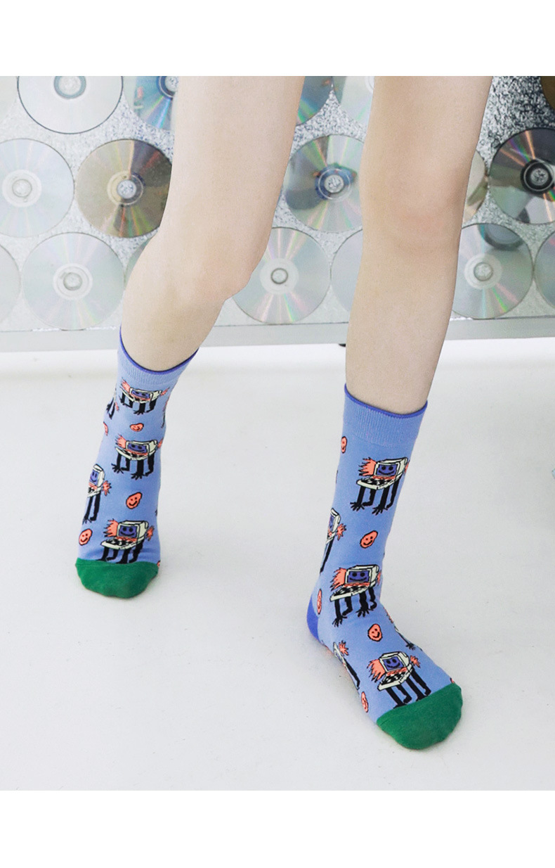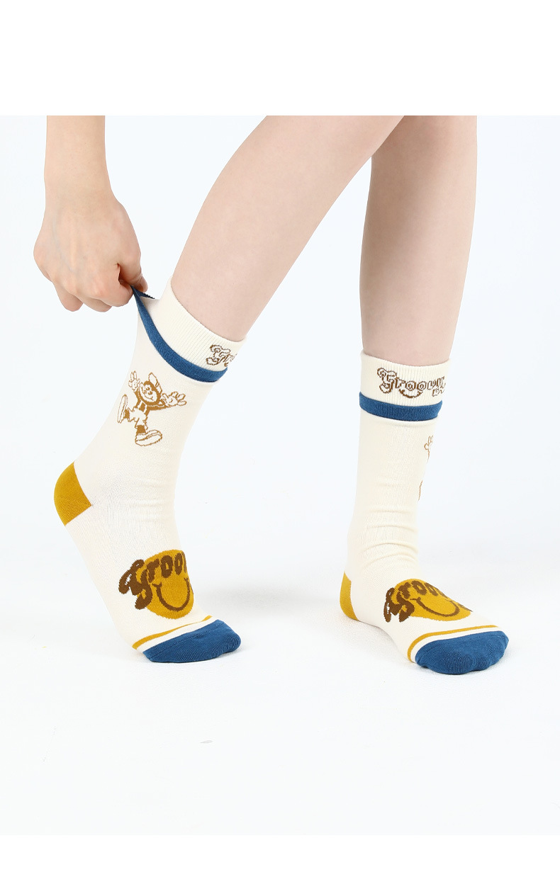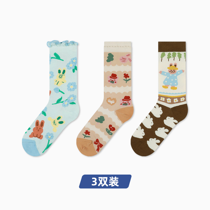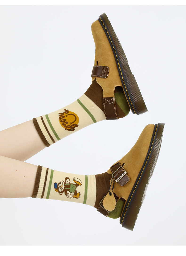 DAMAHOOV 봄과 가을 원래 만화 번개 고양이 도파민 조수 양말 일러스트 양말 남성과 여성을위한 미드 튜브 양말스토어 가기