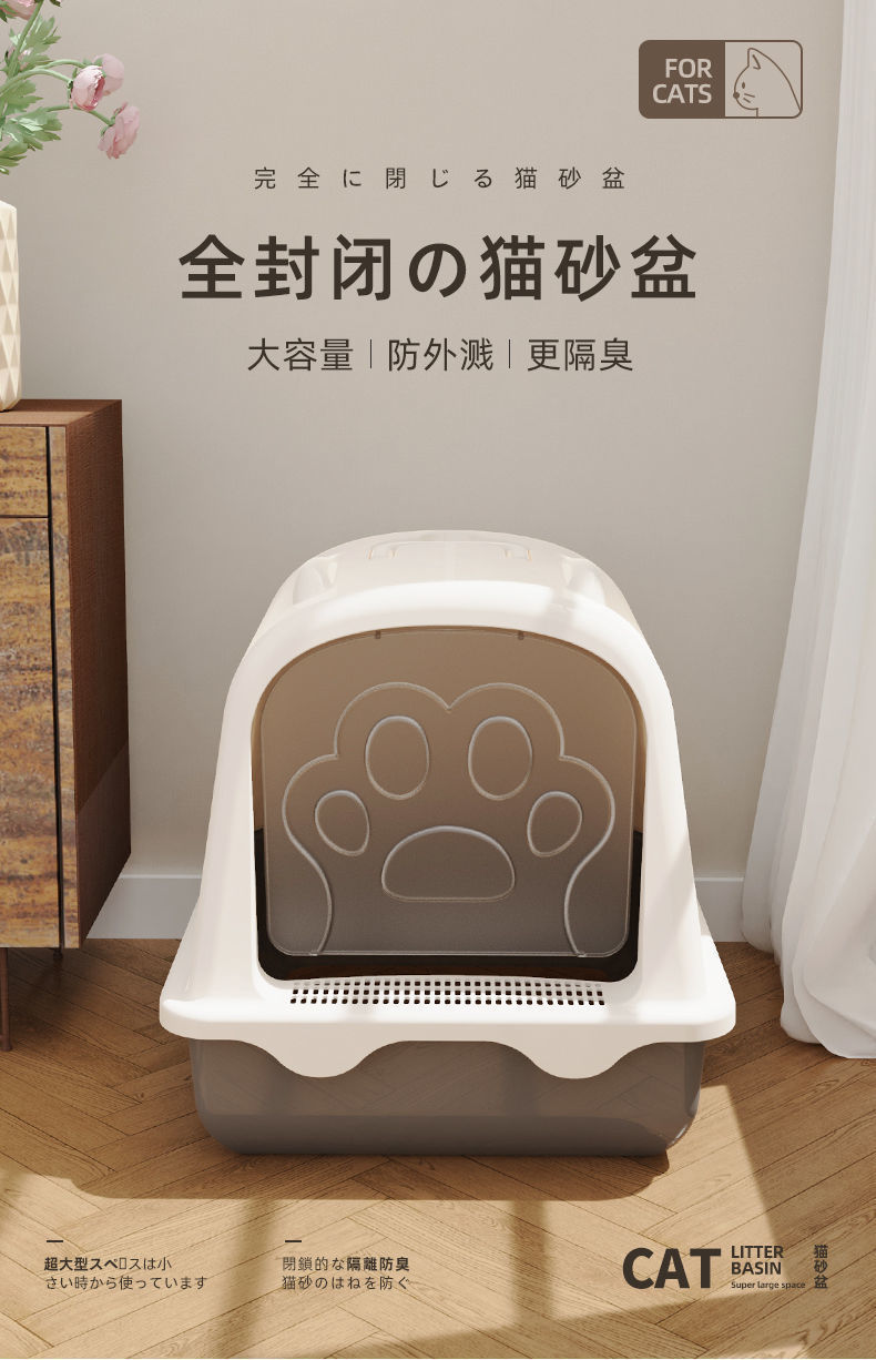 고양이 쓰레기 상자 완전히 밀폐 된 큰 쓰레기 방지 고양이 화장실 여분의 큰 새끼 고양이 모래 배설물 공급 국경