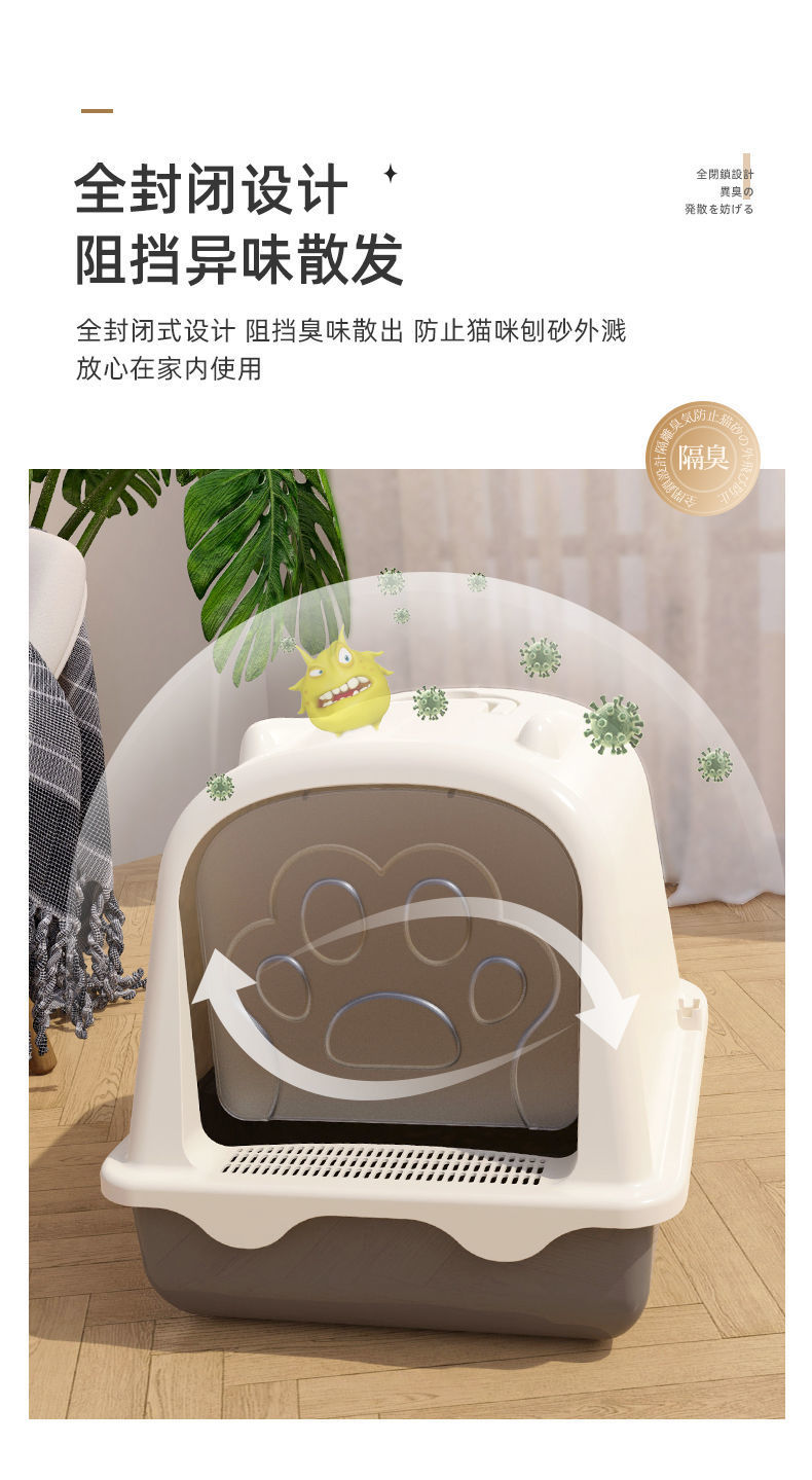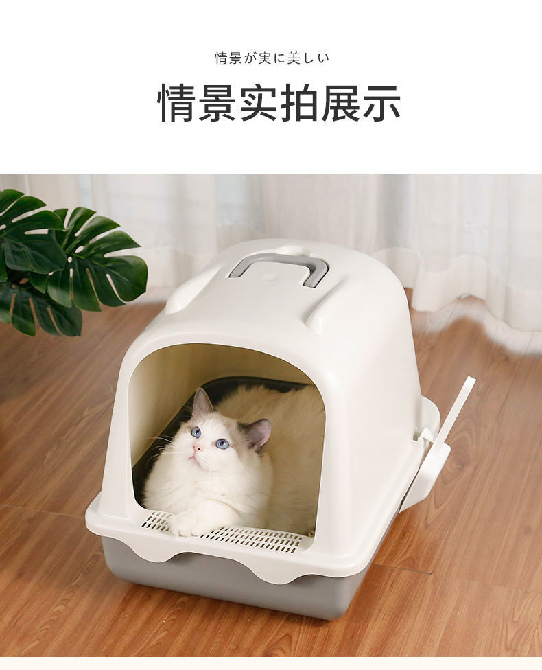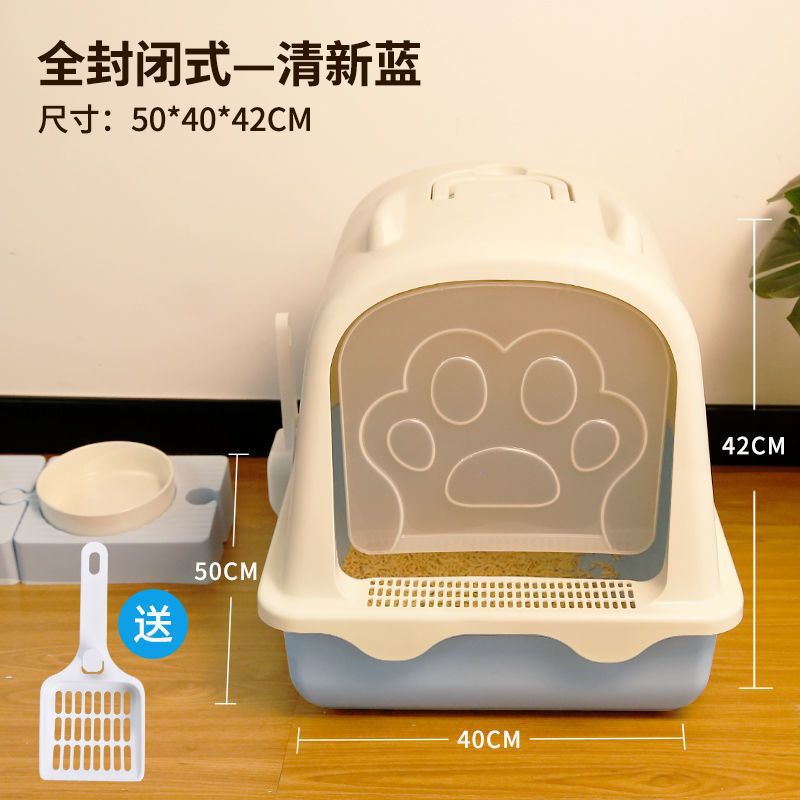고양이 쓰레기 상자 완전히 밀폐 된 큰 쓰레기 방지 고양이 화장실 여분의 큰 새끼 고양이 모래 배설물 공급 국경스토어 가기