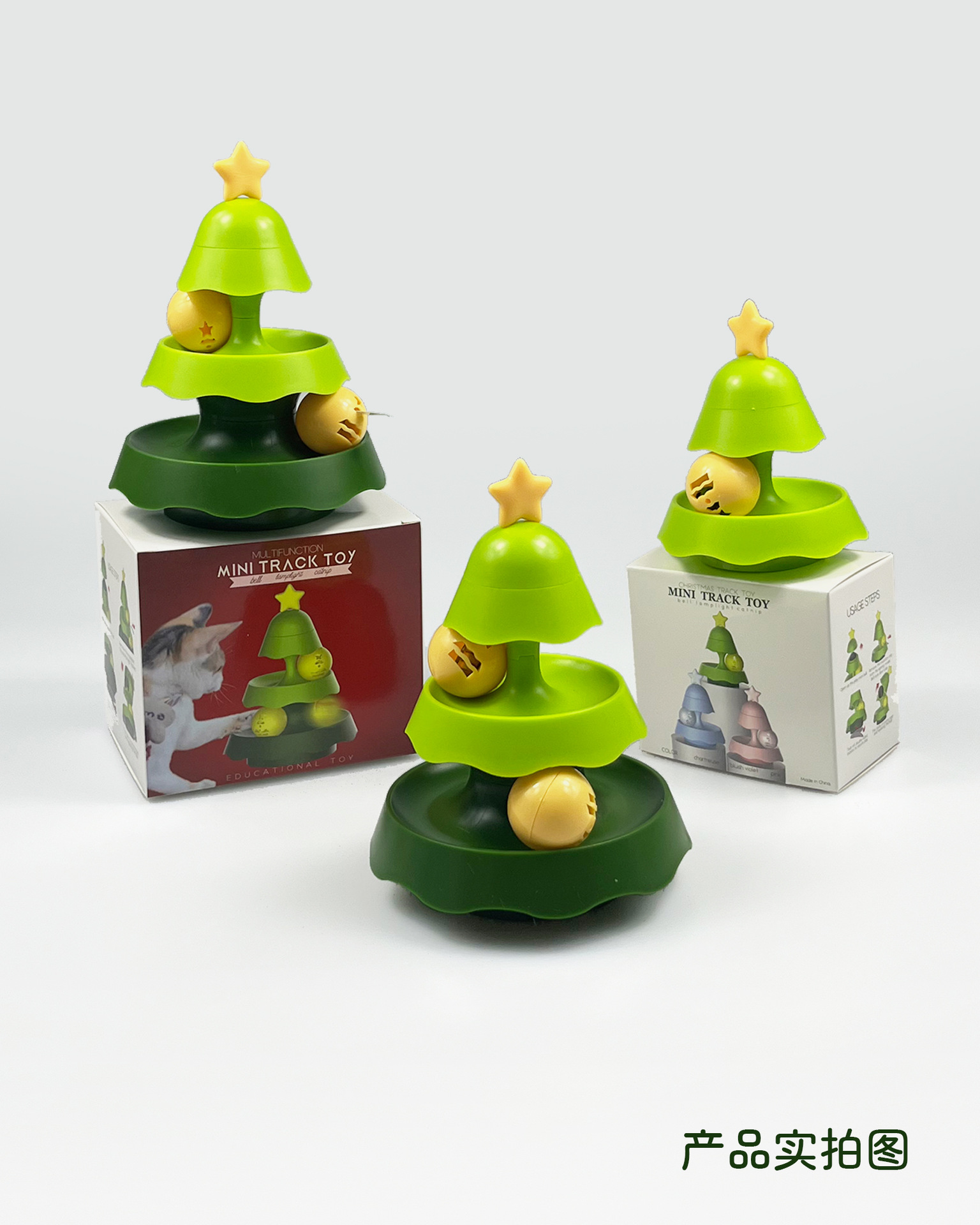 아마존 애완 동물 트랙 턴테이블 장난감 크리스마스 트리 재미있는 고양이 스틱 개박하 장난감 3 층 턴테이블 고양이 용품스토어 가기