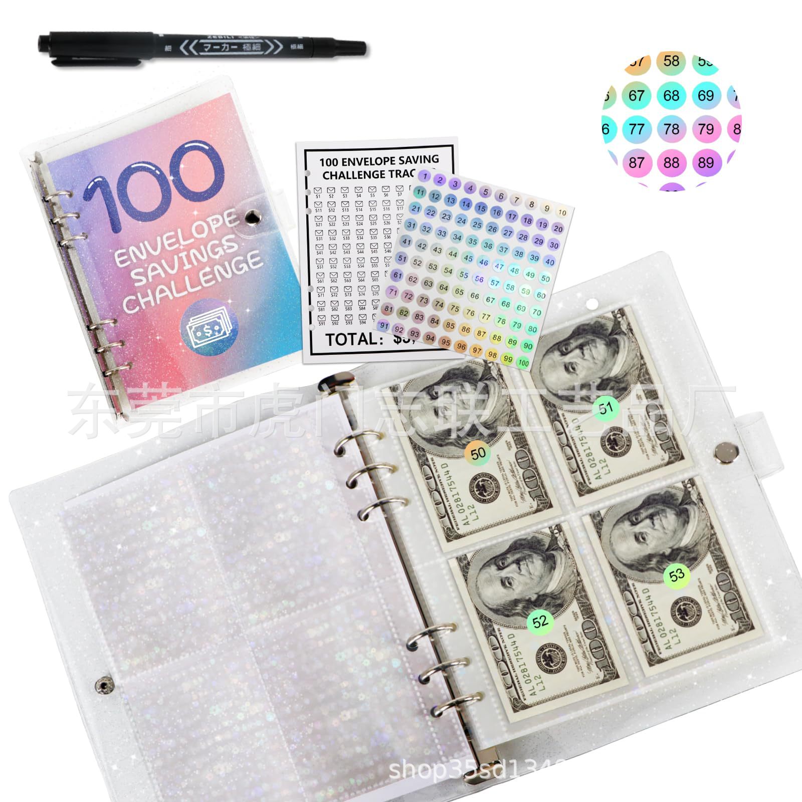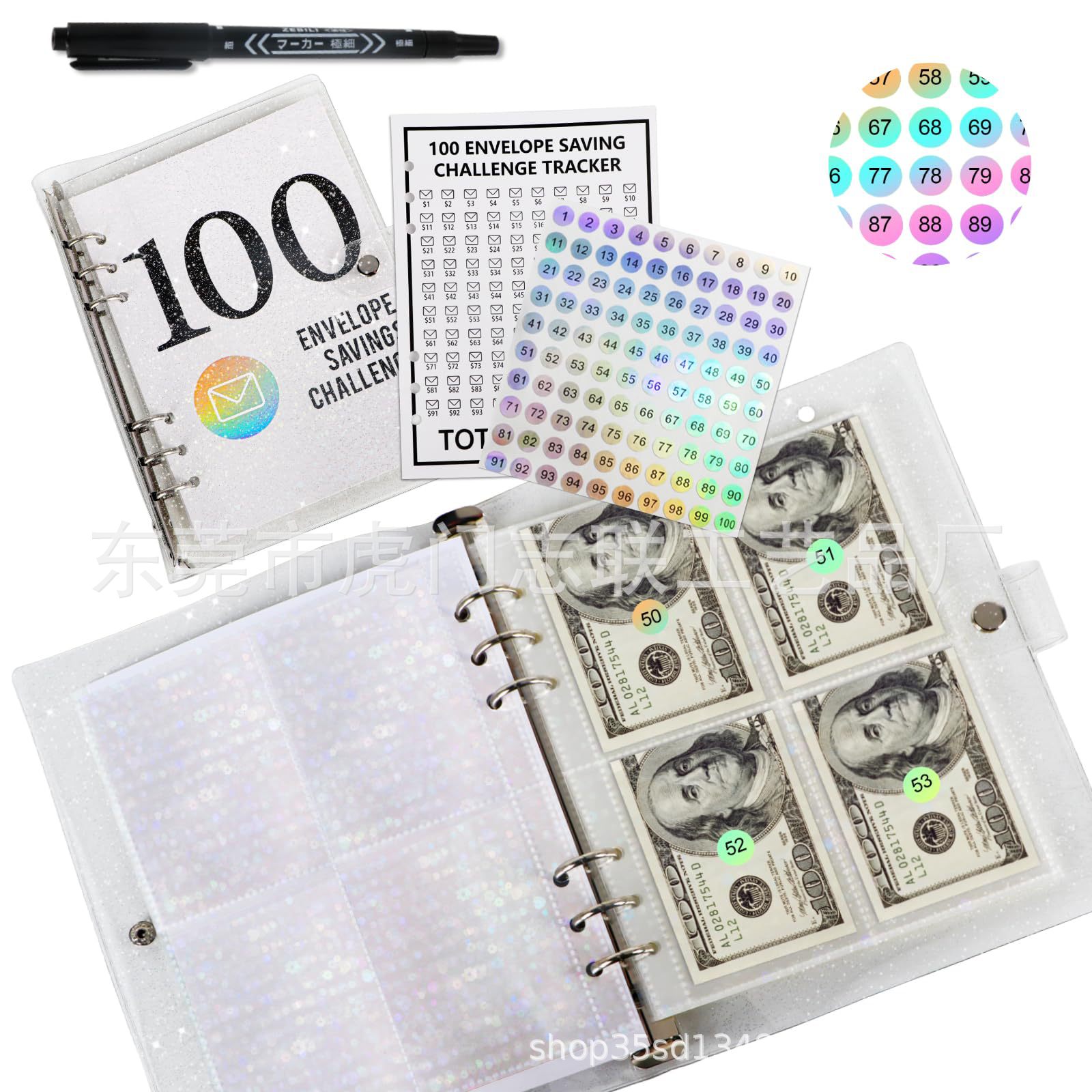 재고 100 봉투 도전 바인더 100 일 활동 페이지 절약 도전 레이저 스타일