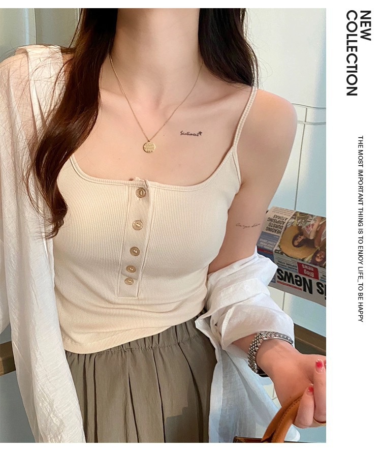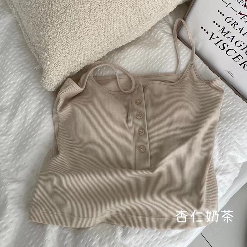 순수한 욕망 버튼 캐미솔 세련된 모든 매치 아우터 탑 베이스 슬림 핏 실 고정 컵 여성용 아름다운 등 속옷스토어 가기