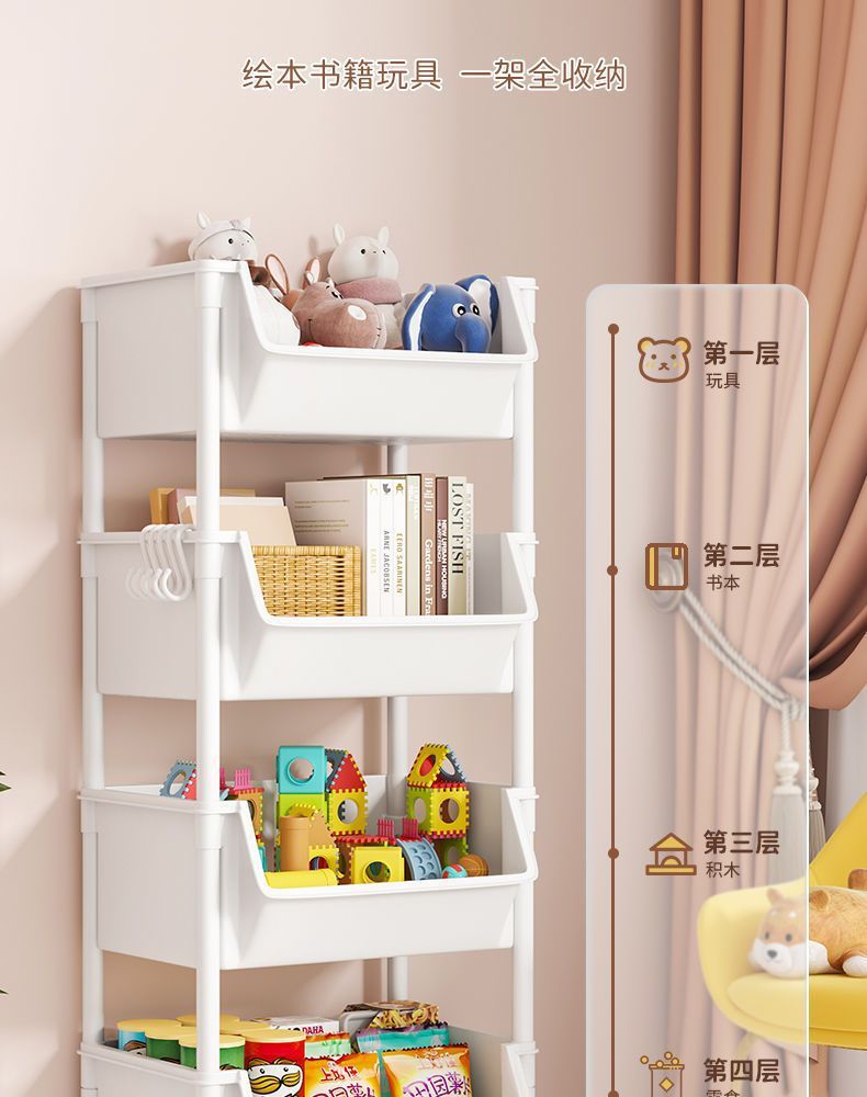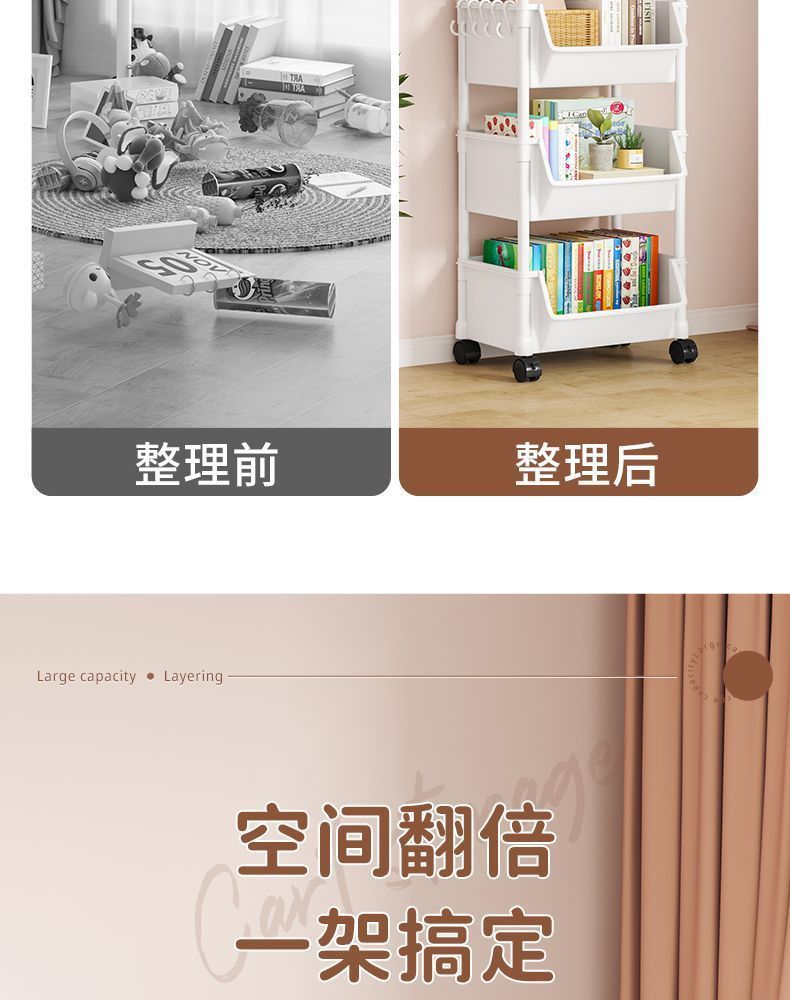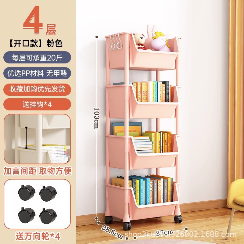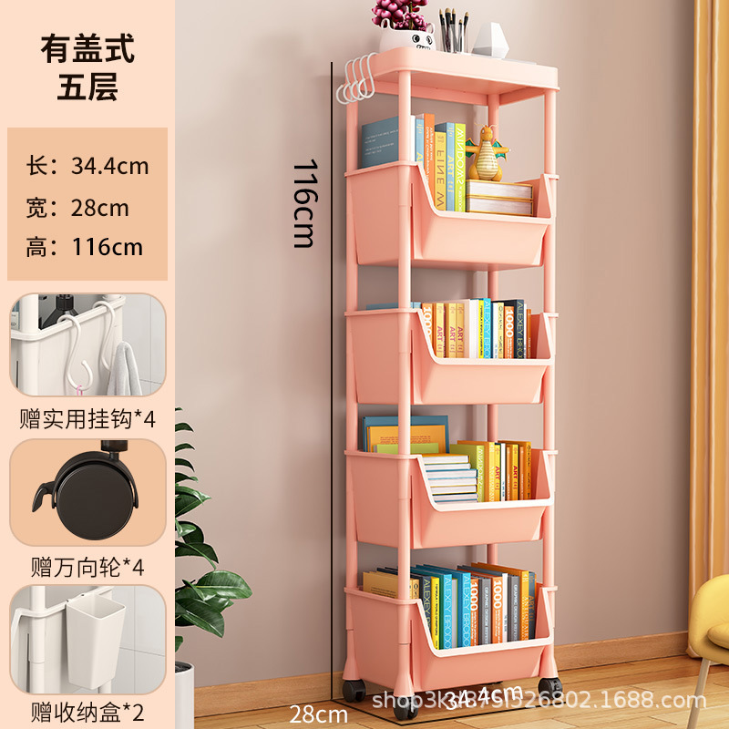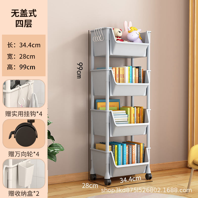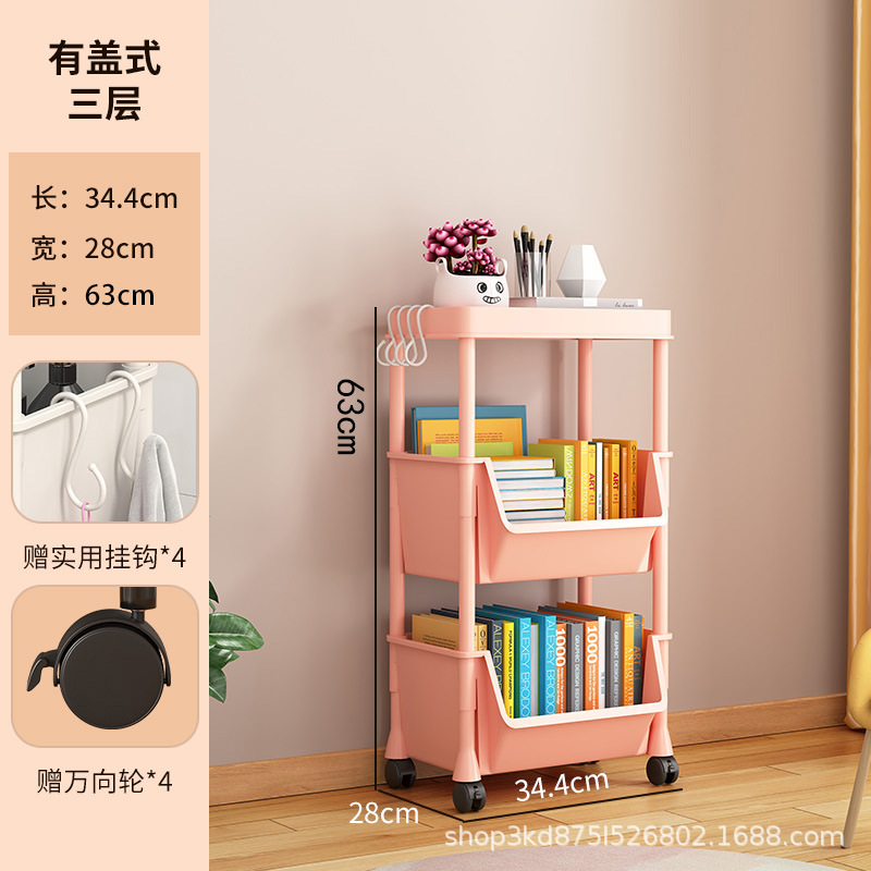 이동식 책장 보관 랙 어린이 장난감 스낵 보관 랙 다층 가정용 소형 트롤리 바닥 간단한 책장스토어 가기