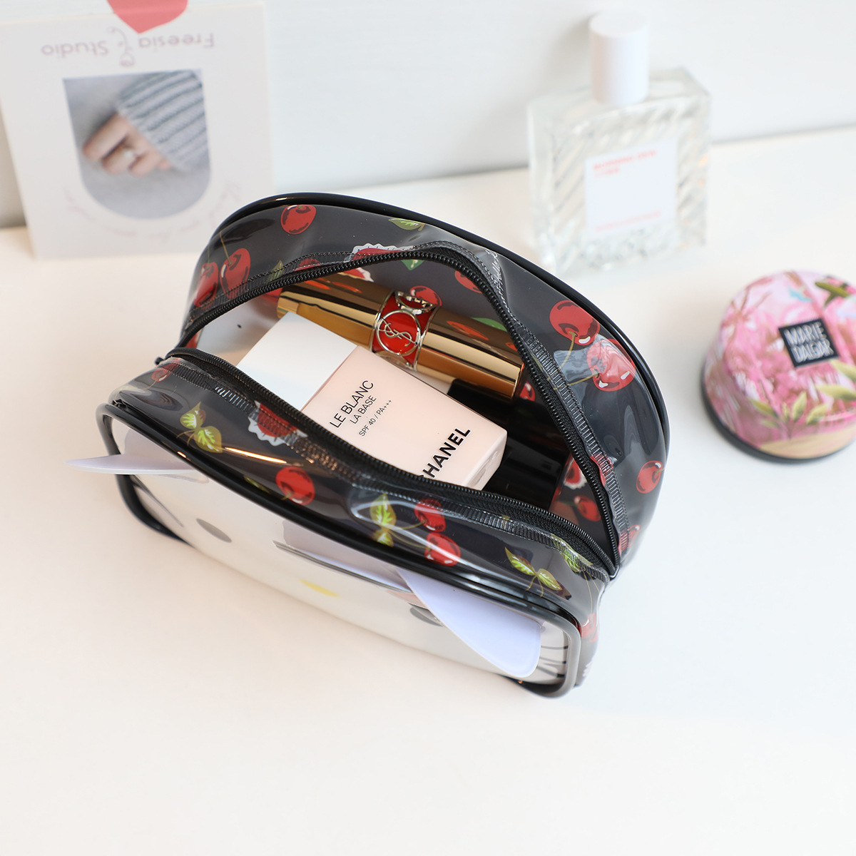 귀여운 메를로 화이트 개 휴대용 화장품 세면 도구 보관 가방 방수 PVC 여행 보관 세척 가방스토어 가기