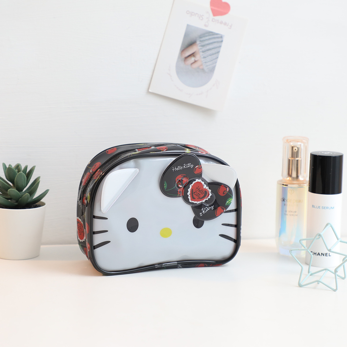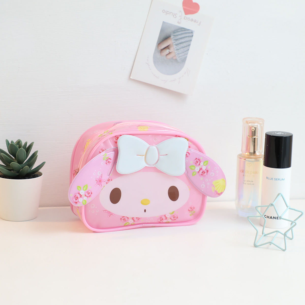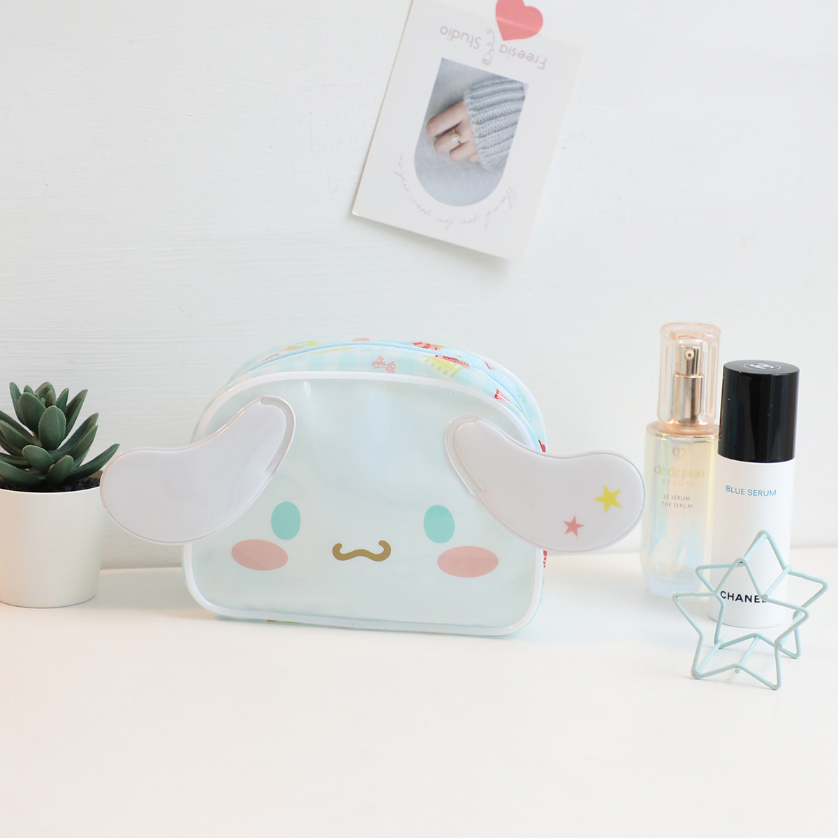 귀여운 메를로 화이트 개 휴대용 화장품 세면 도구 보관 가방 방수 PVC 여행 보관 세척 가방
