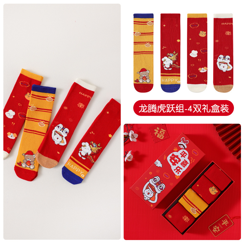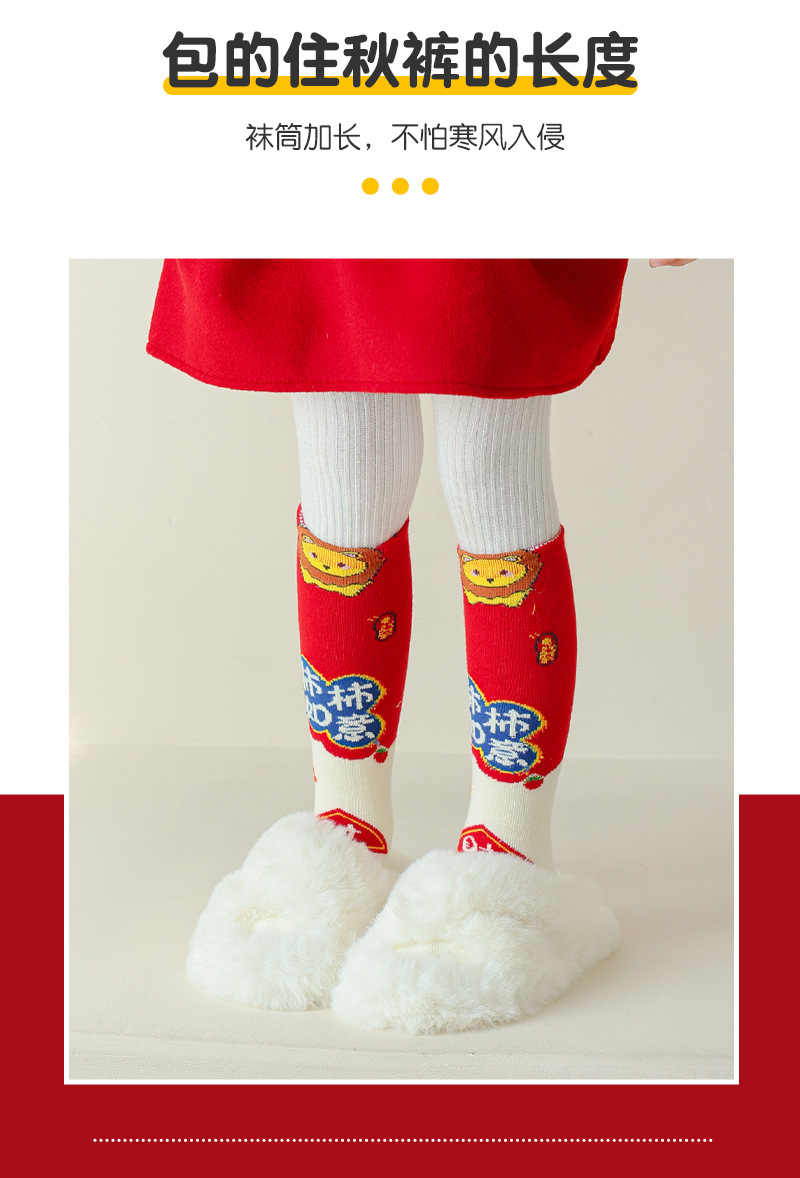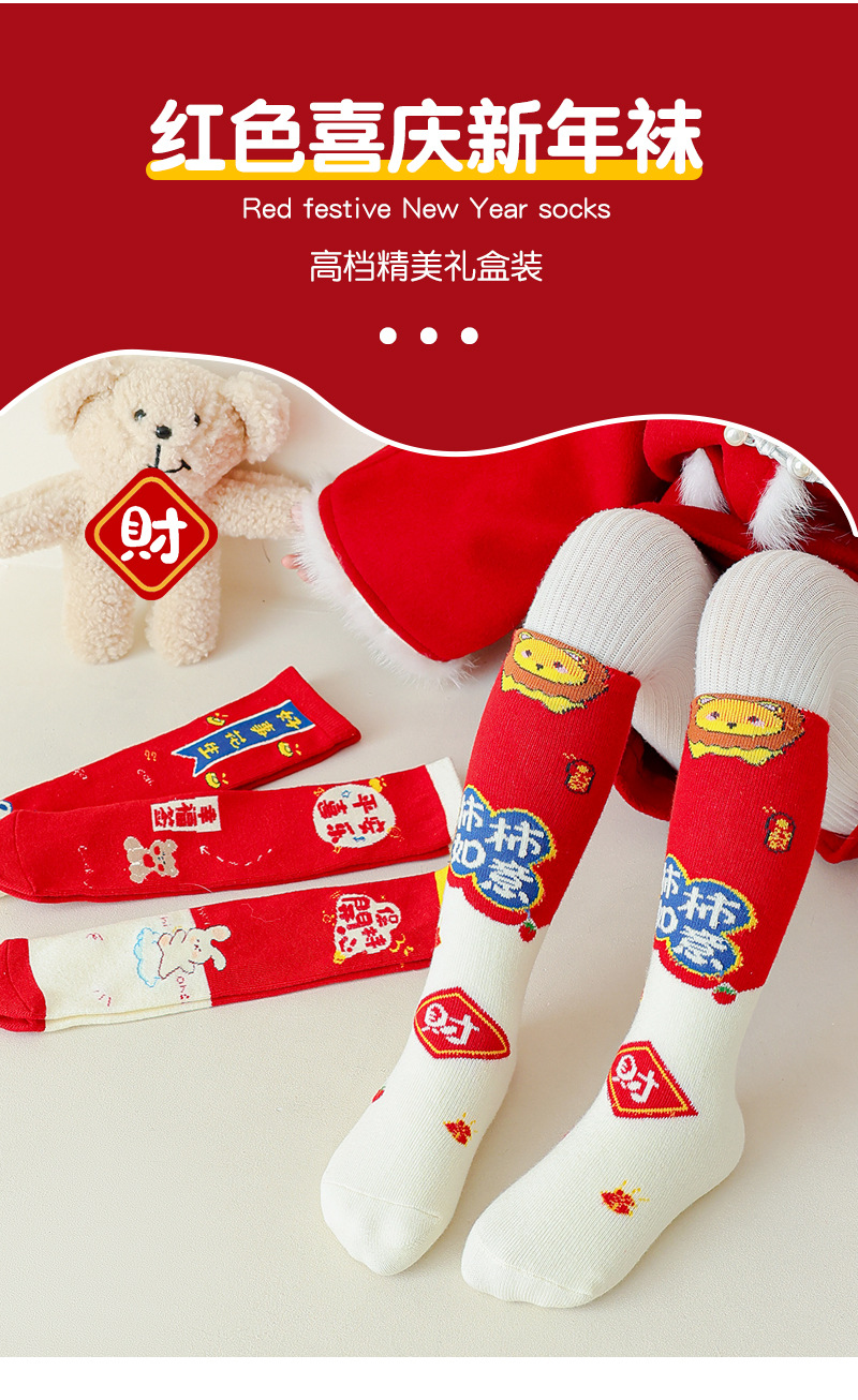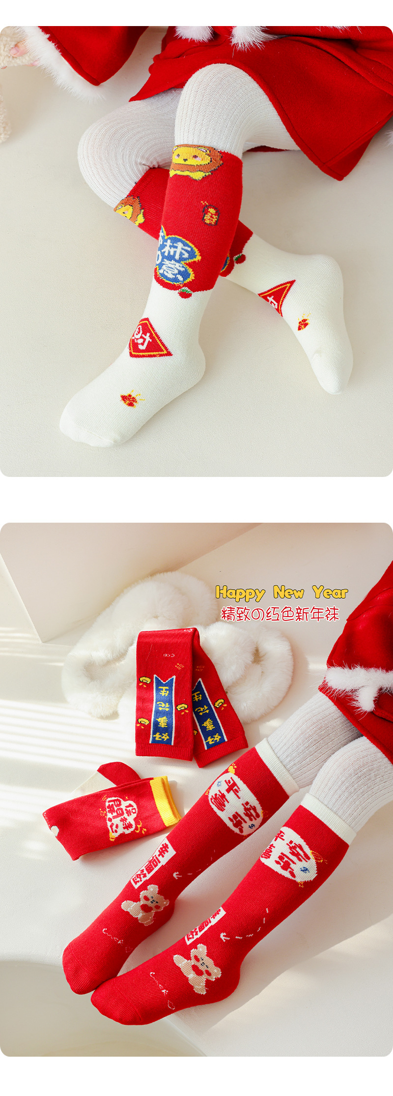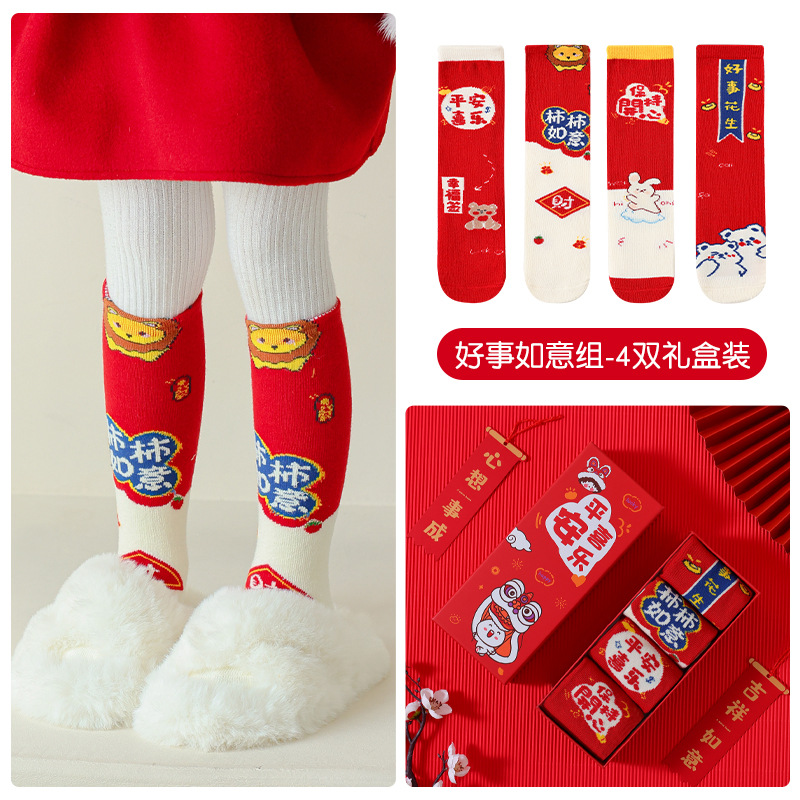 어린이 양말 겨울 새로운 2023 만화 선물 상자 두꺼운 축제 빨간색 새해 양말 행운의 단어 아기 스타킹