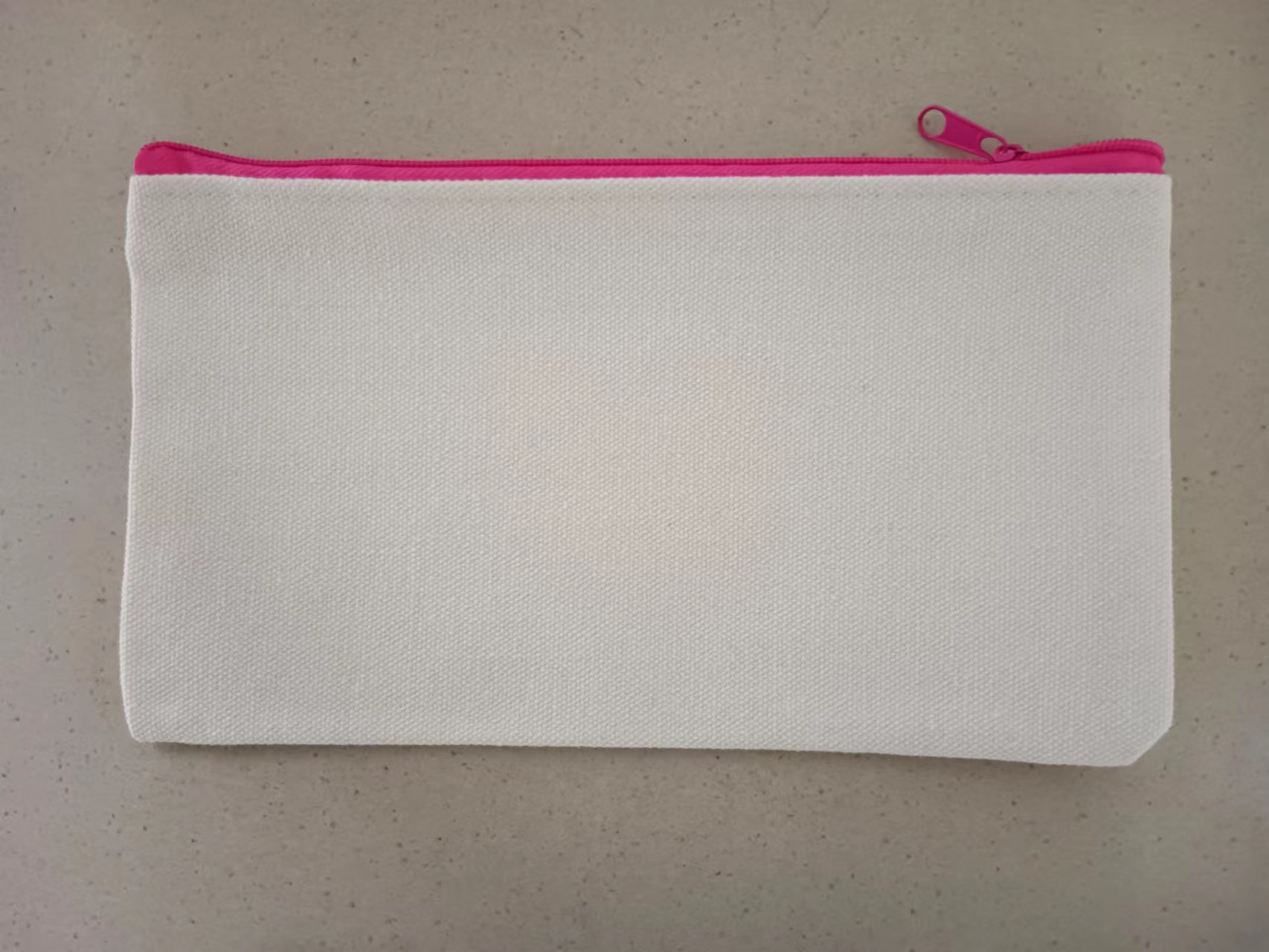 • 12*21cm 베이지 캔버스 핑크 지퍼