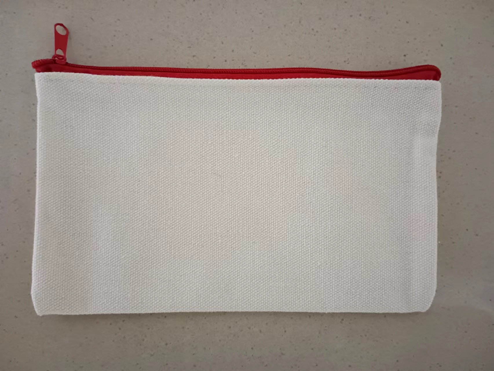• 12*21cm 베이지 캔버스 큰 빨간 지퍼