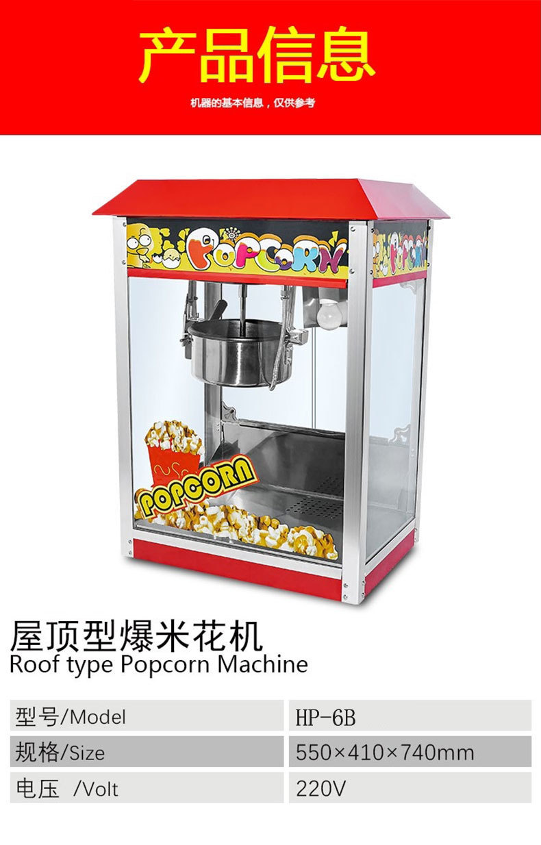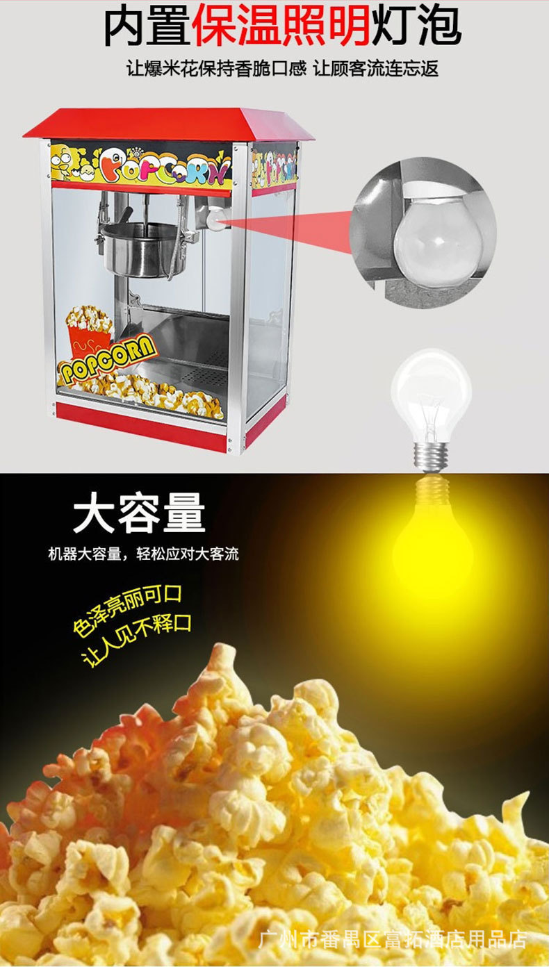 Fuchens 팝콘 기계 상업용 지붕 시네마 전기 가열 스낵 장비 이동식 팝콘 기계스토어 가기